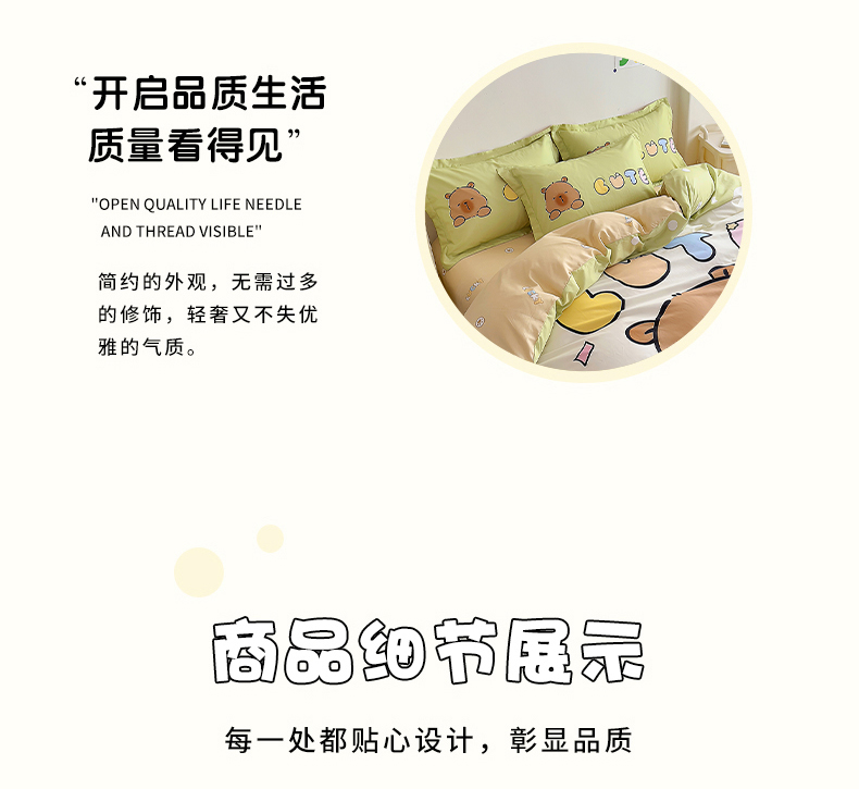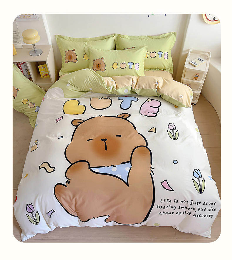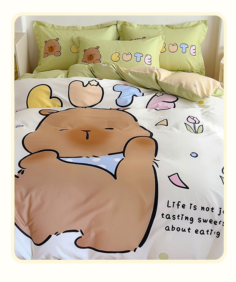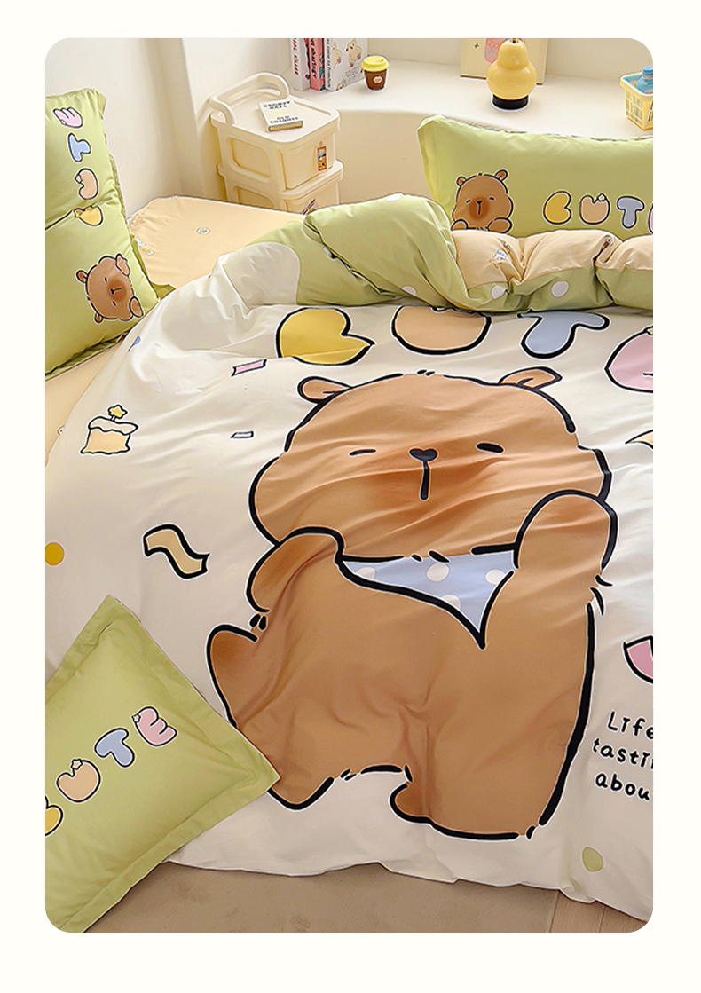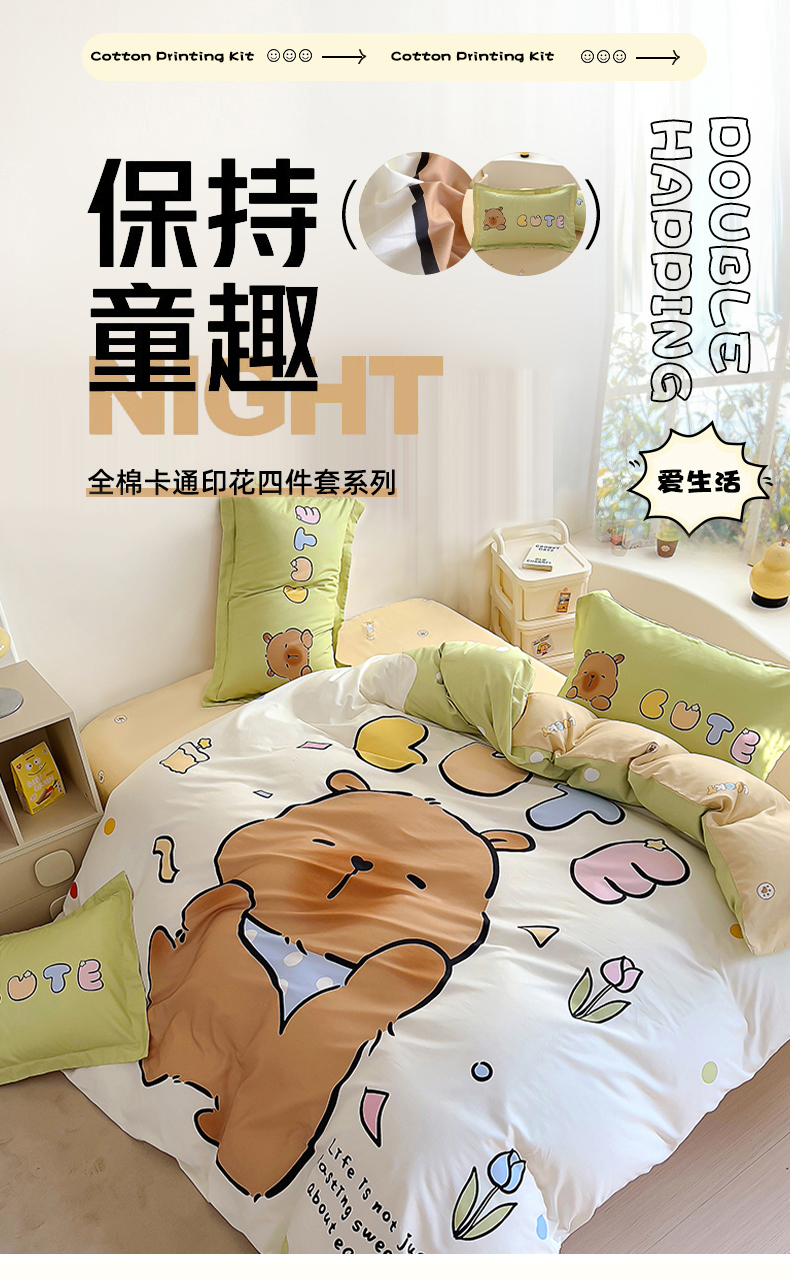 当前位置: 91家纺网 > 商品网购 > 床品套件 > 四件套 > 全棉普通四件套 > 浩诚 2025新款专版卡皮巴拉纯棉全棉卡通大版四件套-原创水豚卡卡【 提供买家秀 】 水豚巴拉