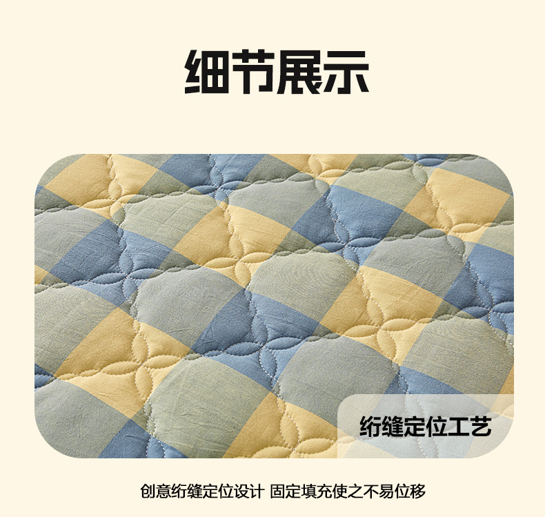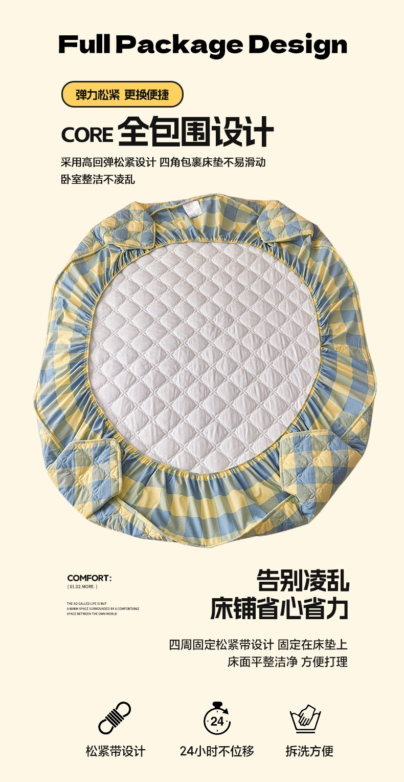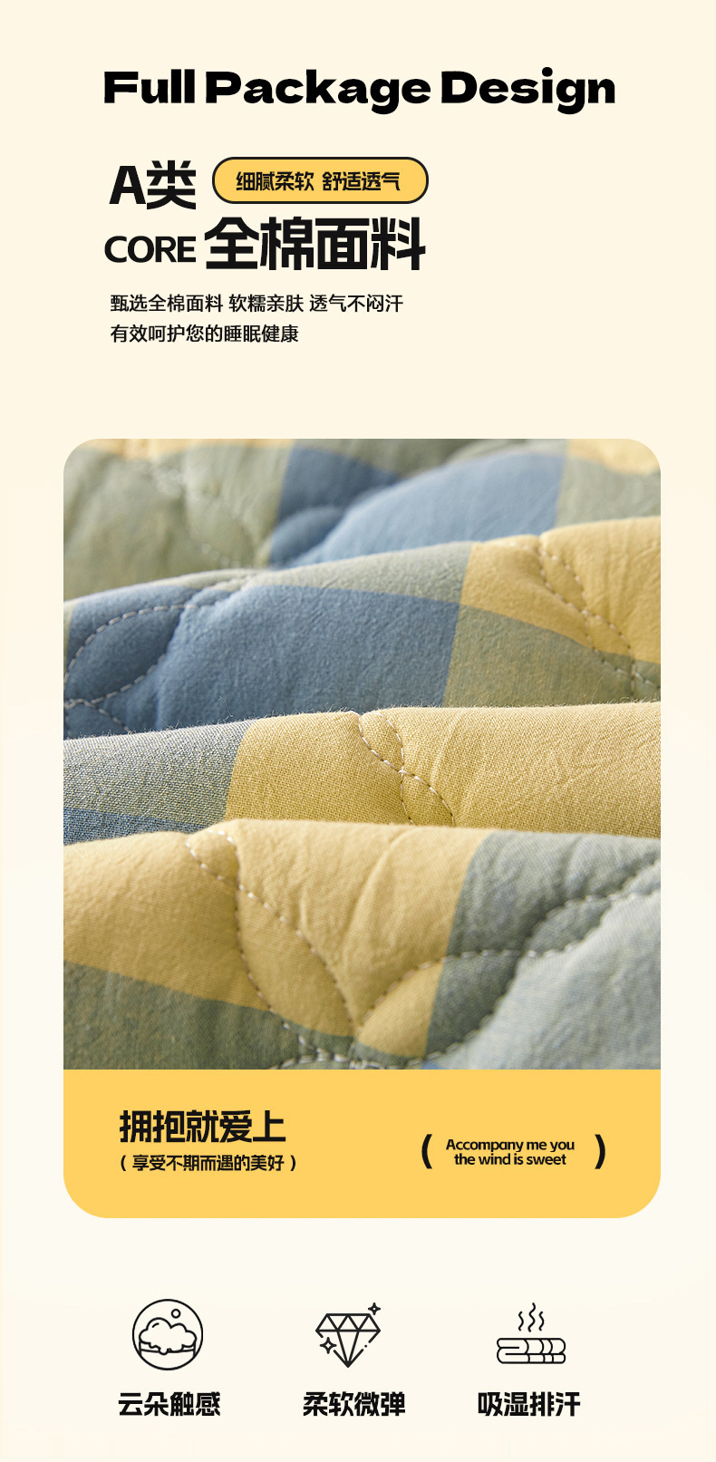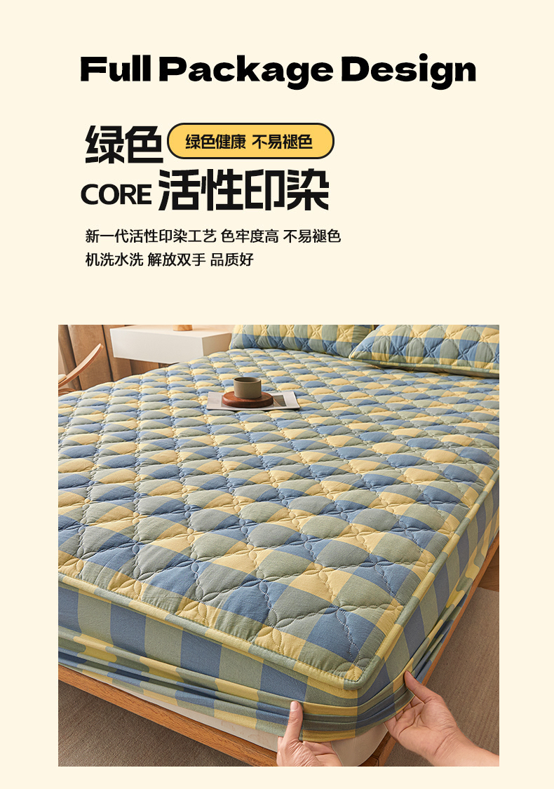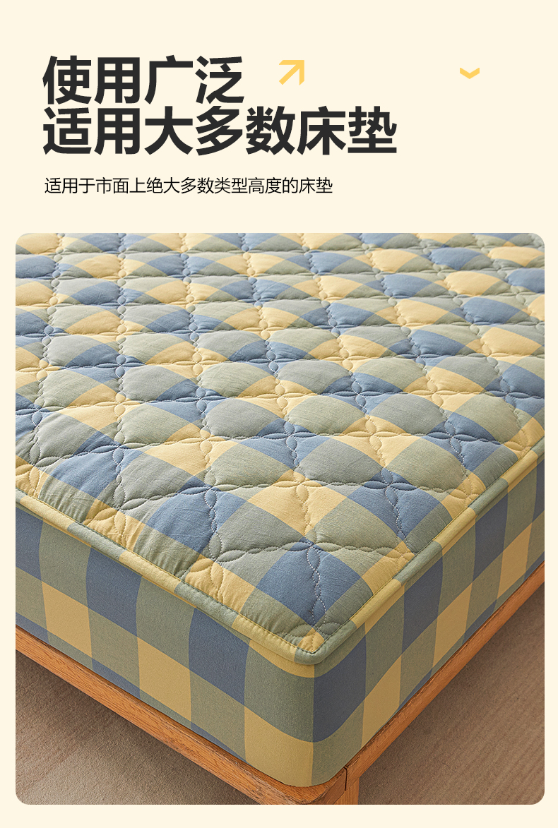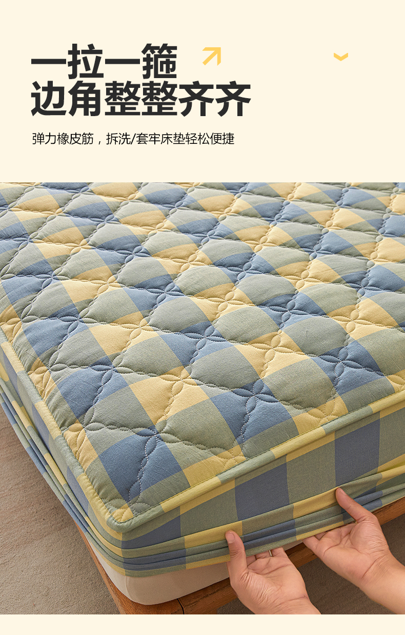 (总)糯米猪家纺 2023新款亲肤棉六面全包夹棉床笠--时尚格,水蓝,深蓝,灰色,白色,米色,粉玉