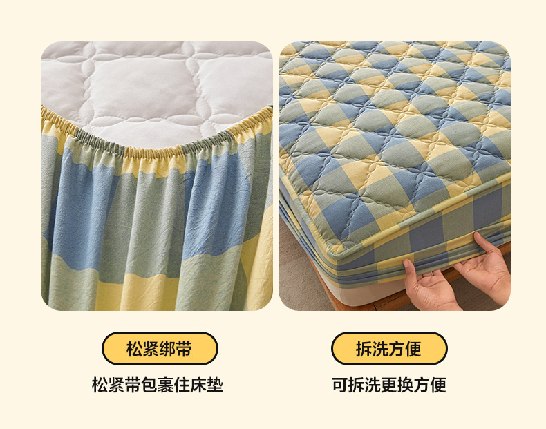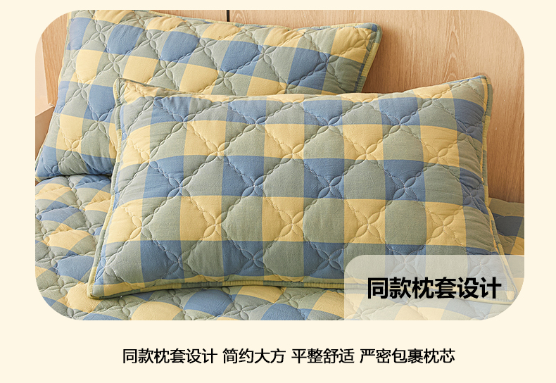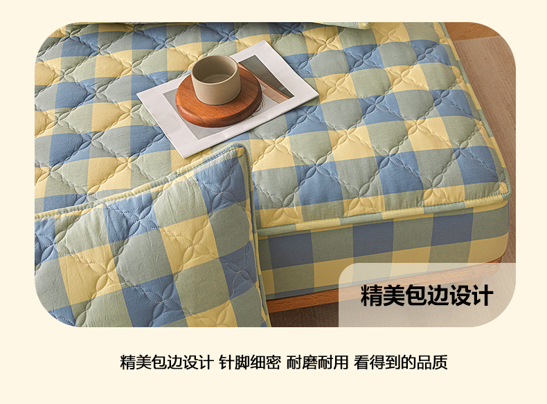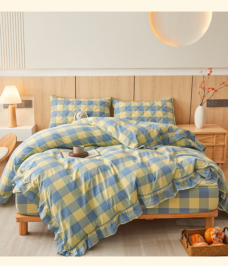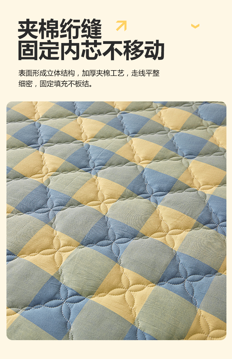 商品名称:糯米猪家纺 2025新款全棉色织水洗棉床笠 兰黄大格