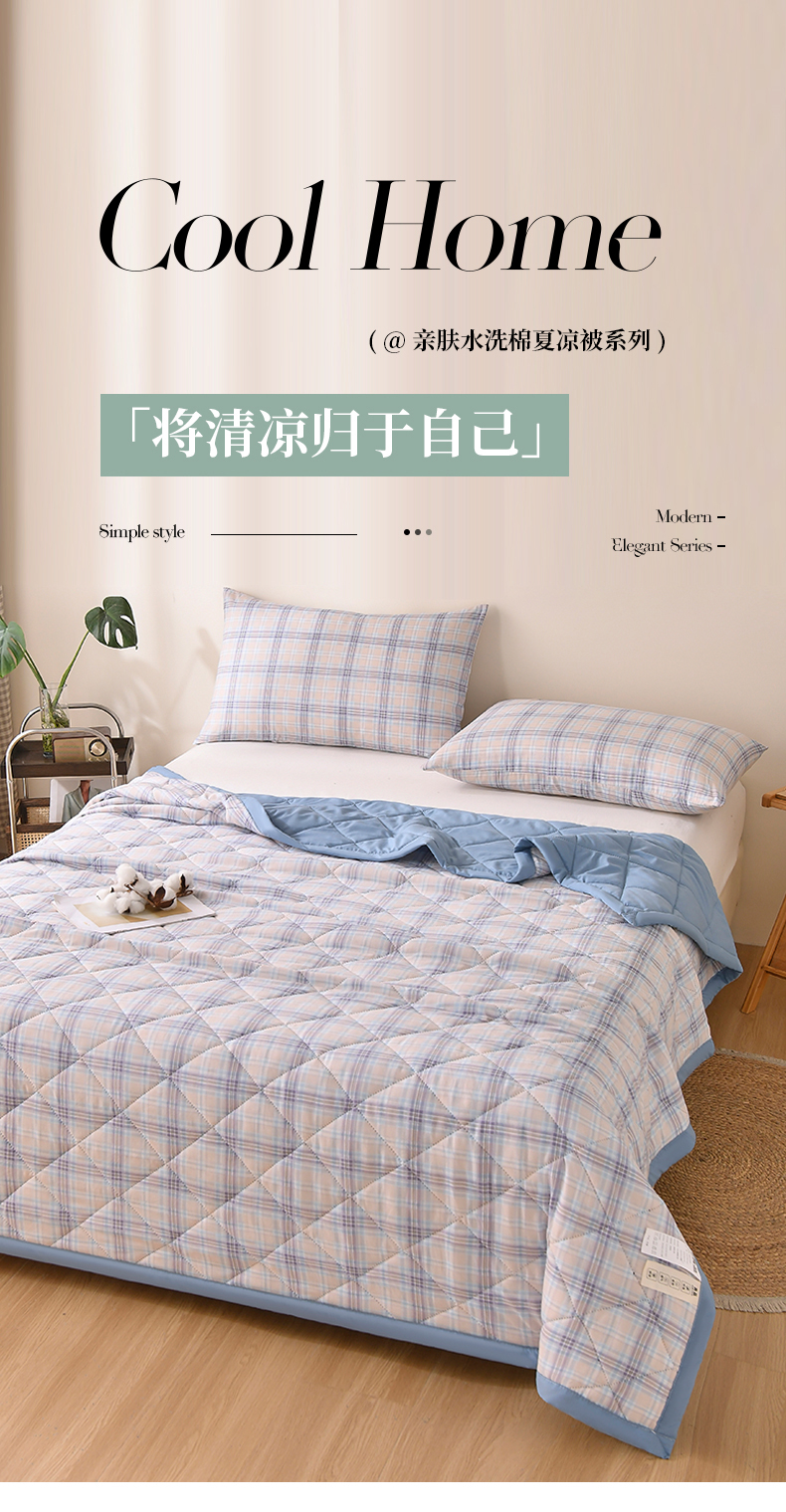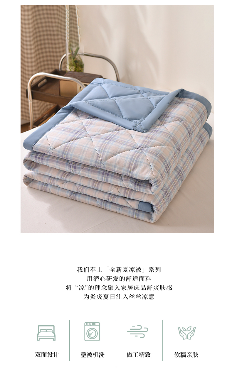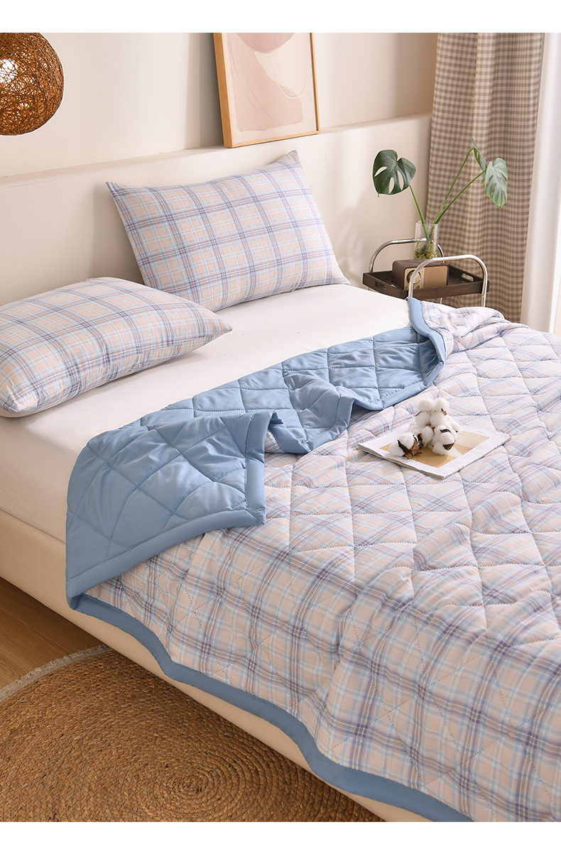 商品名称:培童 2025水洗棉夏被夏凉被空调被超声波压花礼品直播引流爆款 炫彩格蓝