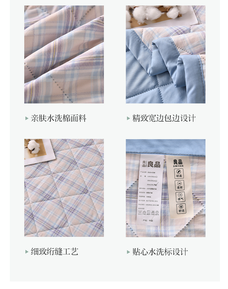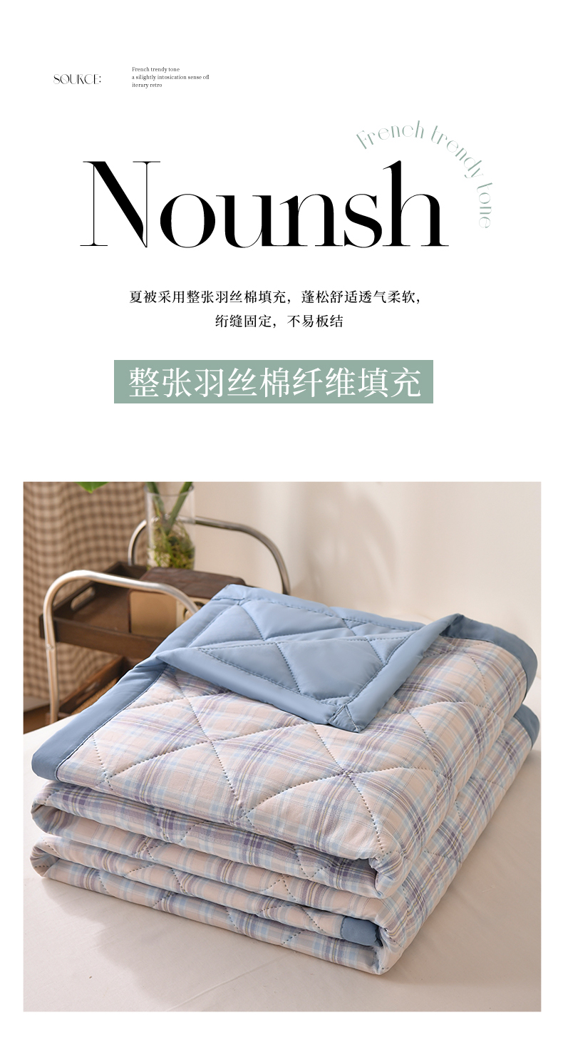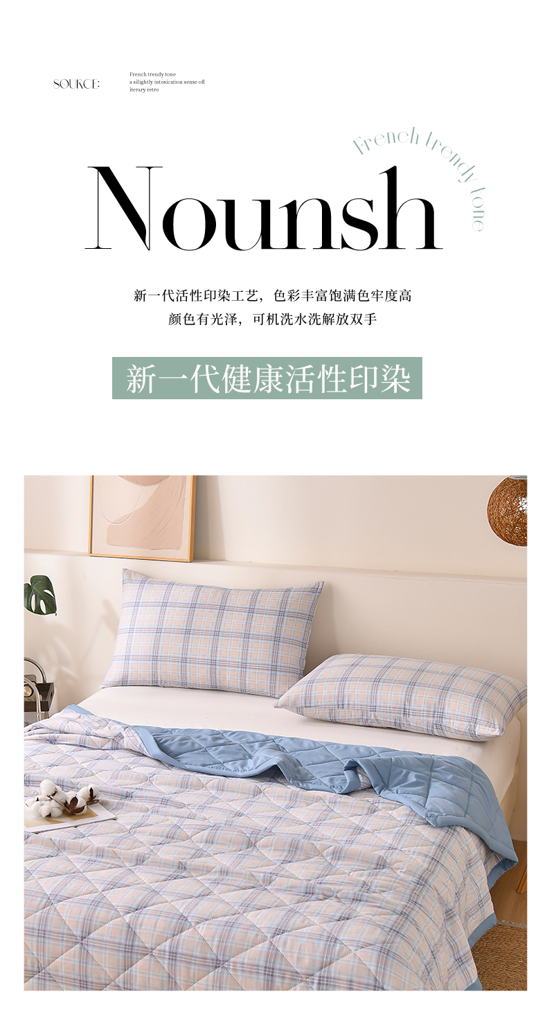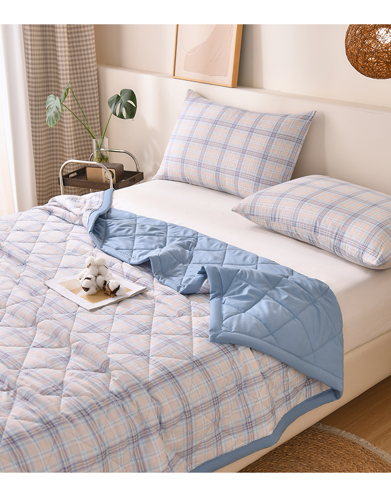 商品名称:培童 2025水洗棉夏被夏凉被空调被超声波压花礼品直播引流爆款 炫彩格蓝