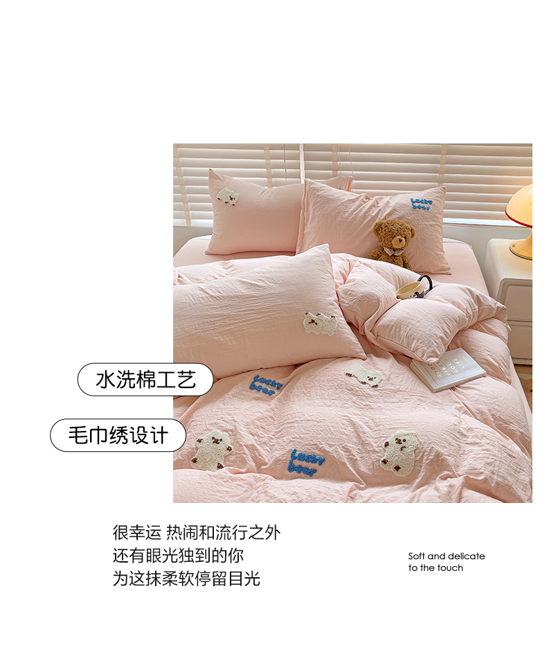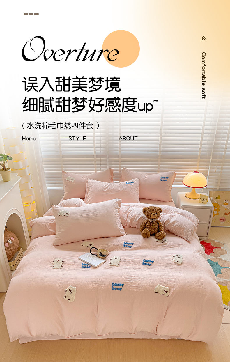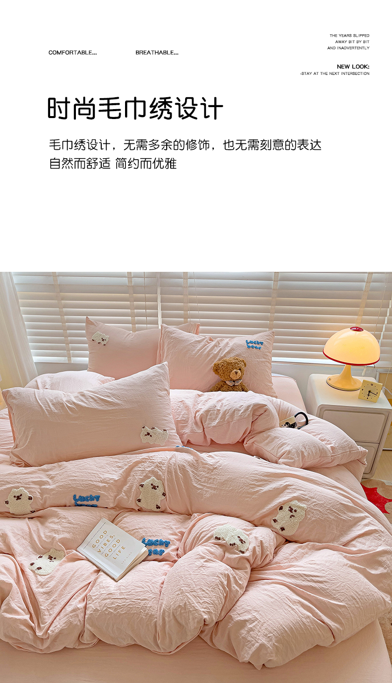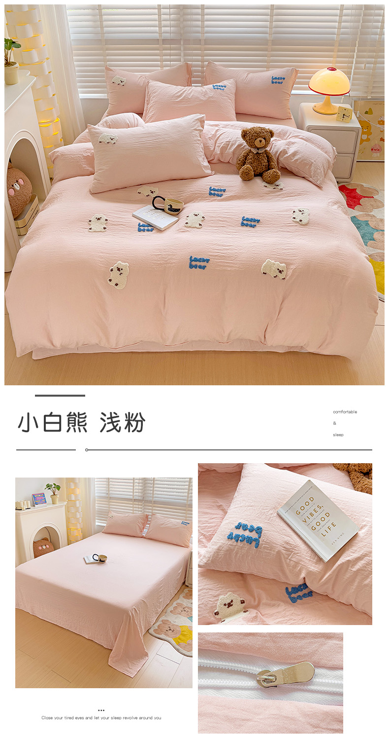 当前位置: 91家纺网 > 商品网购 > 床品套件 > 四件套 > 毛巾绣四件套 > 韩巢家纺 2025新款超柔水洗棉小白熊毛巾绣四件套-(提供卖家秀) 小白熊浅粉