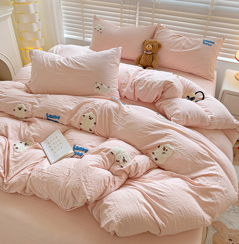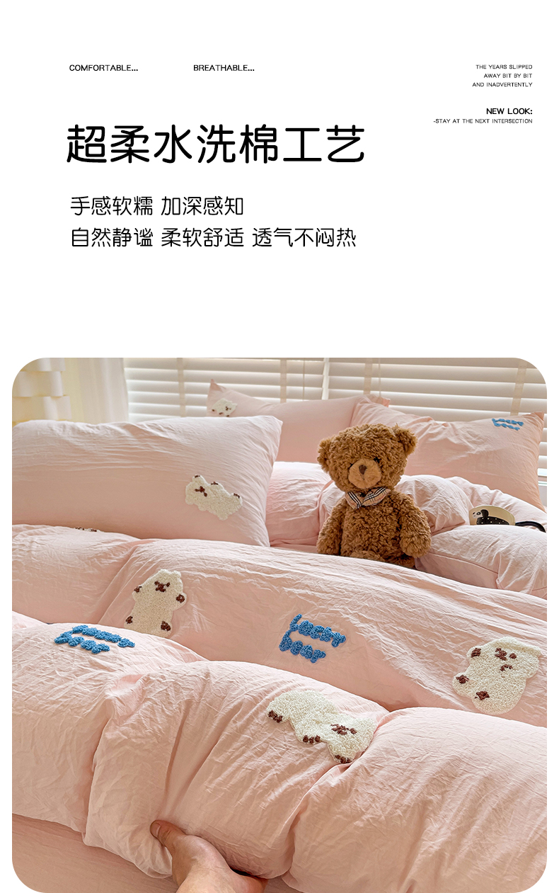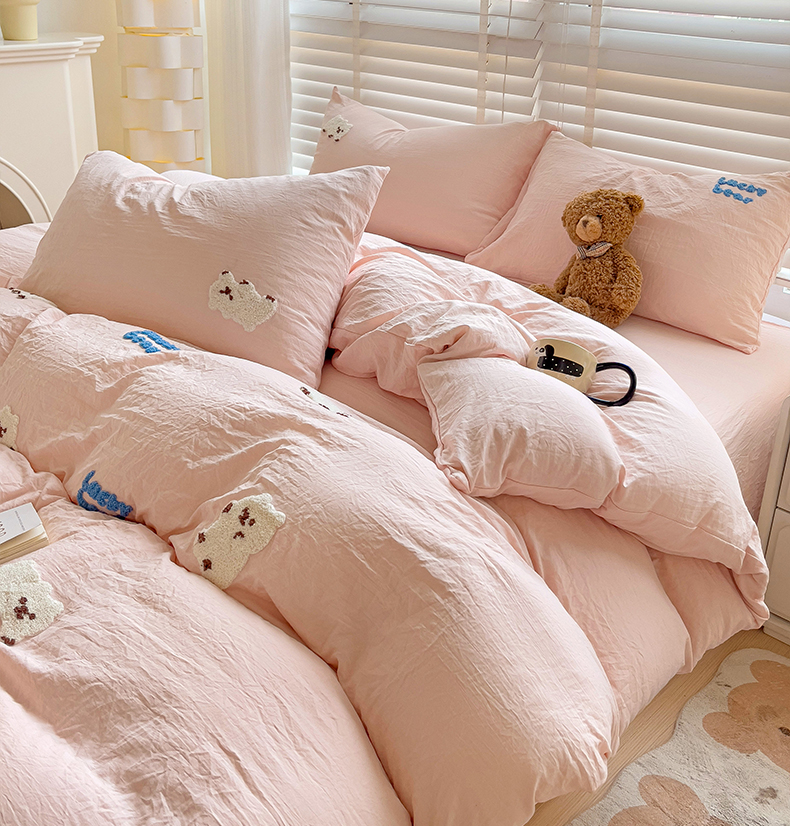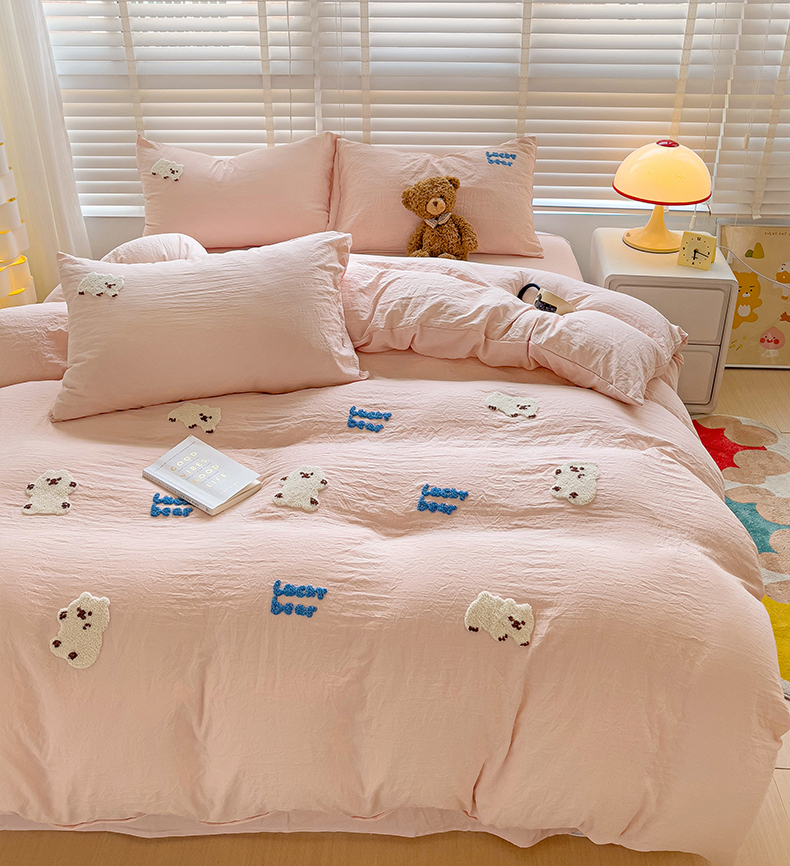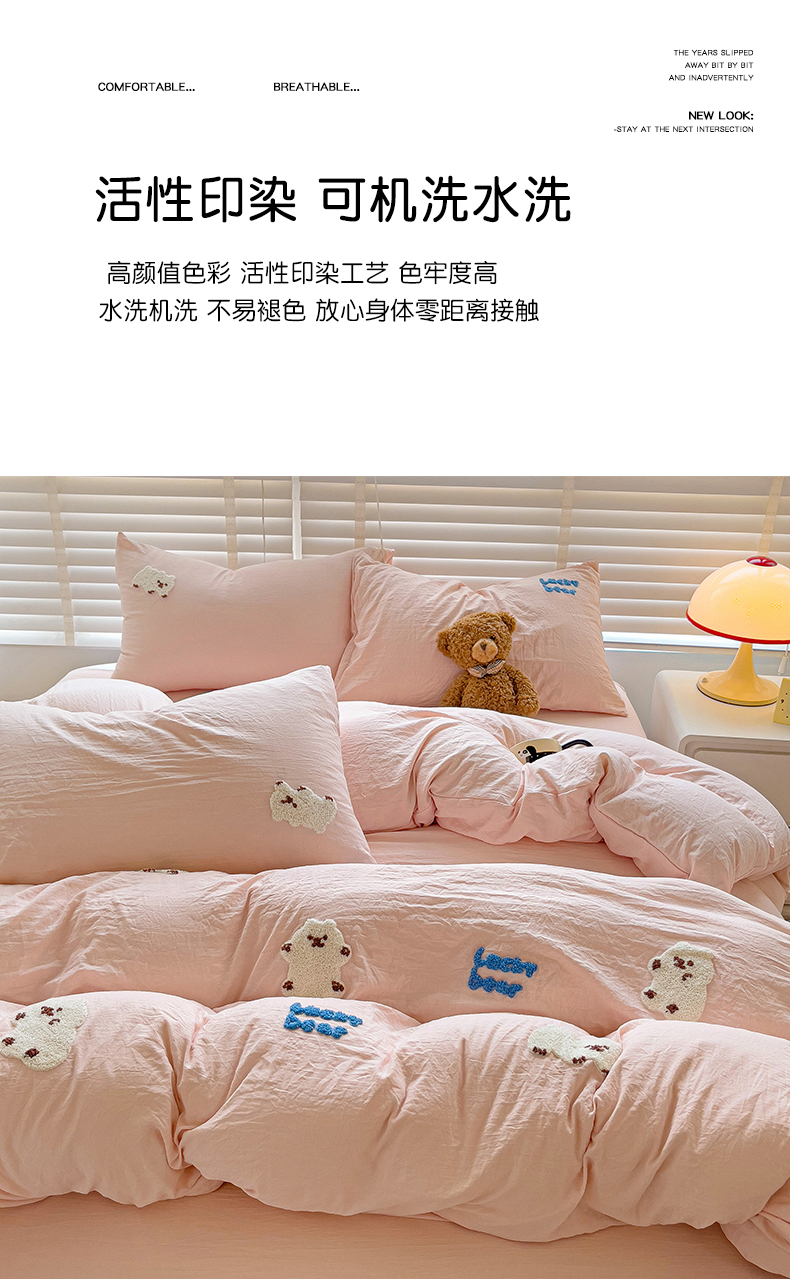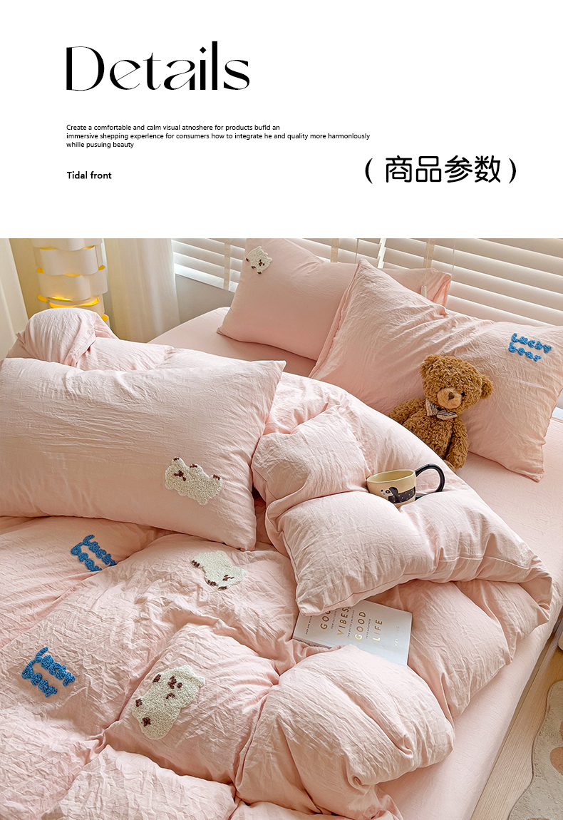 当前位置: 91家纺网 > 商品网购 > 床品套件 > 四件套 > 毛巾绣四件套 > 韩巢家纺 2025新款超柔水洗棉小白熊毛巾绣四件套-(提供卖家秀) 小白熊浅粉