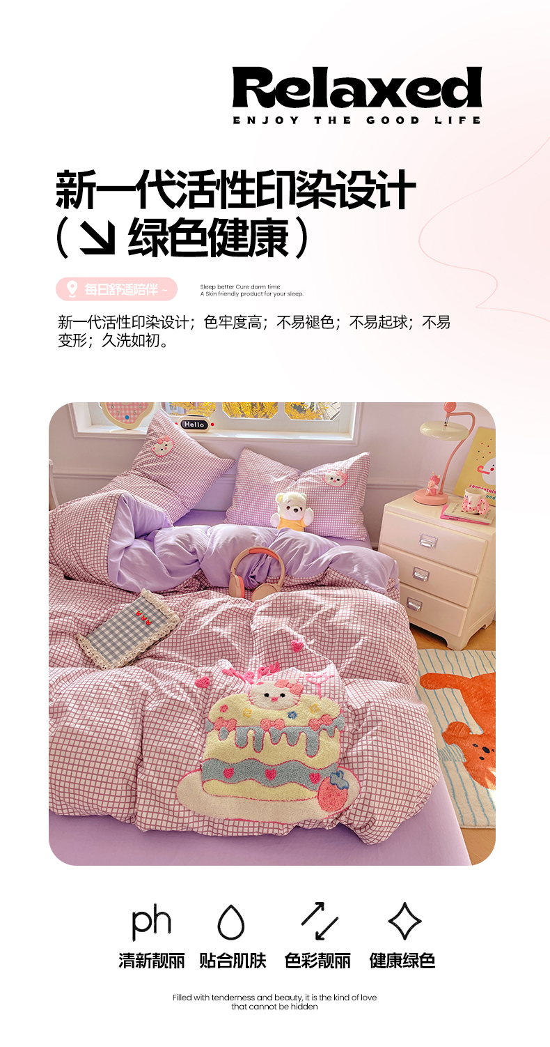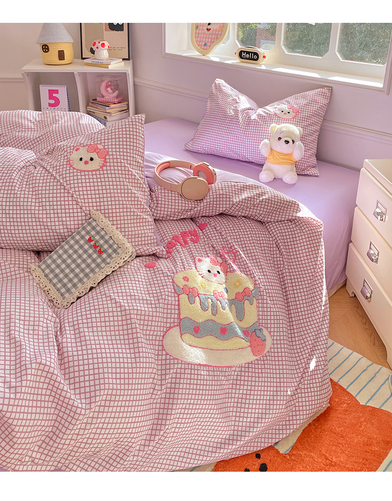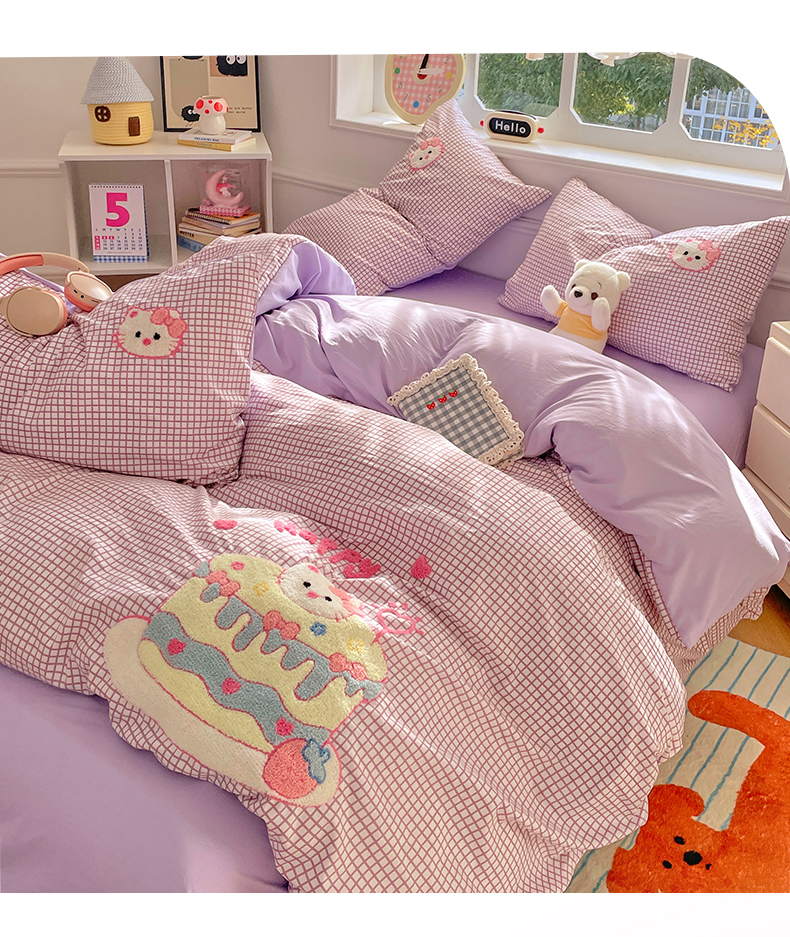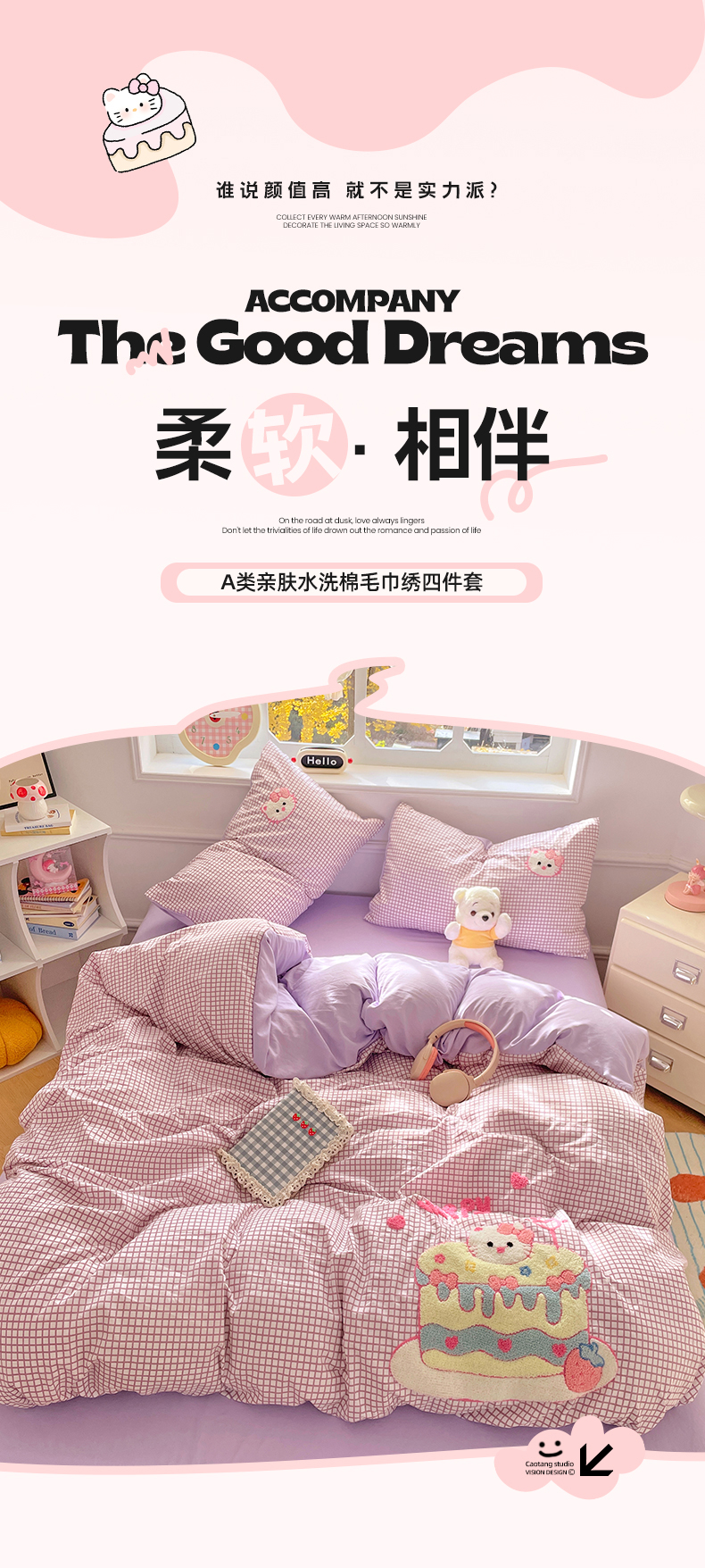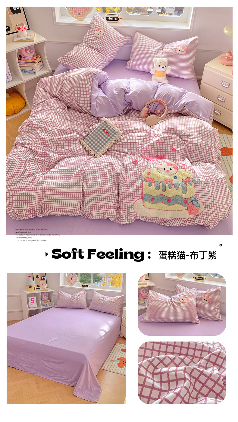 当前位置: 91家纺网 > 商品网购 > 床品套件 > 四件套 > 水洗棉四件套 > 优卡迪家纺馆 2025新款110克水洗棉无印风毛巾绣四件套【下载文件夹包含买家秀】 蛋糕猫-布丁紫
