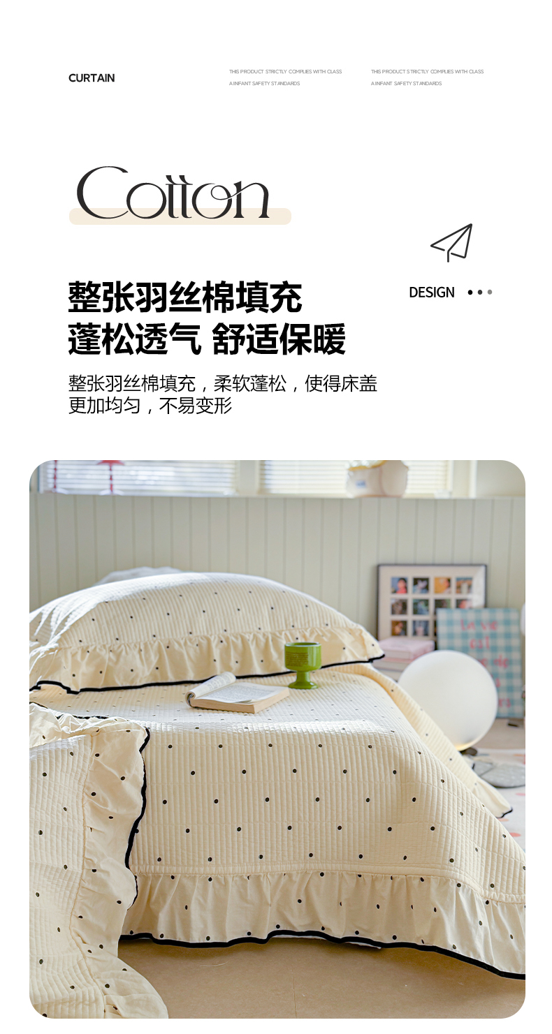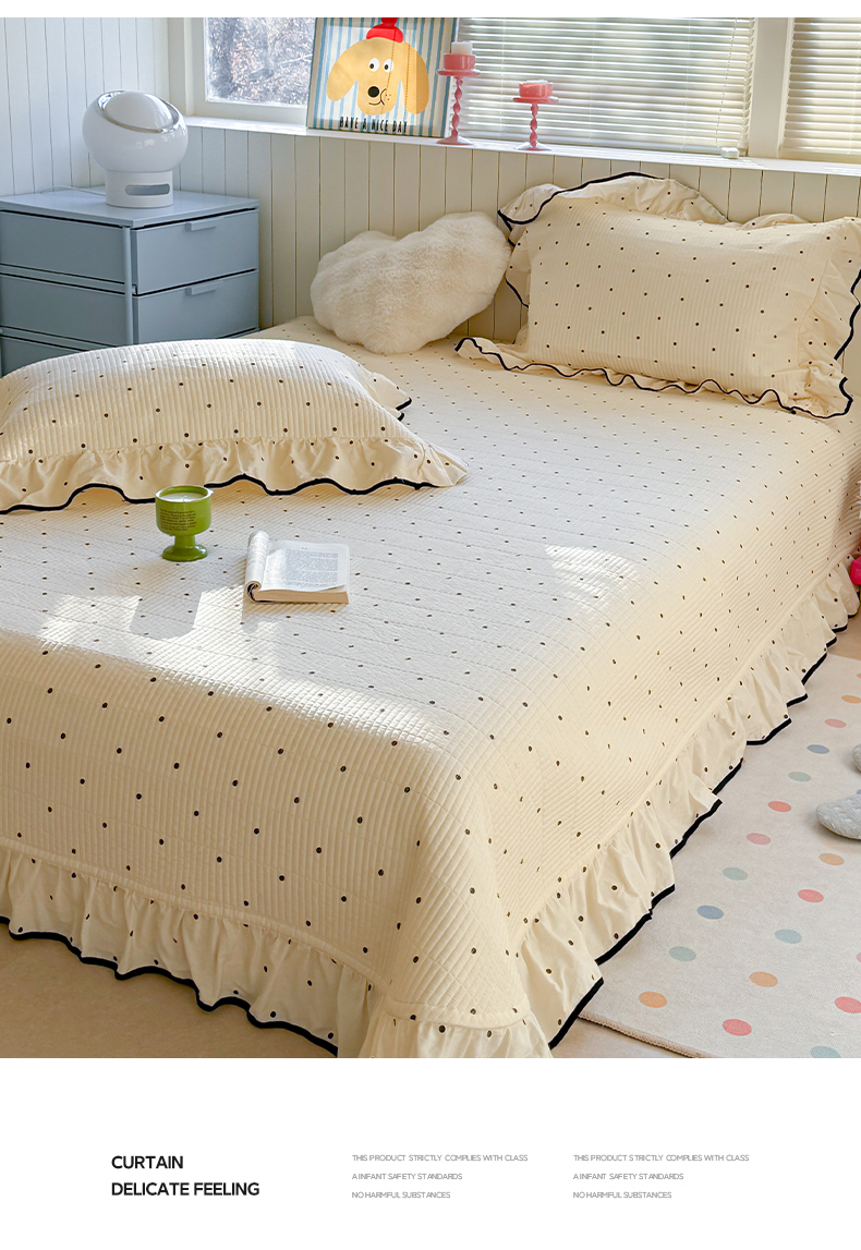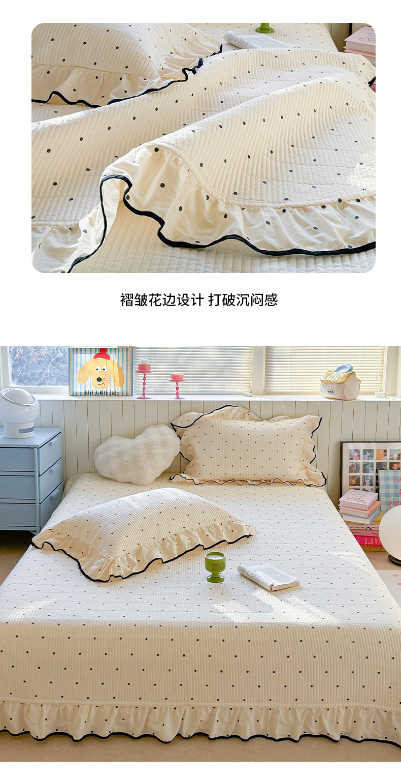 繁花家居 2025新款韩式大花边夹棉床盖系列 波点象牙白