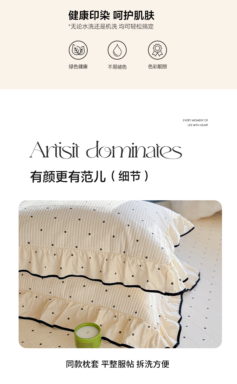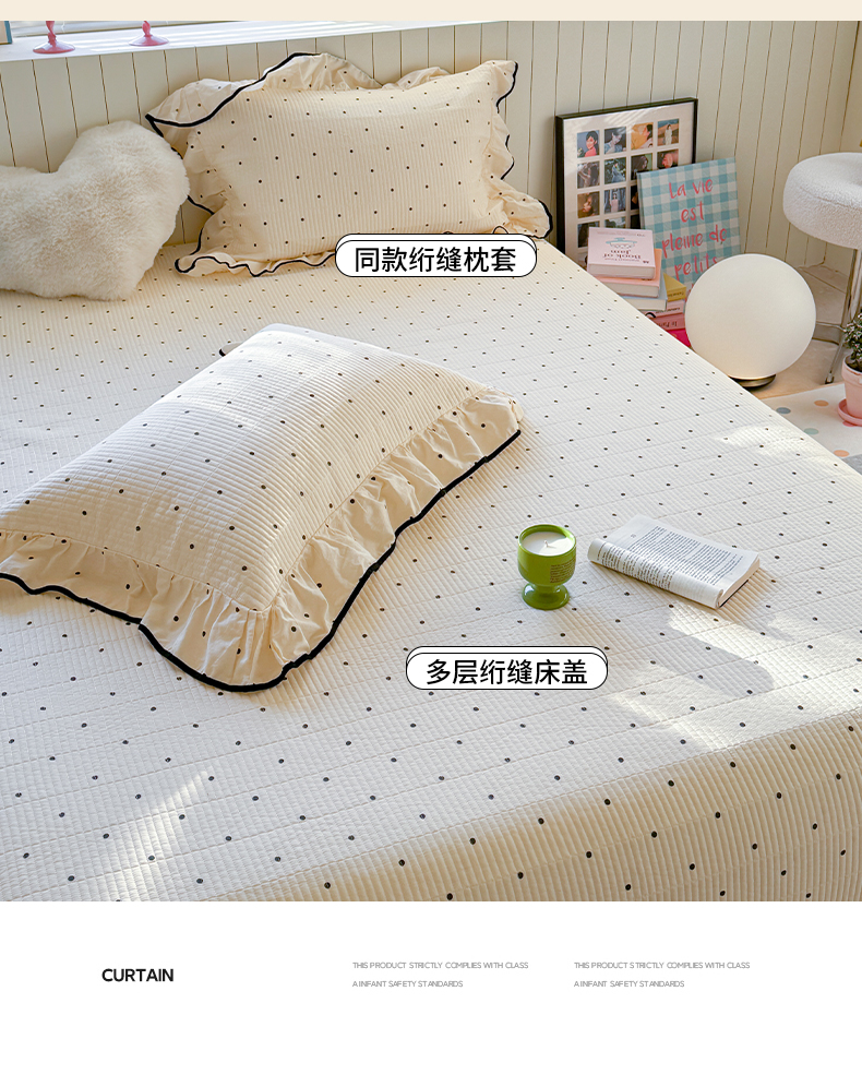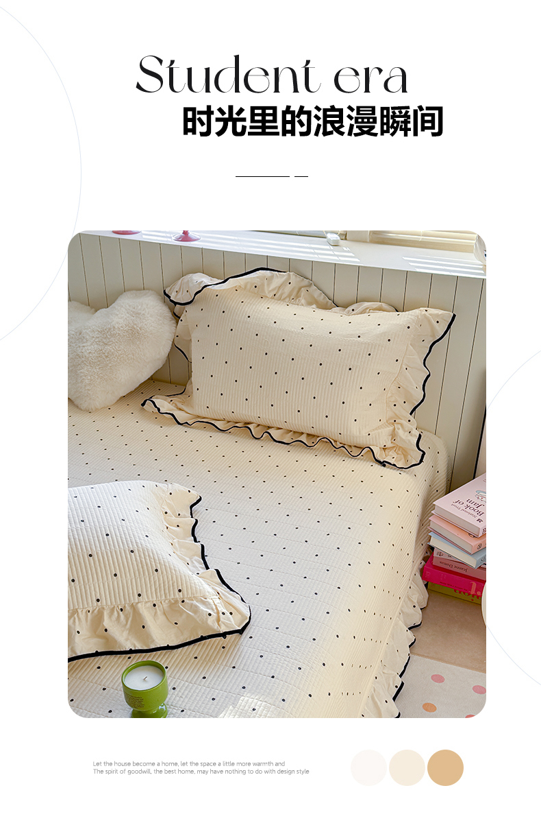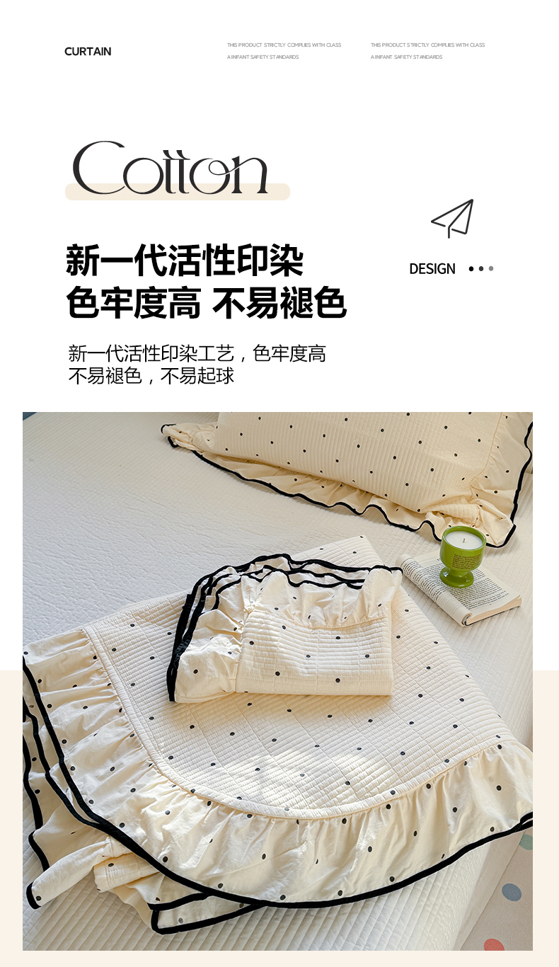 繁花家居 2025新款韩式大花边夹棉床盖系列 波点象牙白