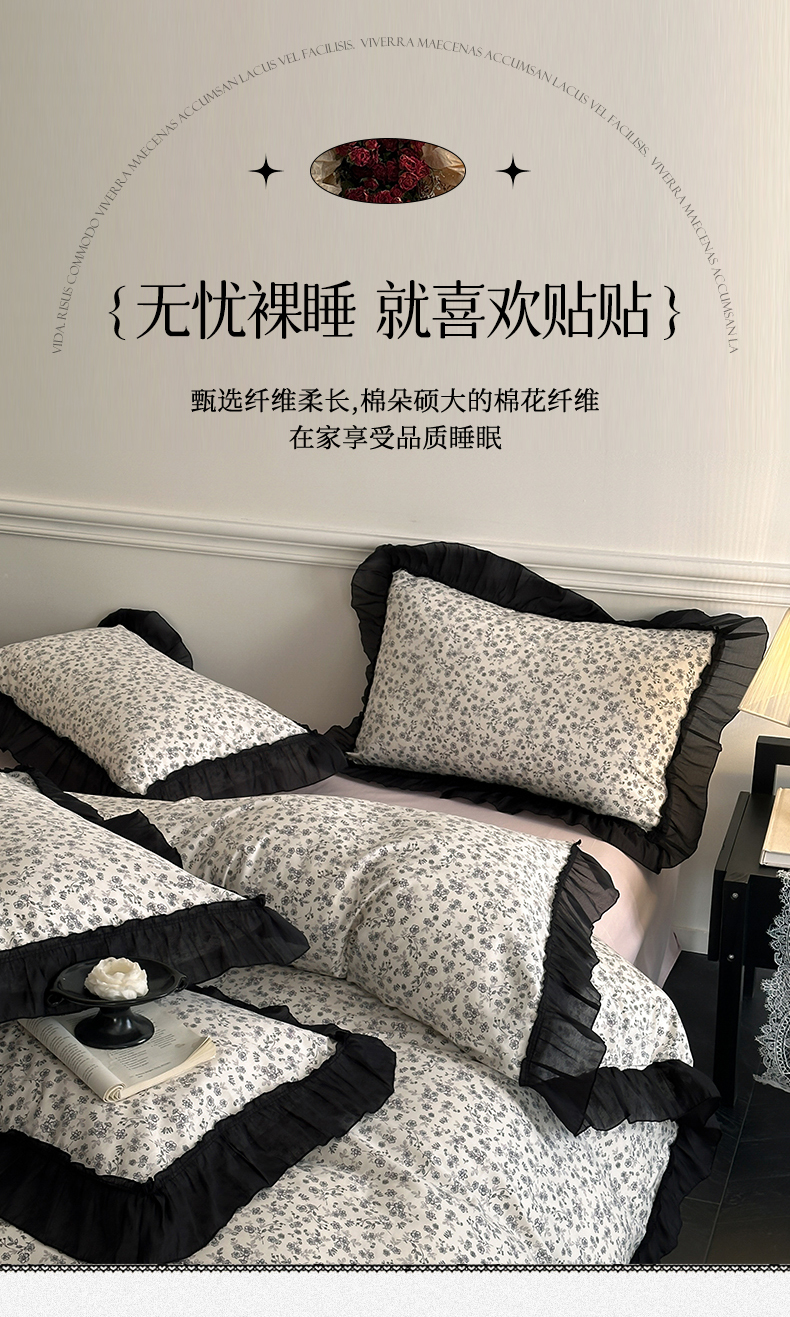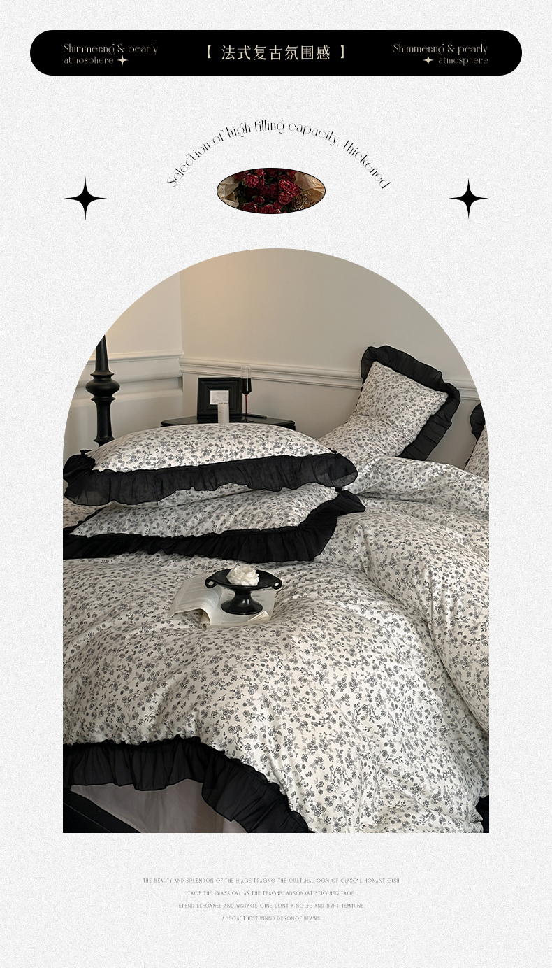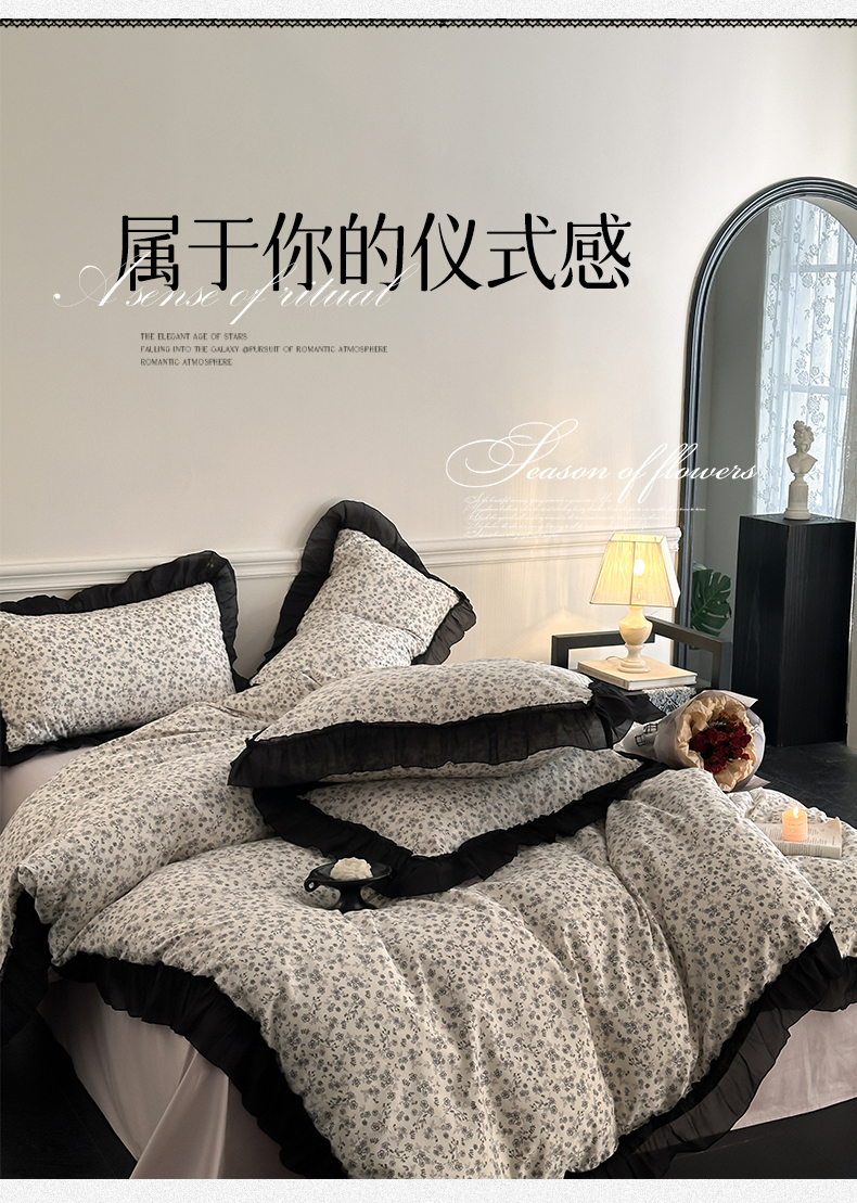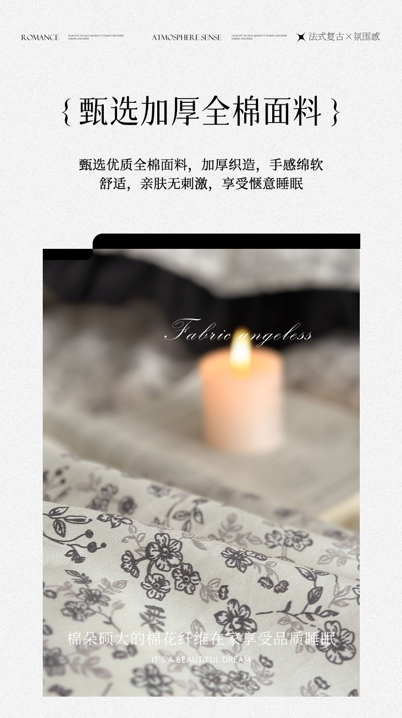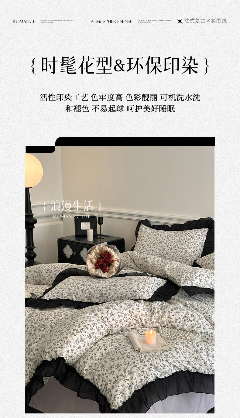 当前位置: 91家纺网 > 商品网购 > 床品套件 > 四件套 > 全棉普通四件套 > 蓝邻家纺 2025年新款全棉法式复古真丝绉花边四件套系列 牧野繁花