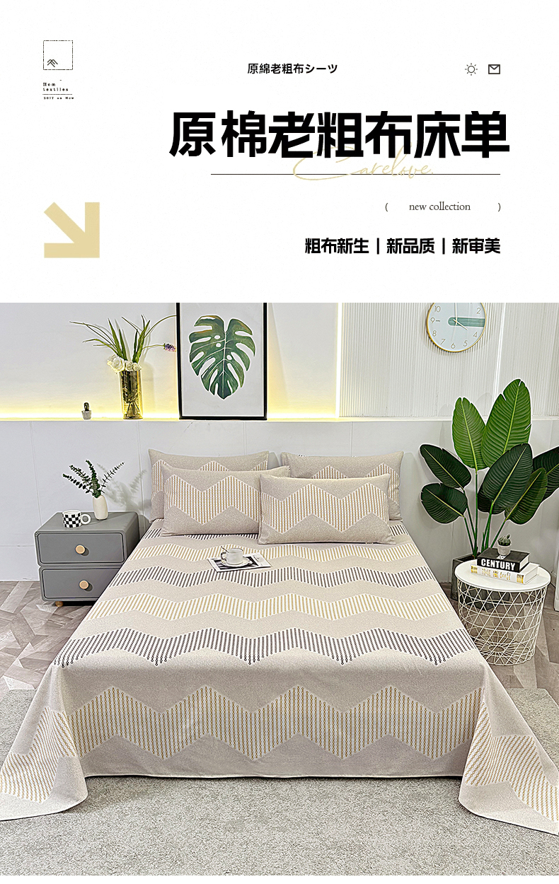 • 91家纺网 家纺一手货源 找家纺 伊而梦蚊帐 2025新款原棉老粗布床单 波浪条