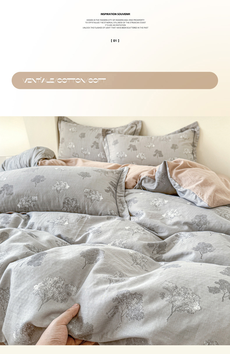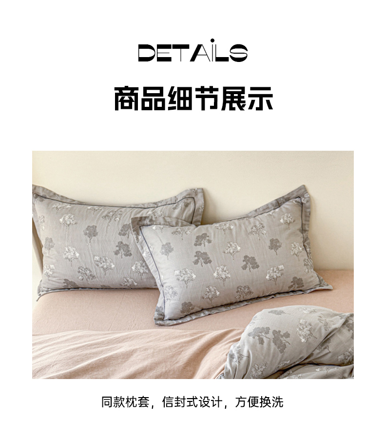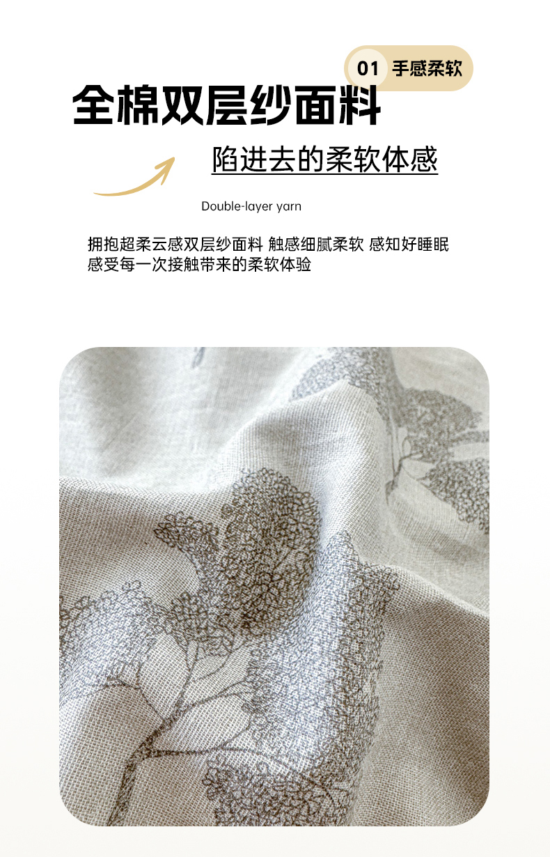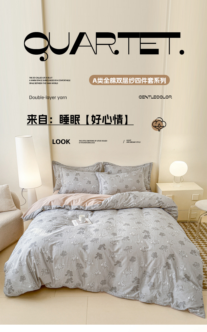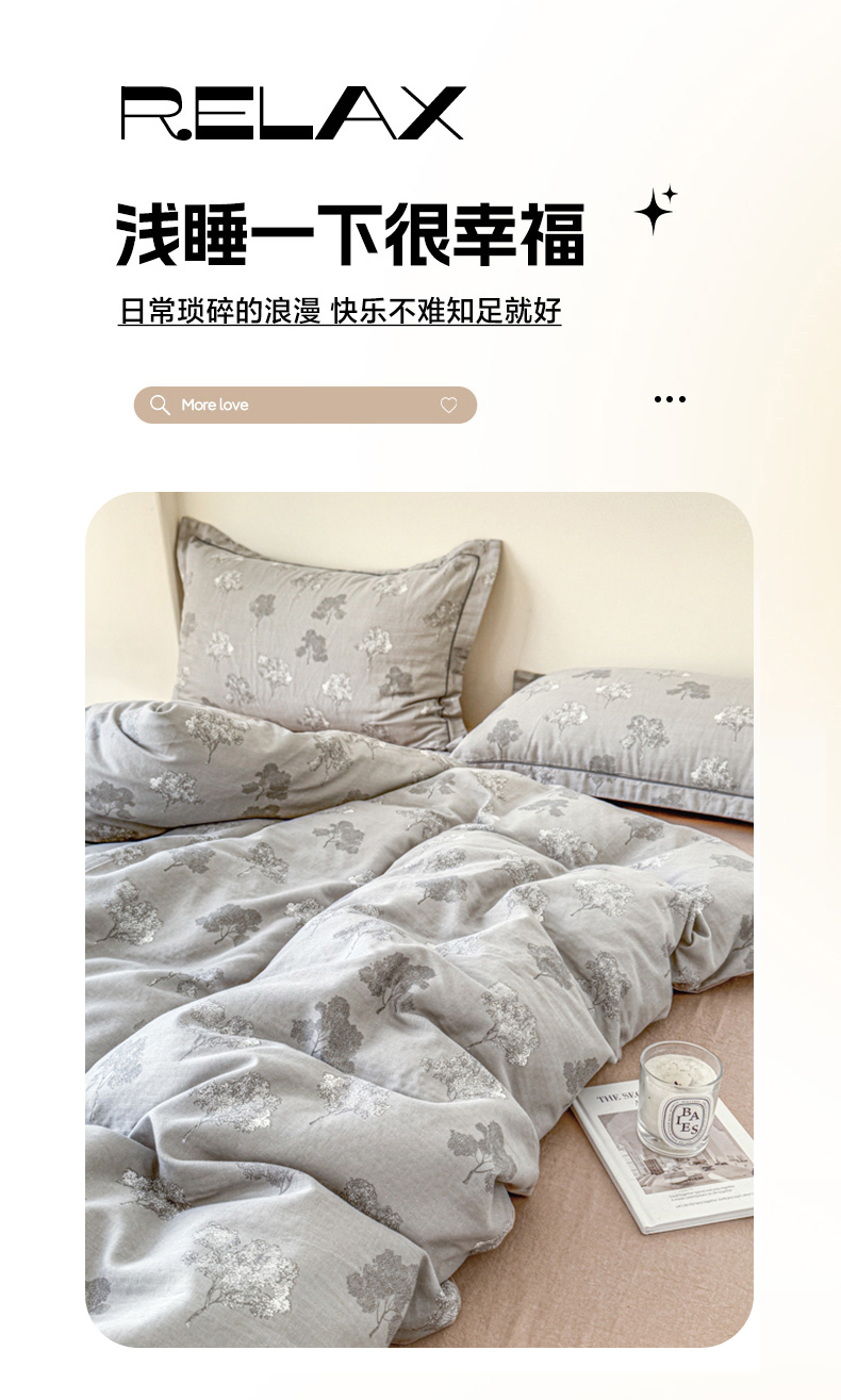 喜四方 2025新款全棉A类母婴级抗菌全棉双层纱四件套 枫叶