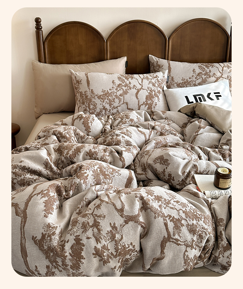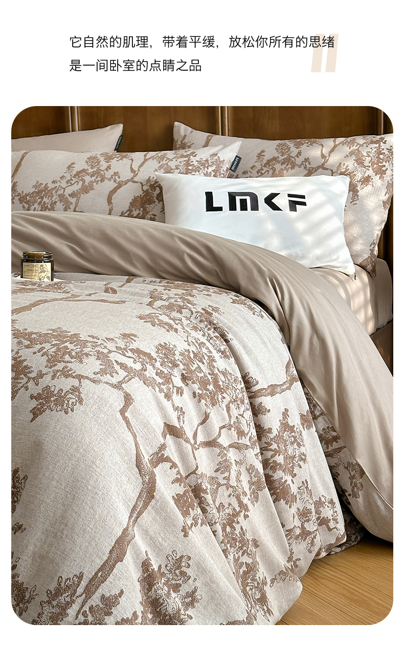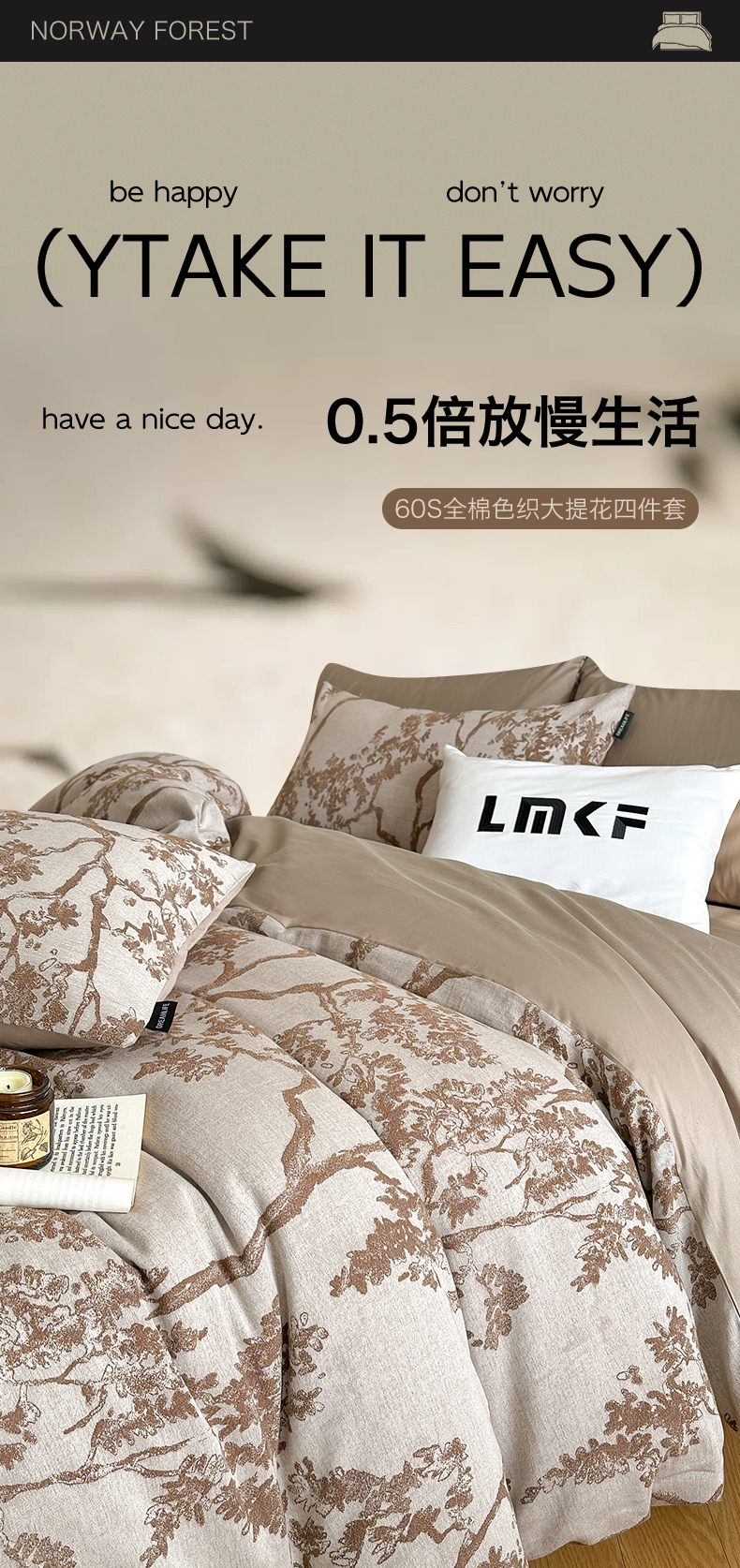 蓝米卡夫 2025新品-60S全棉色织大提花四件套(礼盒包装) 挪威森林-咖