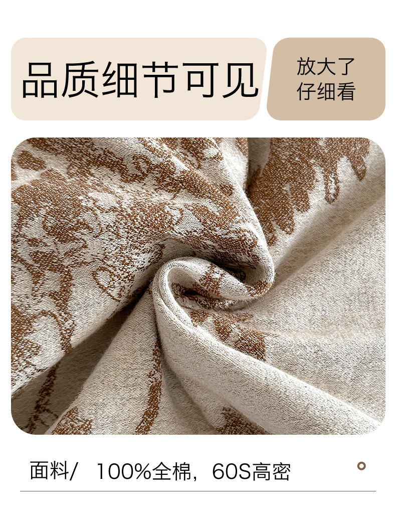 (总)蓝米卡夫 2025秋冬-棉麻色织全棉提花60支磨毛花边款(礼盒包装)提供买家秀,无限之光-卡其,摩卡-灰,纳斯-本色