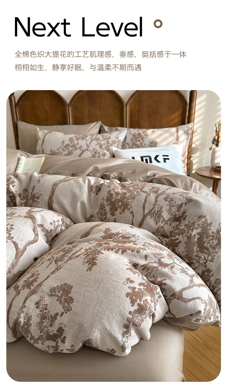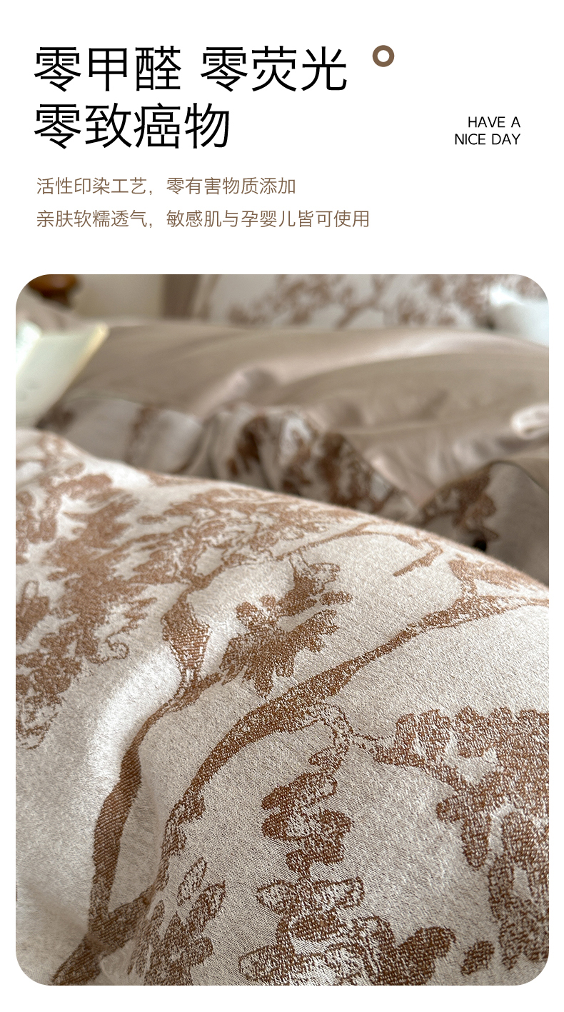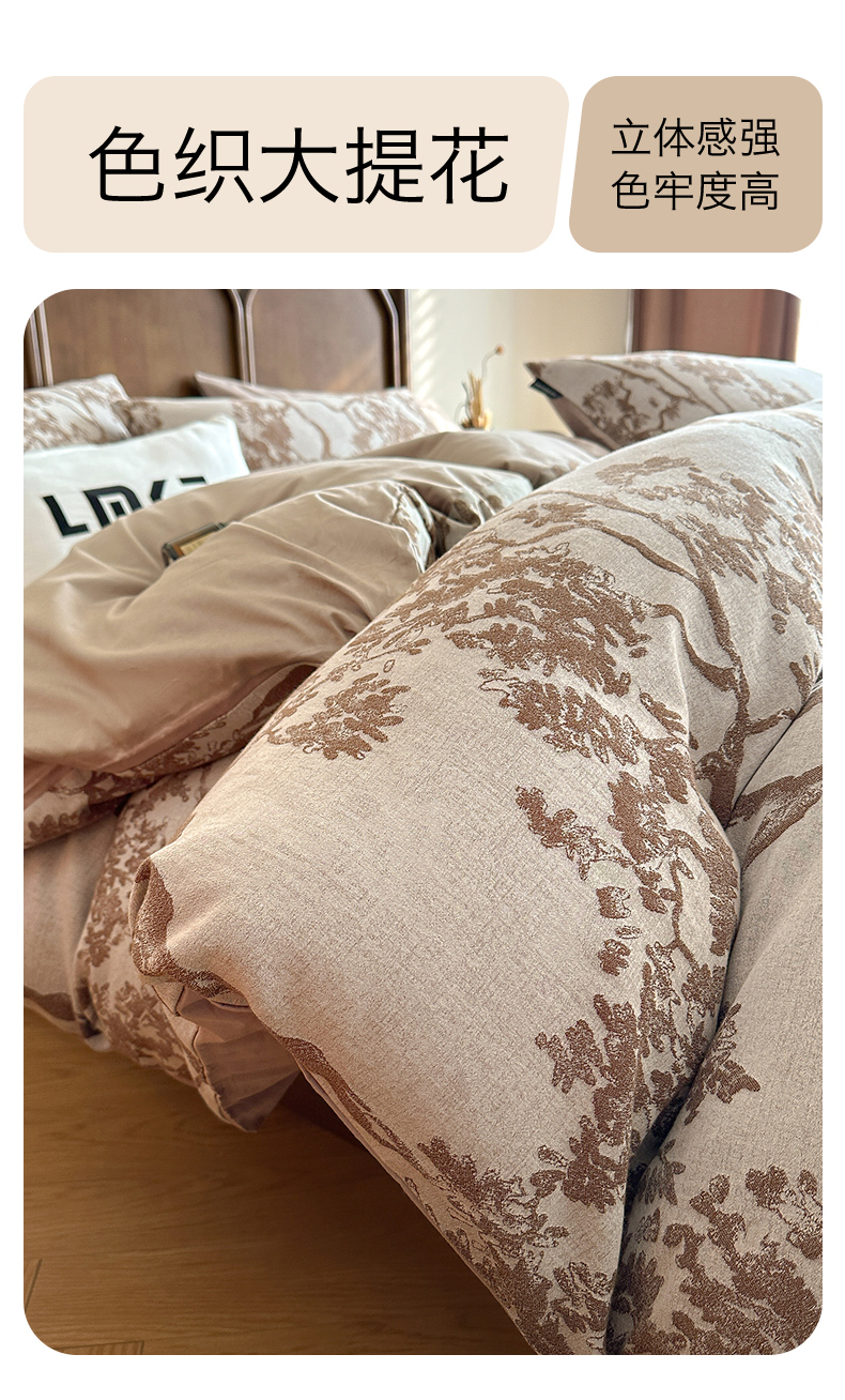 商品名称:蓝米卡夫 2025新品-60S全棉色织大提花四件套(礼盒包装) 挪威森林-咖