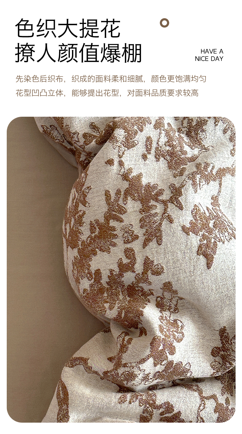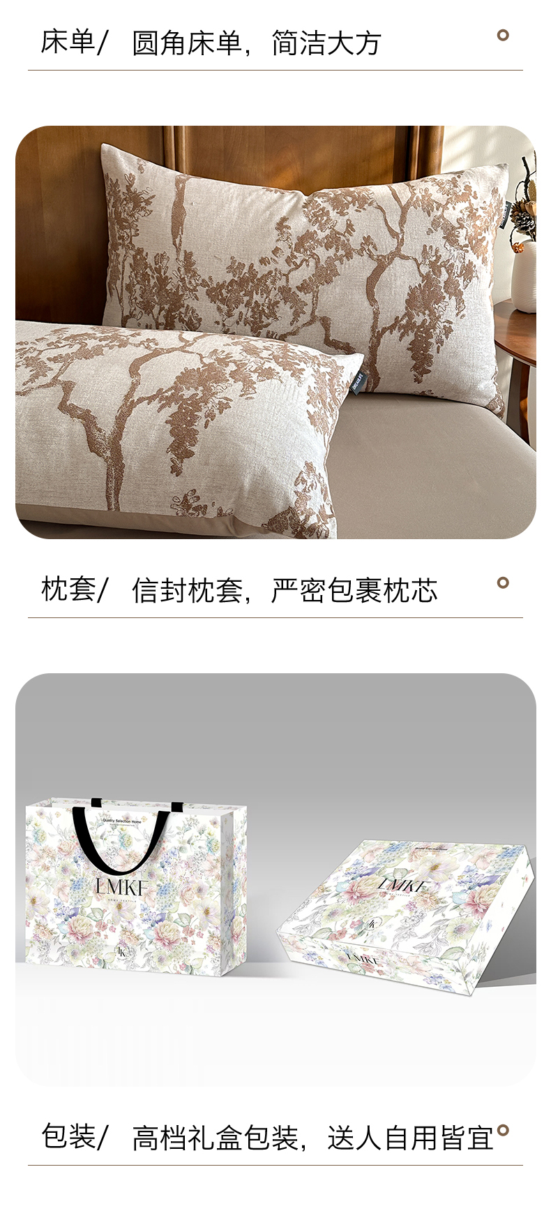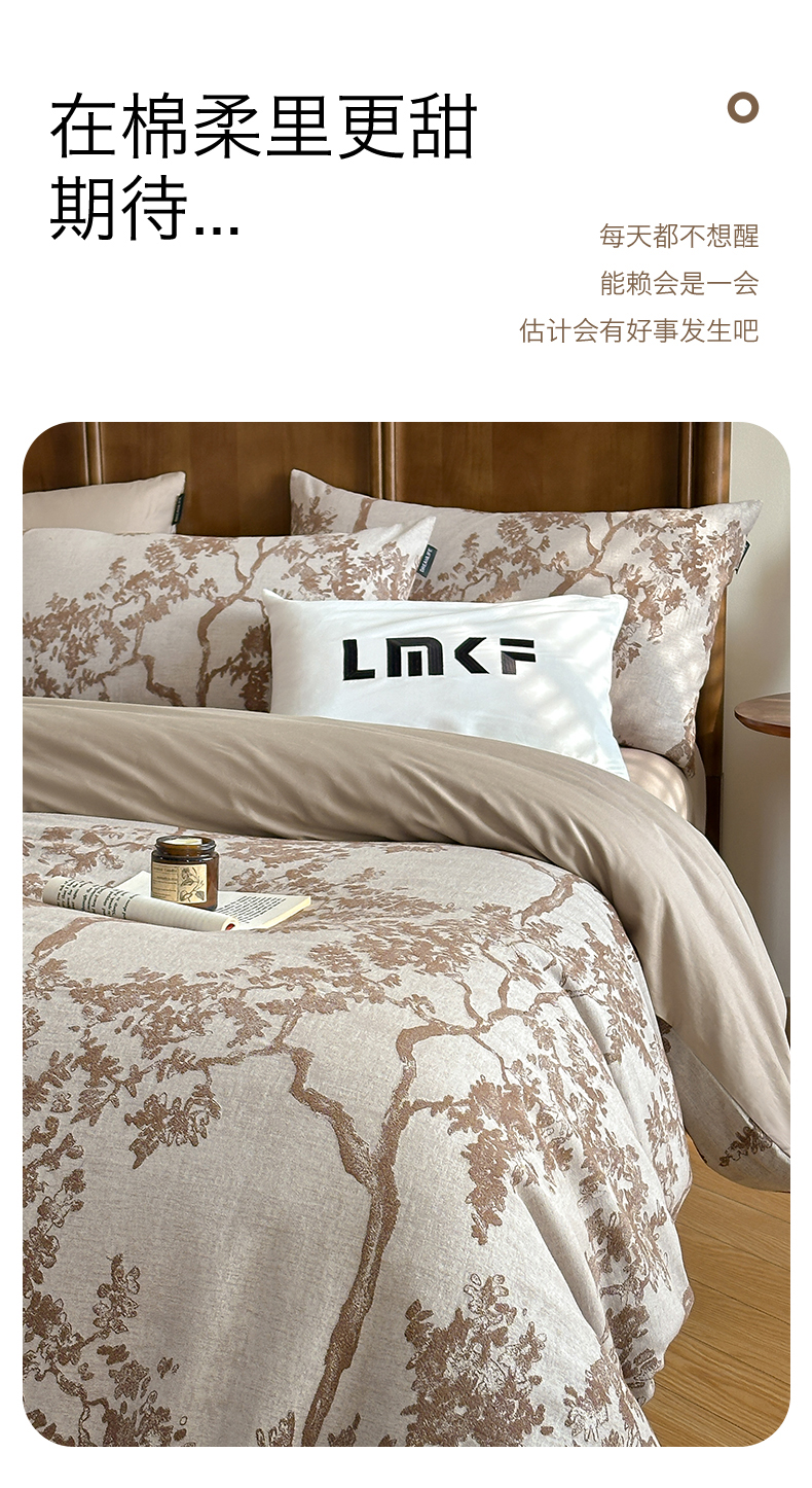 商品名称:蓝米卡夫 2025新品-60S全棉色织大提花四件套(礼盒包装) 挪威森林-咖