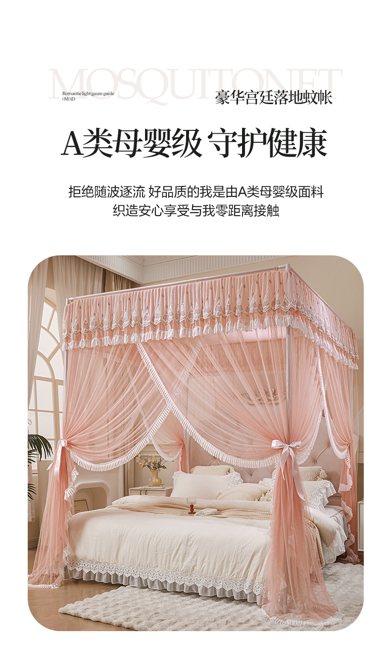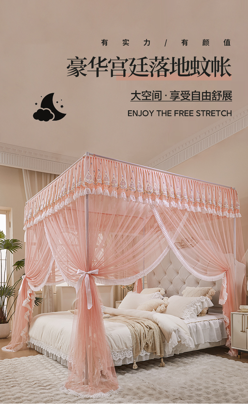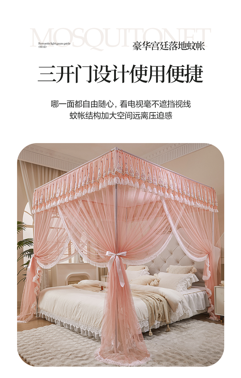 当前位置: 91家纺网 > 商品网购 > 床上用品 > 蚊帐 > 宫廷蚊帐 > 伊而梦蚊帐 2025新款 豪华宫廷三开门落地蚊帐-宁境系列 907宁境-暖玉-22#支架