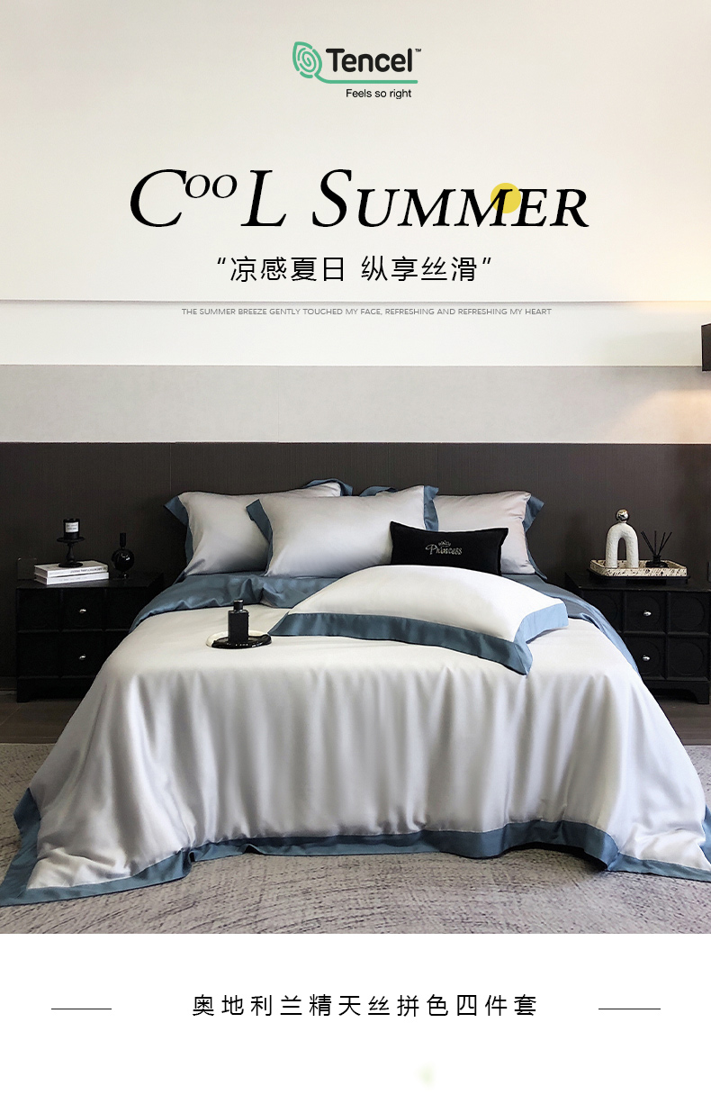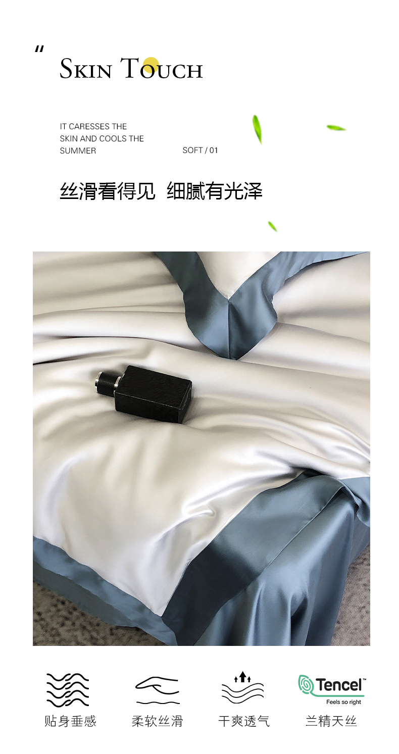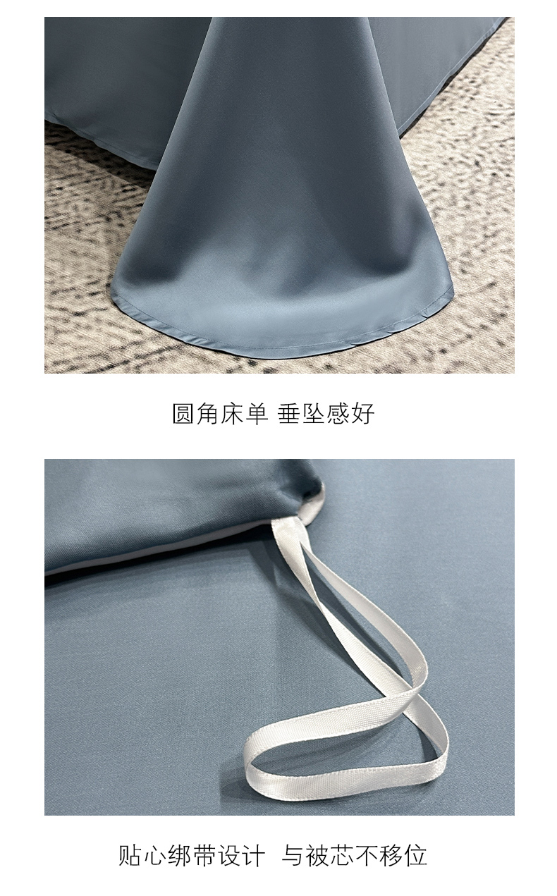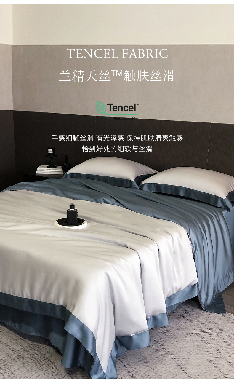 商品名称:云栖家居 2025莱赛尔60兰精天丝双拼纯色四件套 千寻灰&海港蓝
