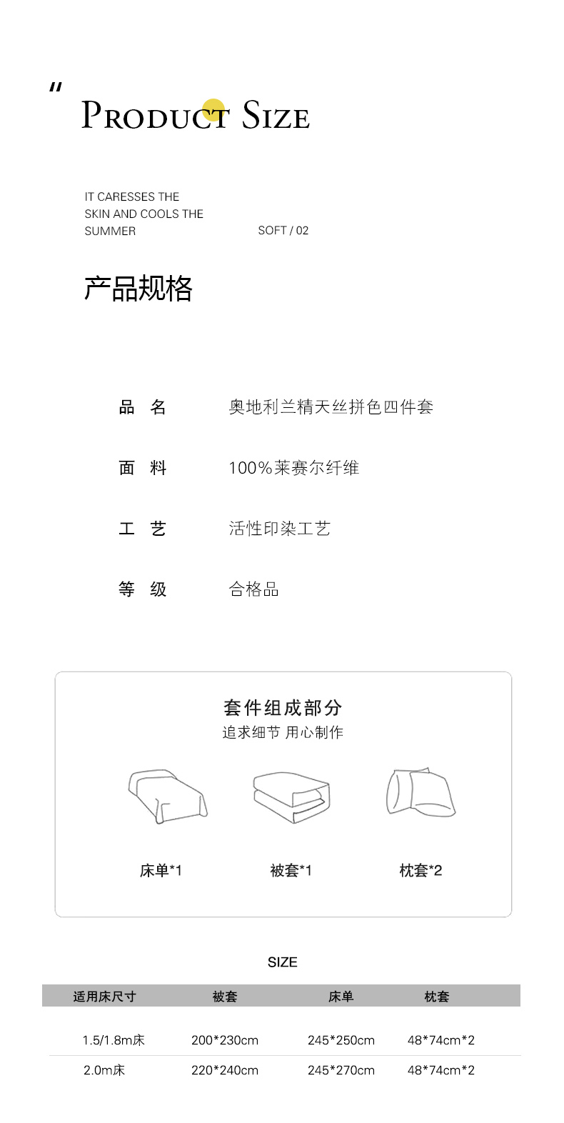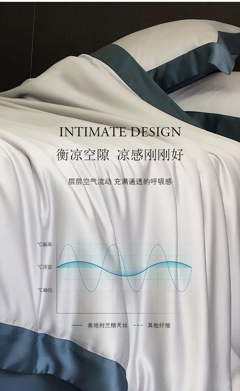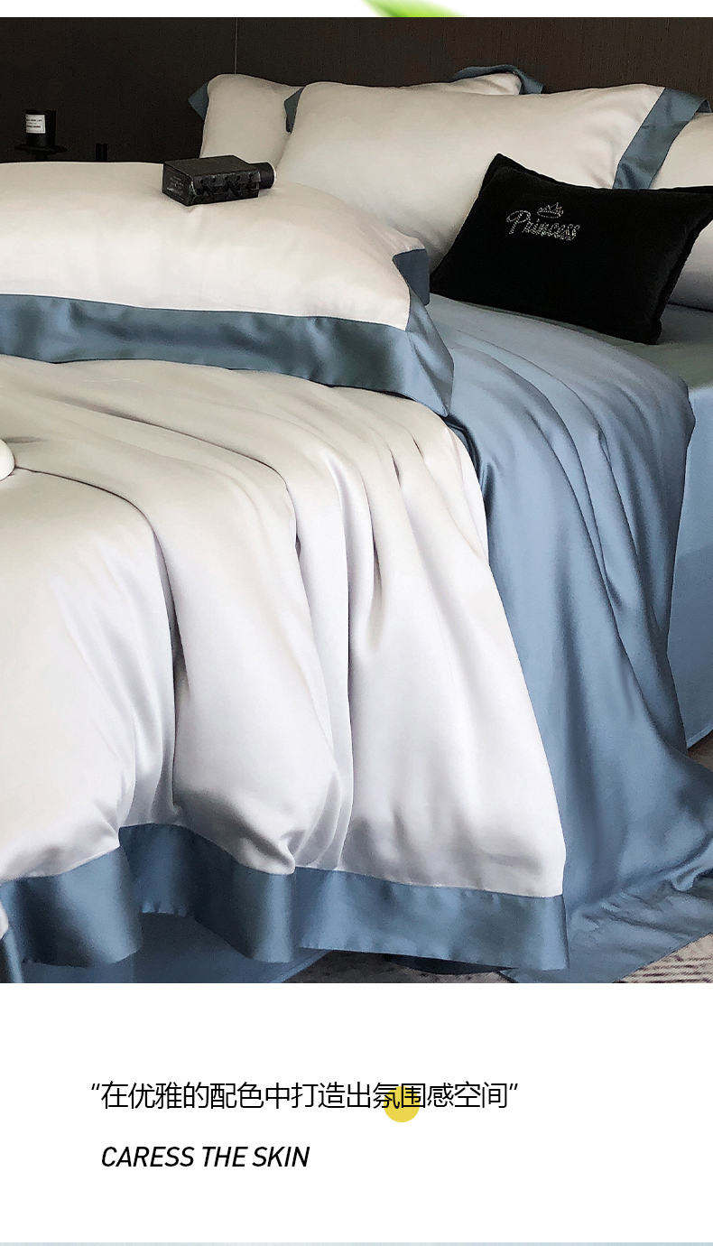 商品名称:云栖家居 2025莱赛尔60兰精天丝双拼纯色四件套 千寻灰&海港蓝