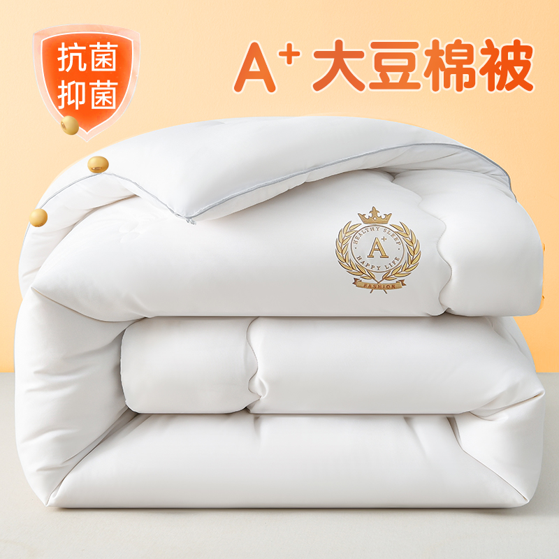 悦织湾2025新款A类母婴级大豆纤维双拼被3-10斤春秋被冬被夏被空调被轻奢时尚 瓷白