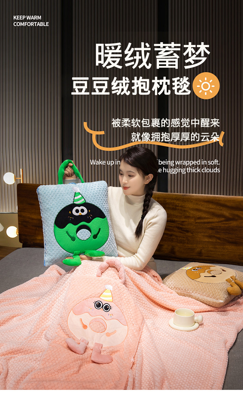 (总)中华鲟2025新款多功能豆豆绒提花网红抱枕毯卡通立体贴布刺绣抱枕被,甜甜圈毛毯-粉,甜甜圈毛毯-黄,甜甜圈毛毯-卡,甜甜圈毛毯-蓝