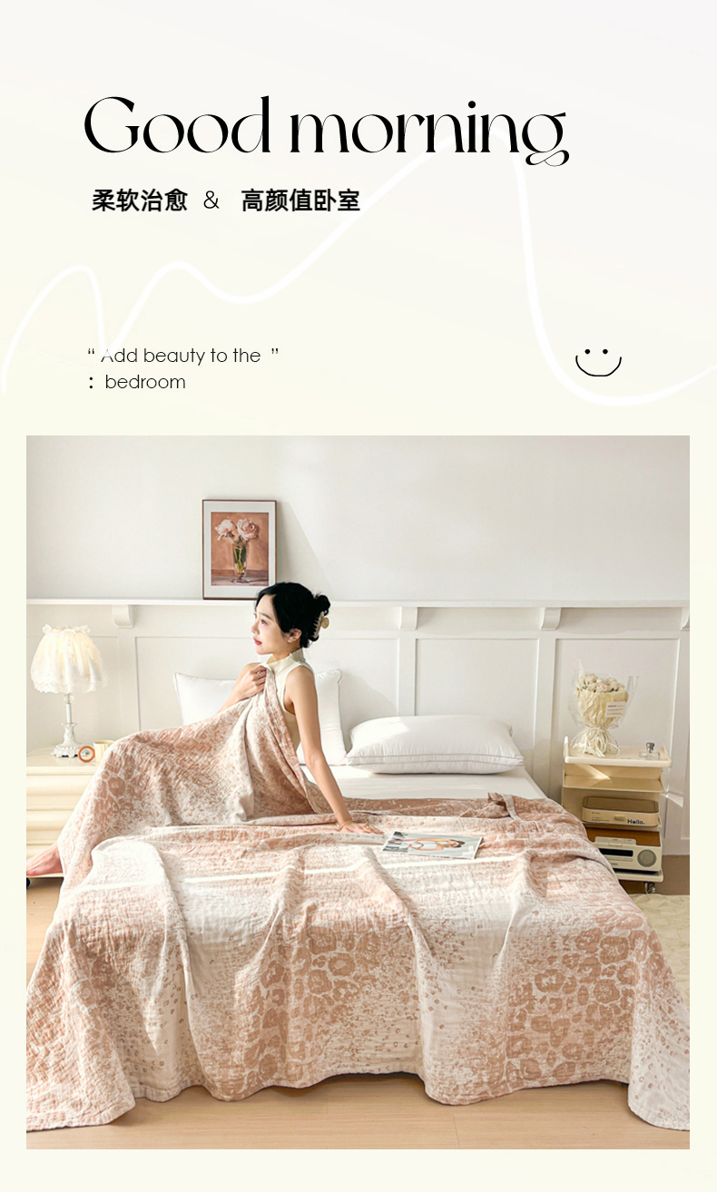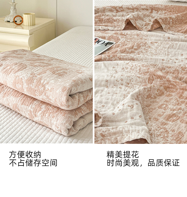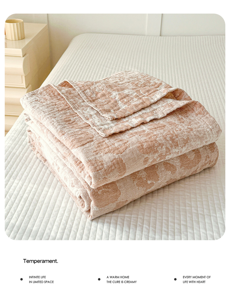 商品名称:悦然毛巾被 2025新款三层水洗全棉毛巾被 豹纹咖