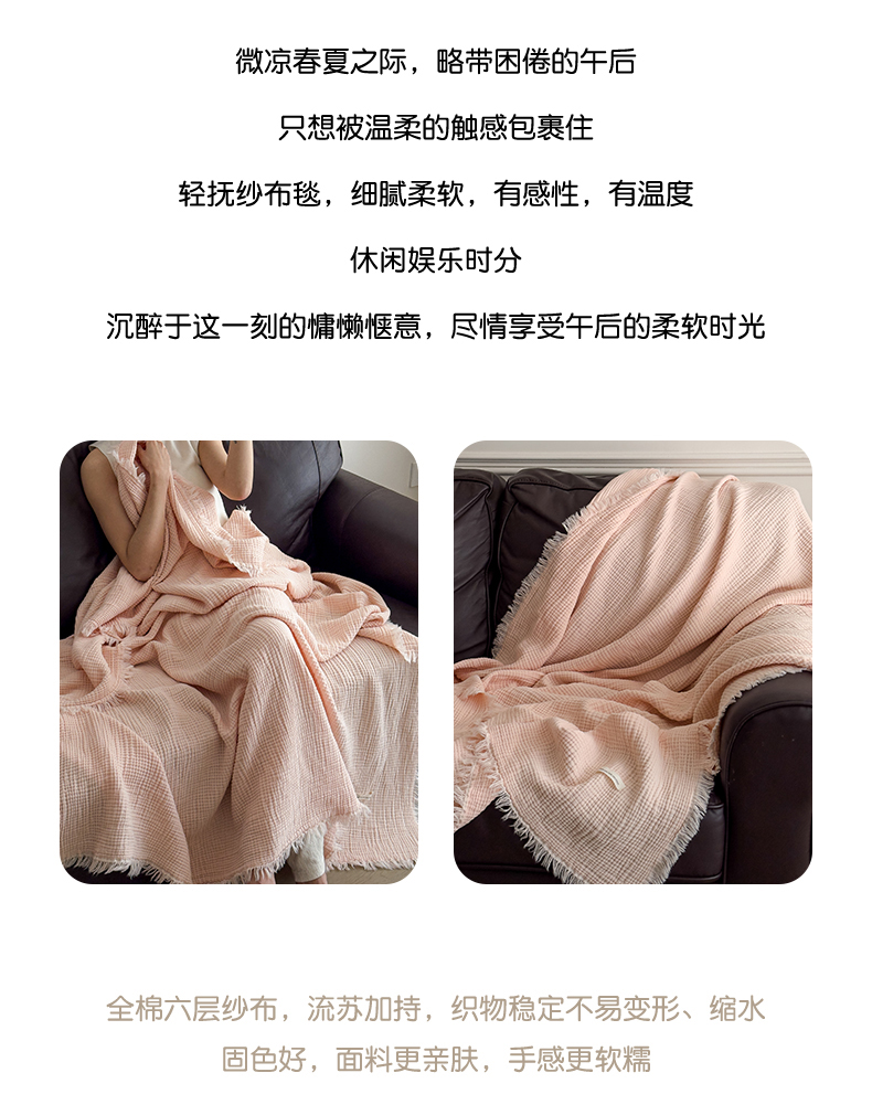 商品名称:兄弟坊 2026新款美拉德全棉夏被纱布毯空调毯飞机毯 雅居-西柚粉