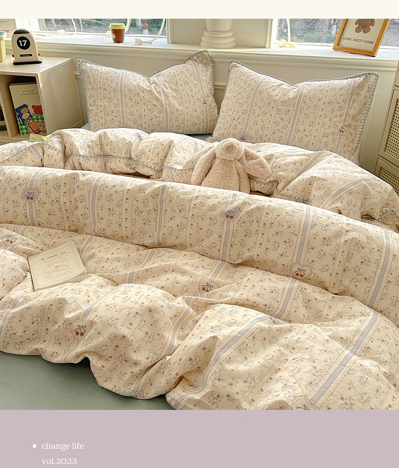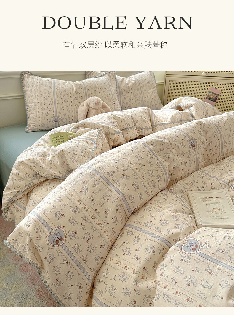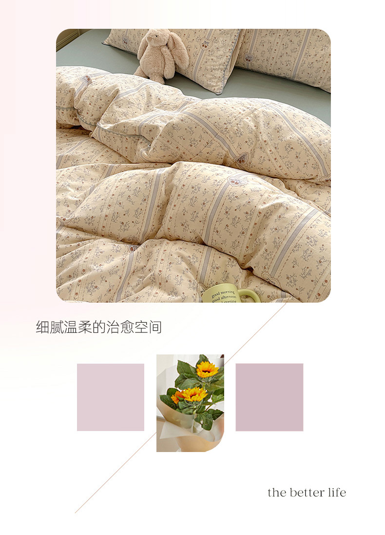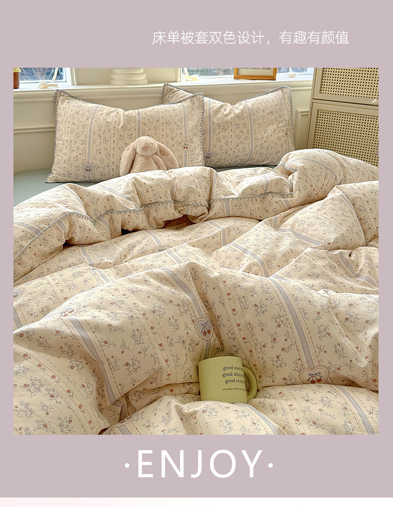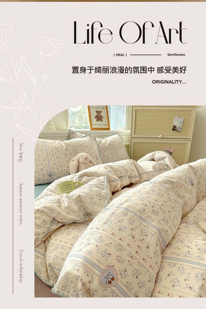 (总)田野 2022新款水洗棉小清新小碎花全棉四件套,花丛,花涧,绿婉,曼舞,桃夭,甜馨草莓,兔兔,银杏