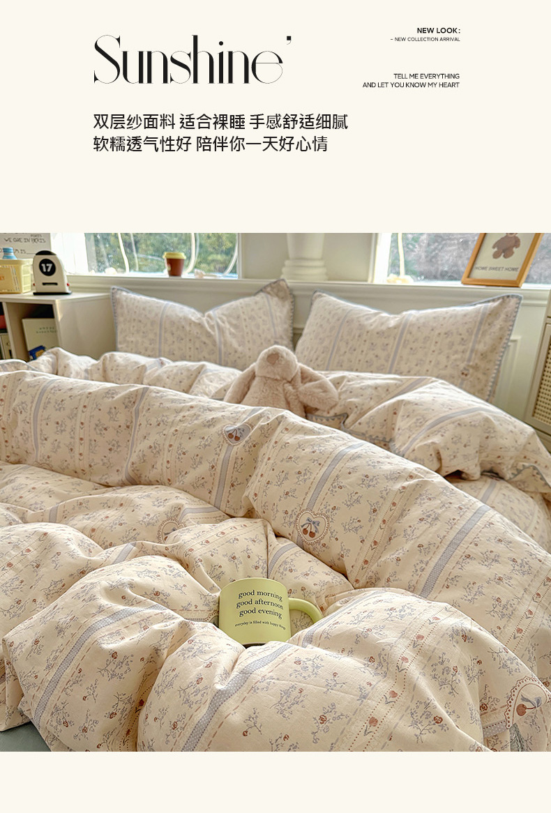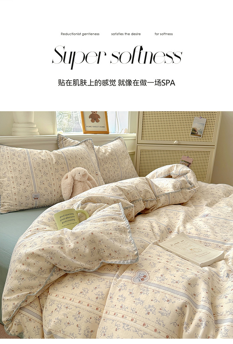 (总)田野 2023新款全棉A类贝壳边双层纱四件套,饼干熊,波波兔,呆萌熊,萌宠乐园,萌兔森林,甜心小兔,薇拉,小蘑菇,伊甜