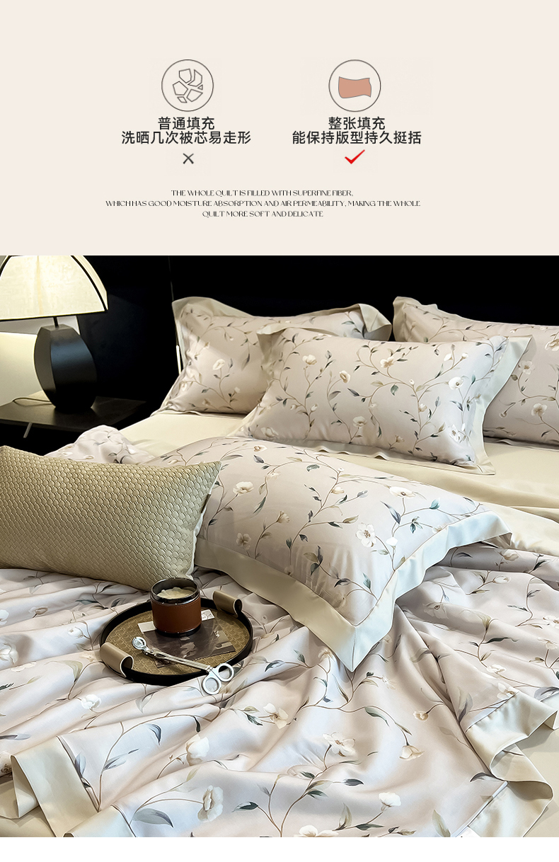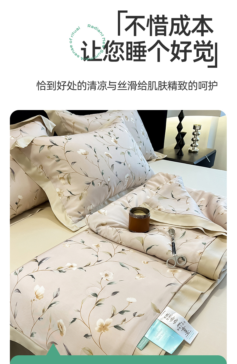 朵希曼2025新款50天丝宽边夏被和夏被四件套系列 姜茉