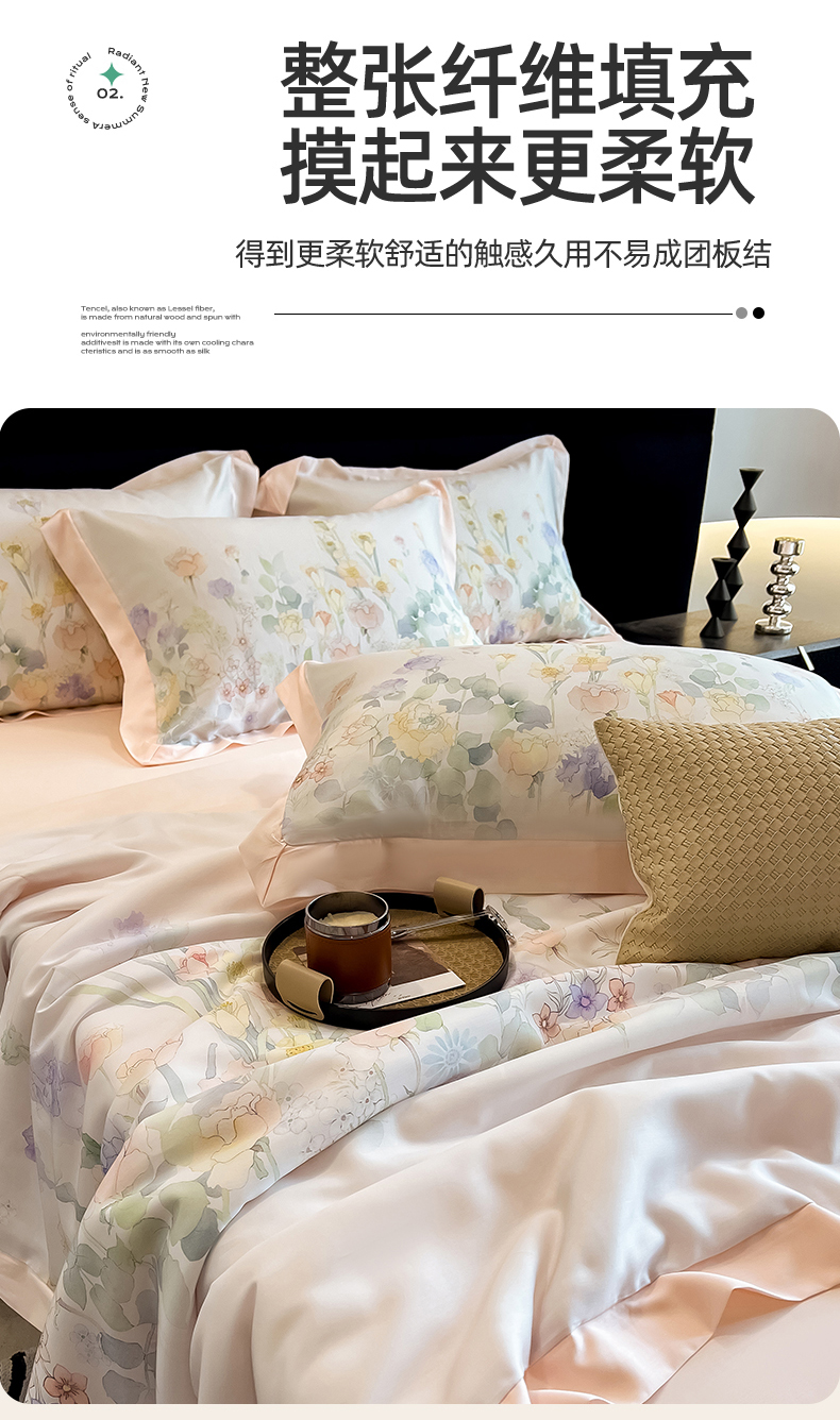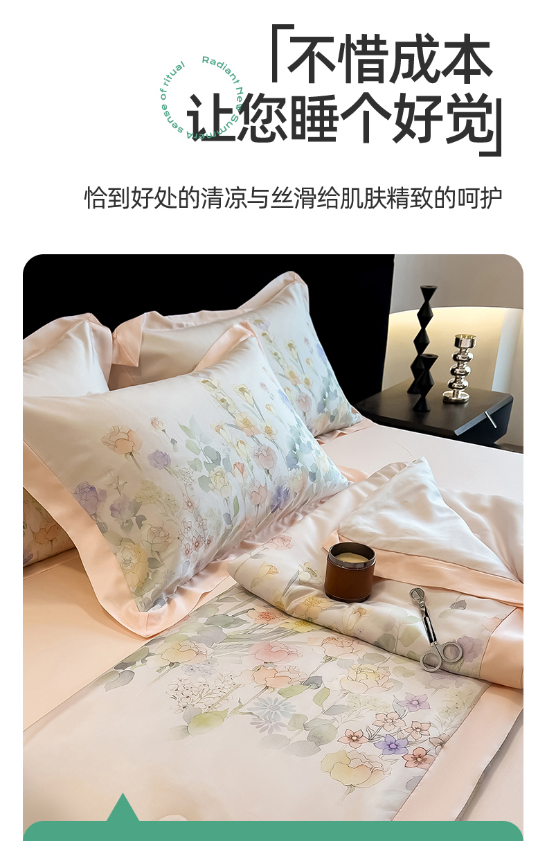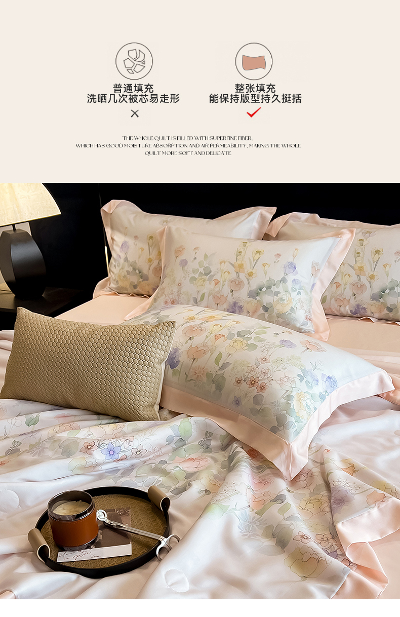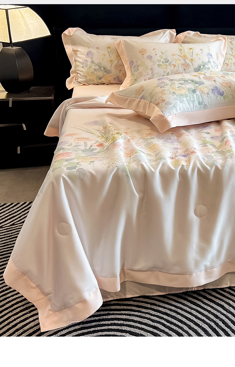 朵希曼2025新款50天丝宽边夏被和夏被四件套系列 印象花艺 桔