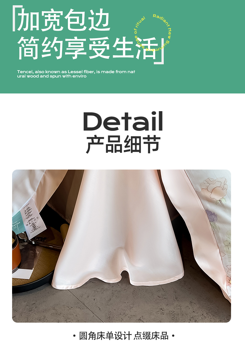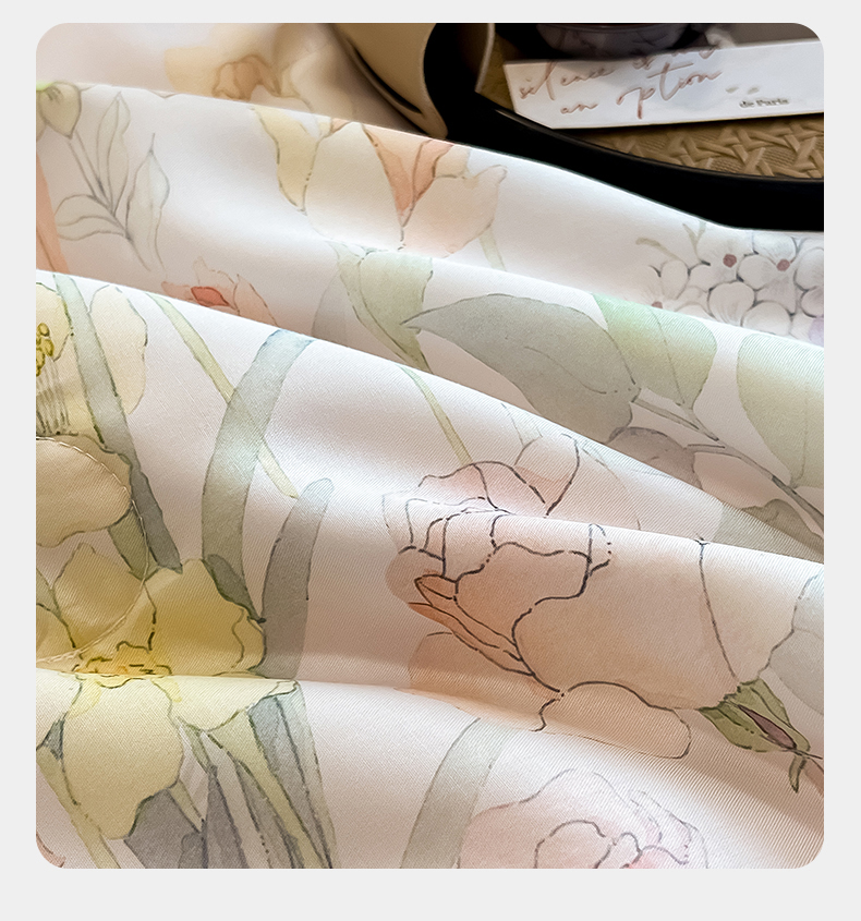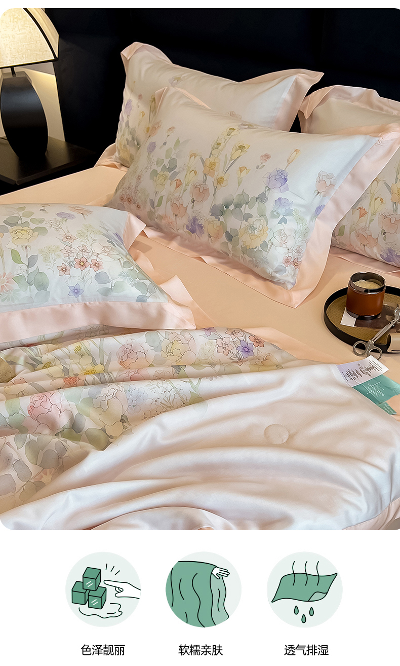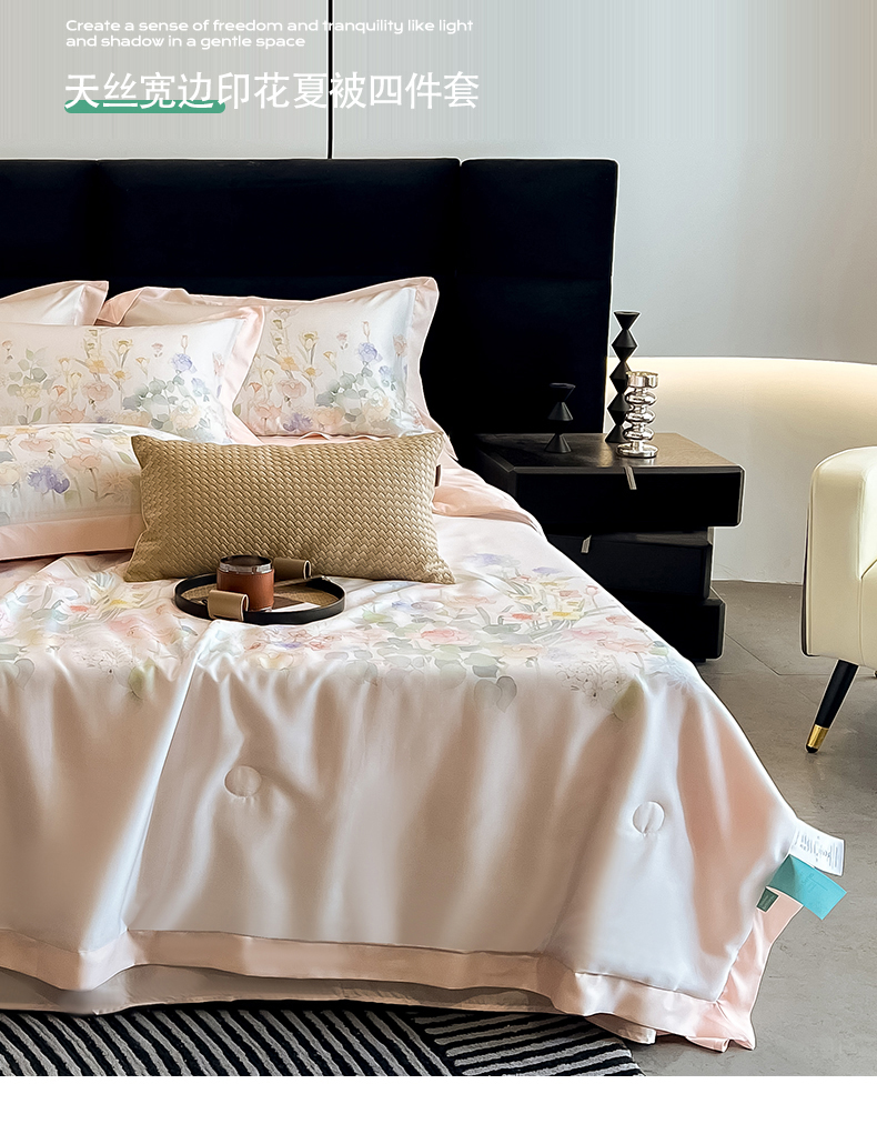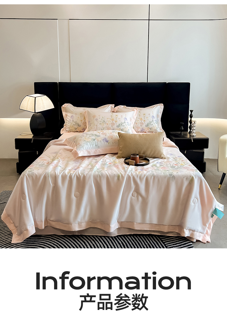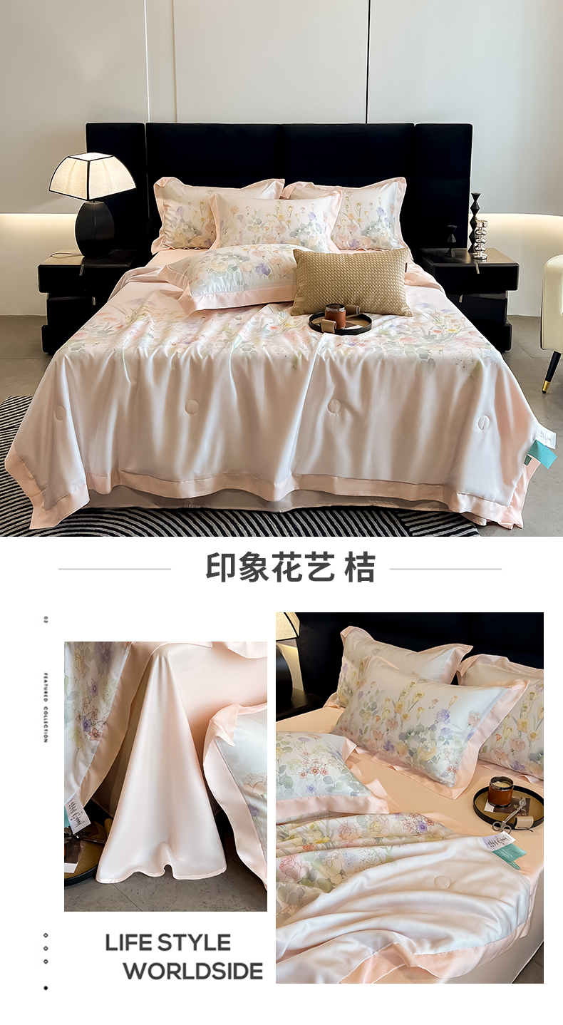 商品名称:朵希曼2025新款50天丝宽边夏被和夏被四件套系列 印象花艺 桔