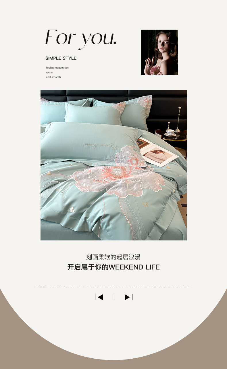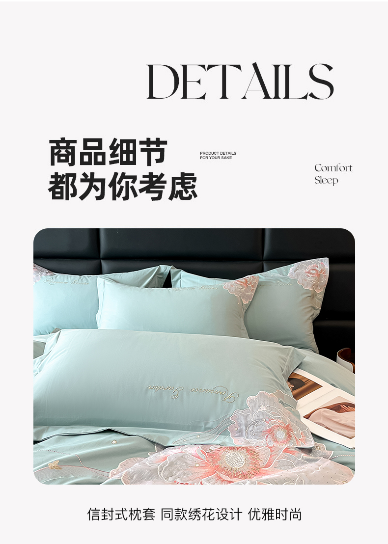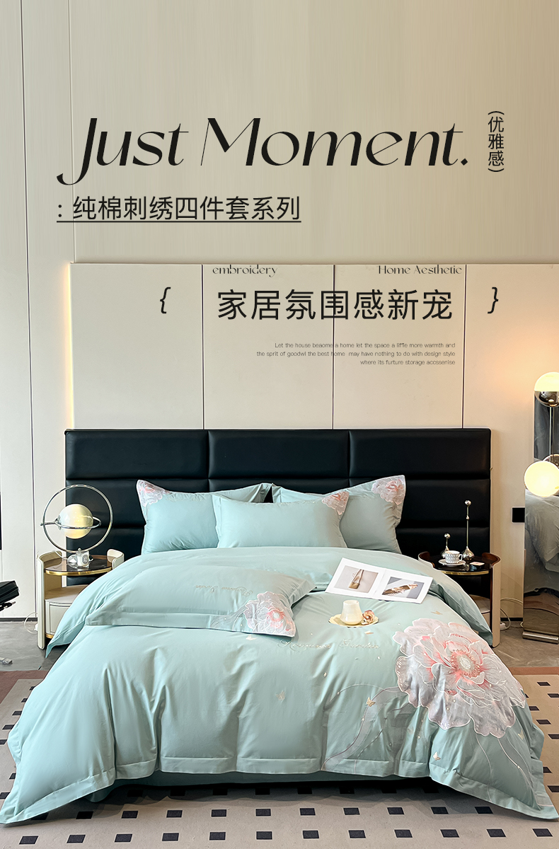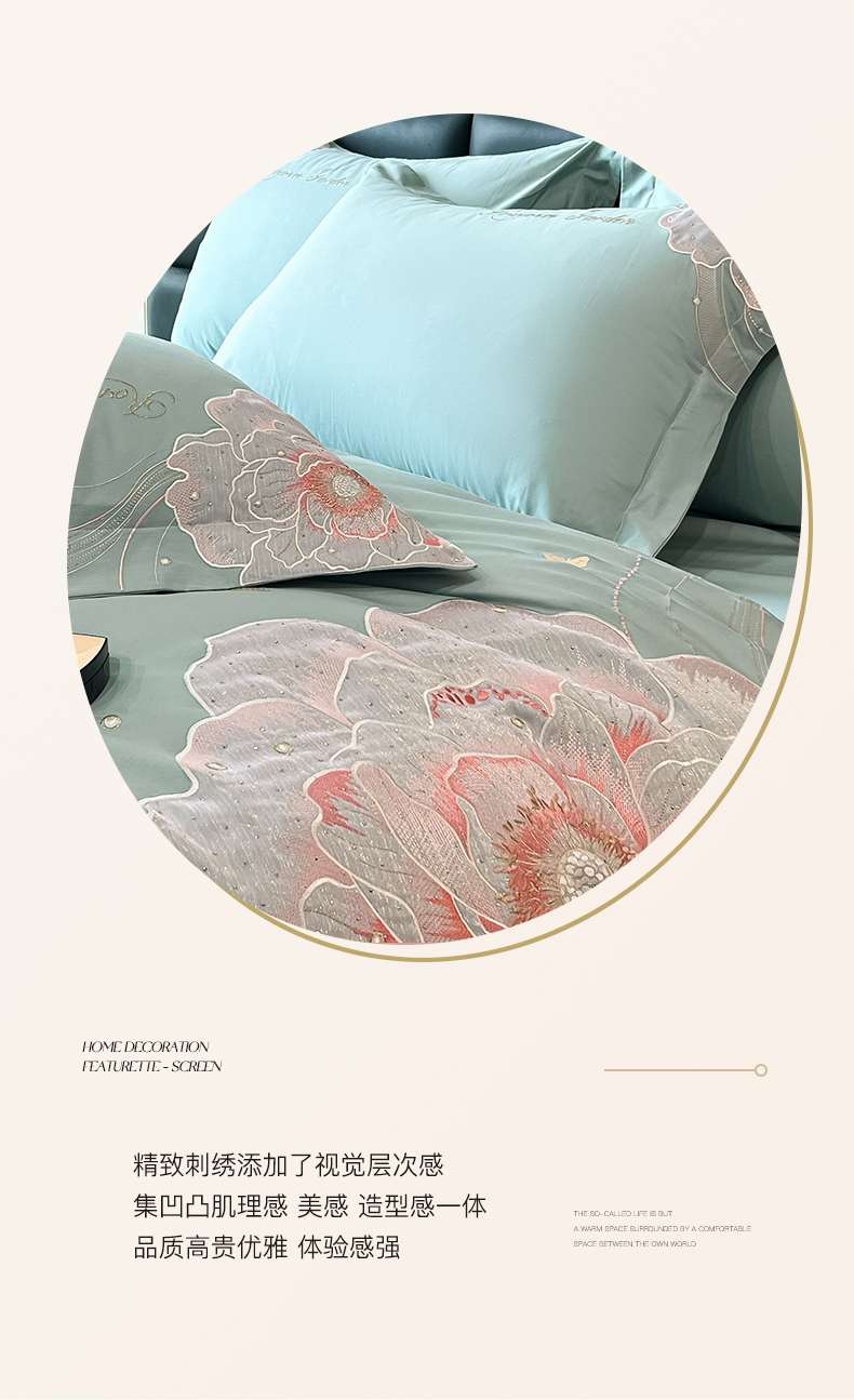 商品名称:理想家家纺 2025新款亲肤舒适纯棉刺绣四件套-绽放 绽放-绿