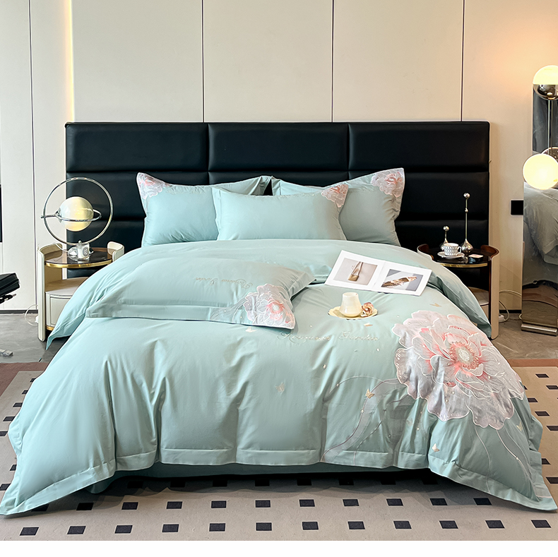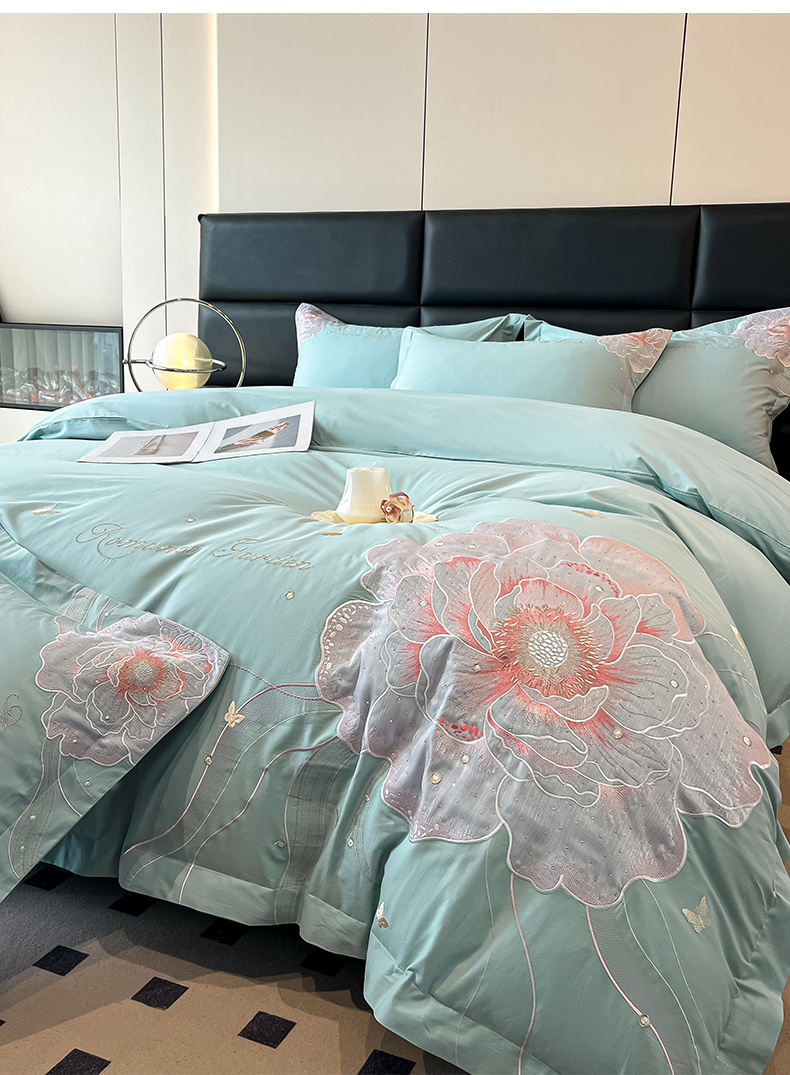 理想家家纺 2025新款亲肤舒适纯棉刺绣四件套-绽放 绽放-绿