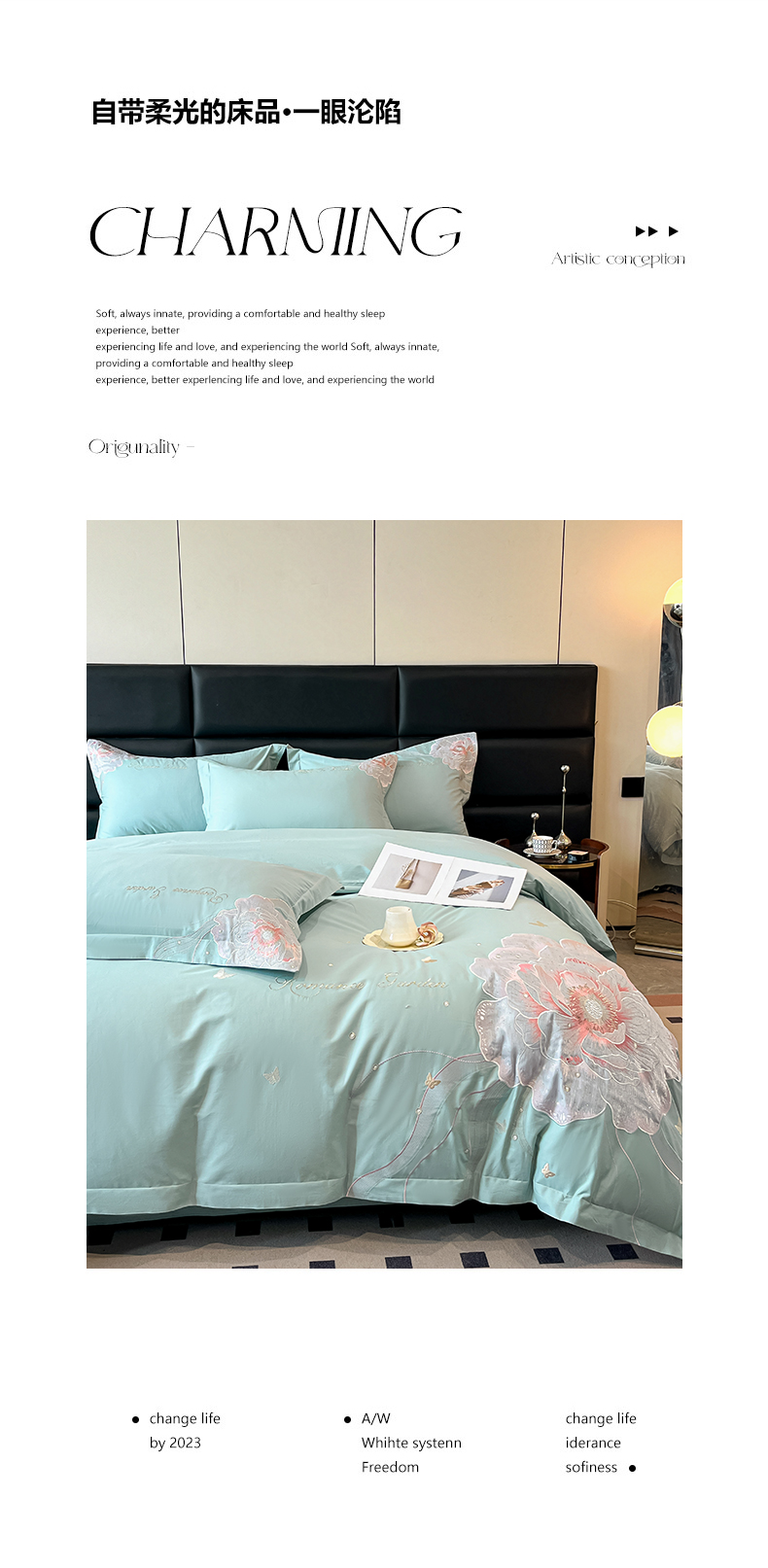 (总)理想家家纺 2025新款纯棉轻奢刺绣四件套-小秘密系列场景二,小秘密 粉,小秘密 黄,小秘密 蓝