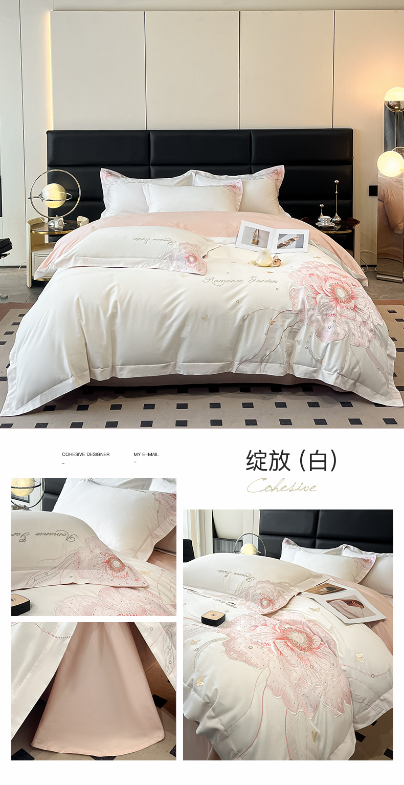 (总)理想家家纺 2025新款纯棉轻奢刺绣四件套-小秘密系列,小秘密-白,小秘密-粉,小秘密-蓝