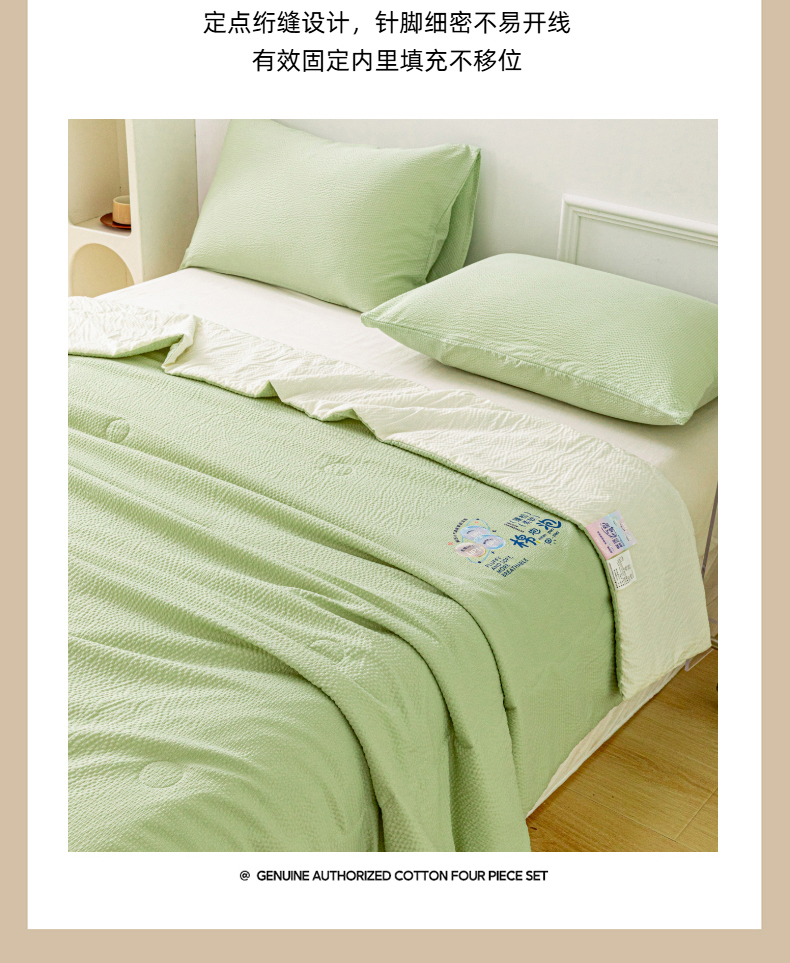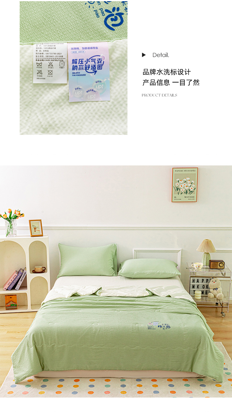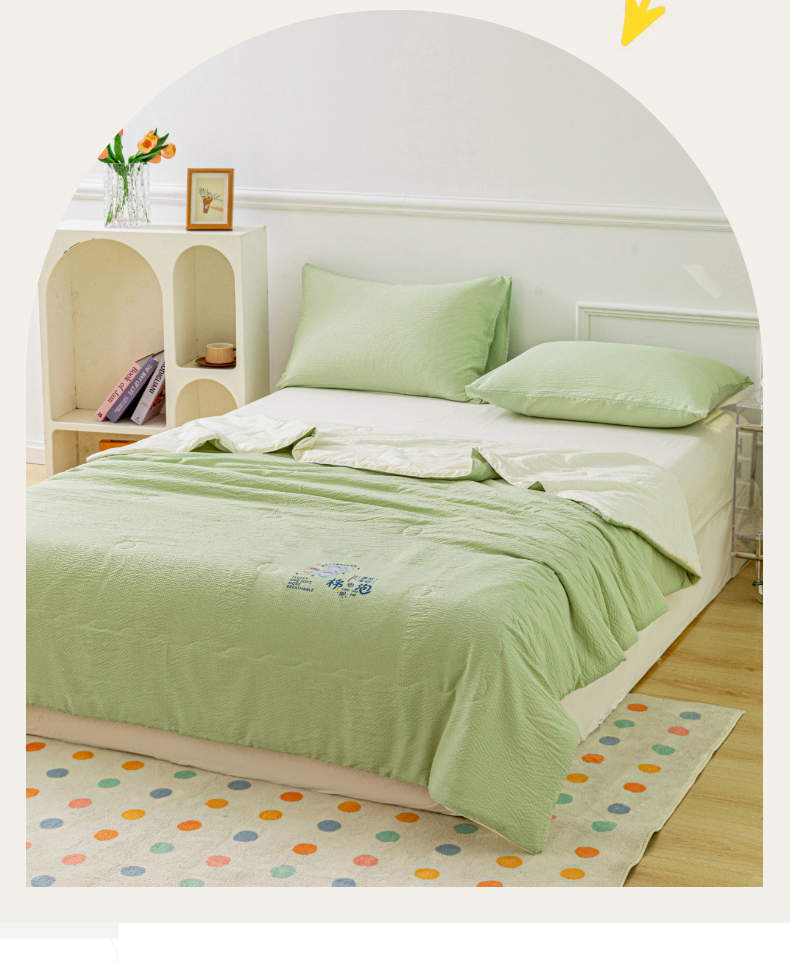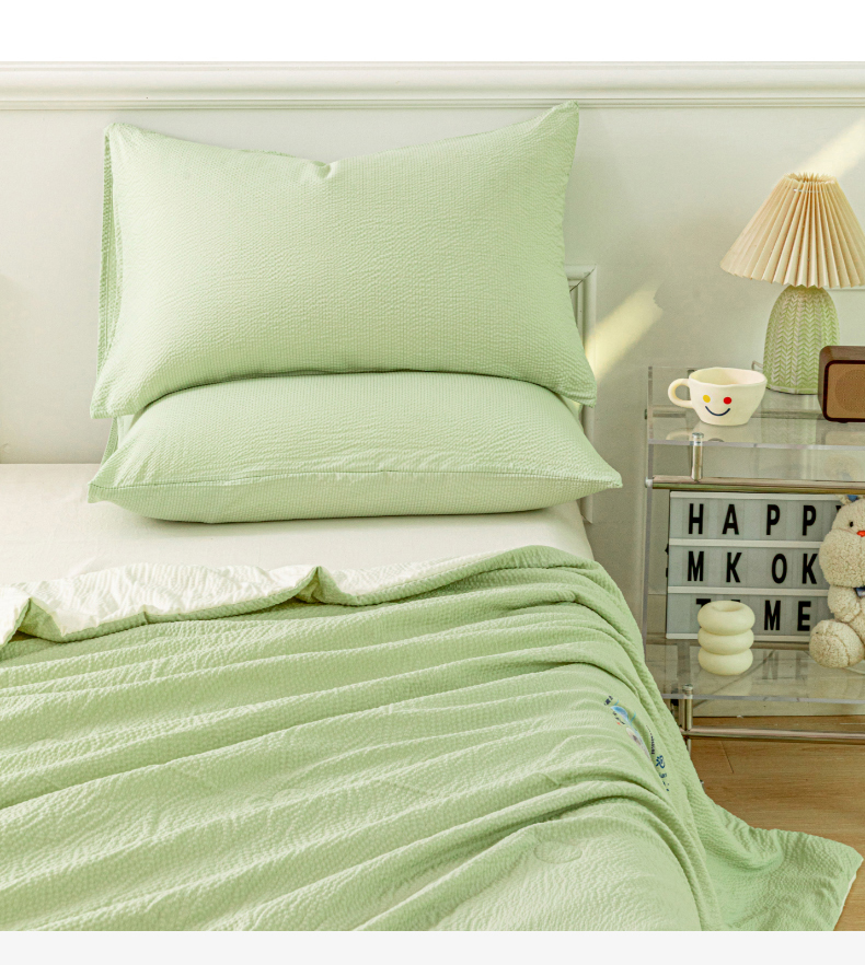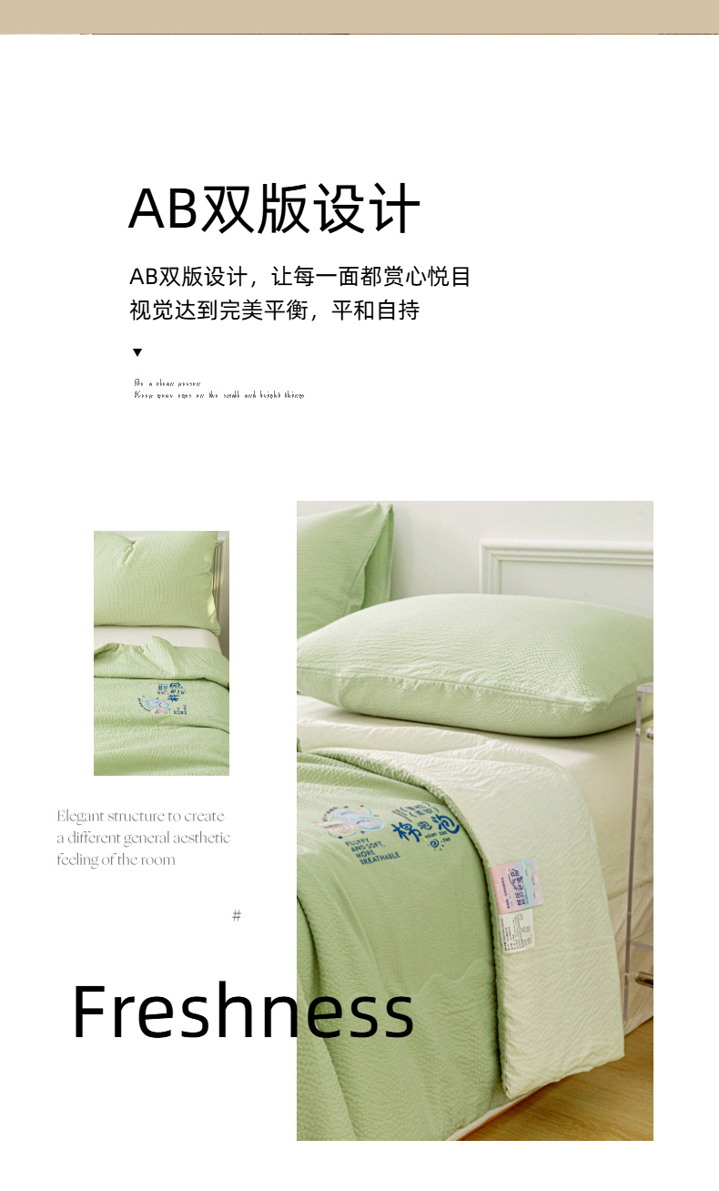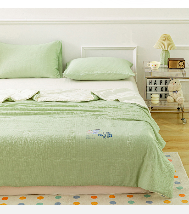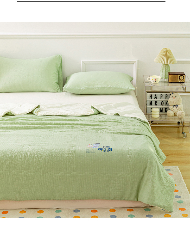 天瑜家纺 2025新款亲肤舒适泡泡棉夏被 绿+米黄