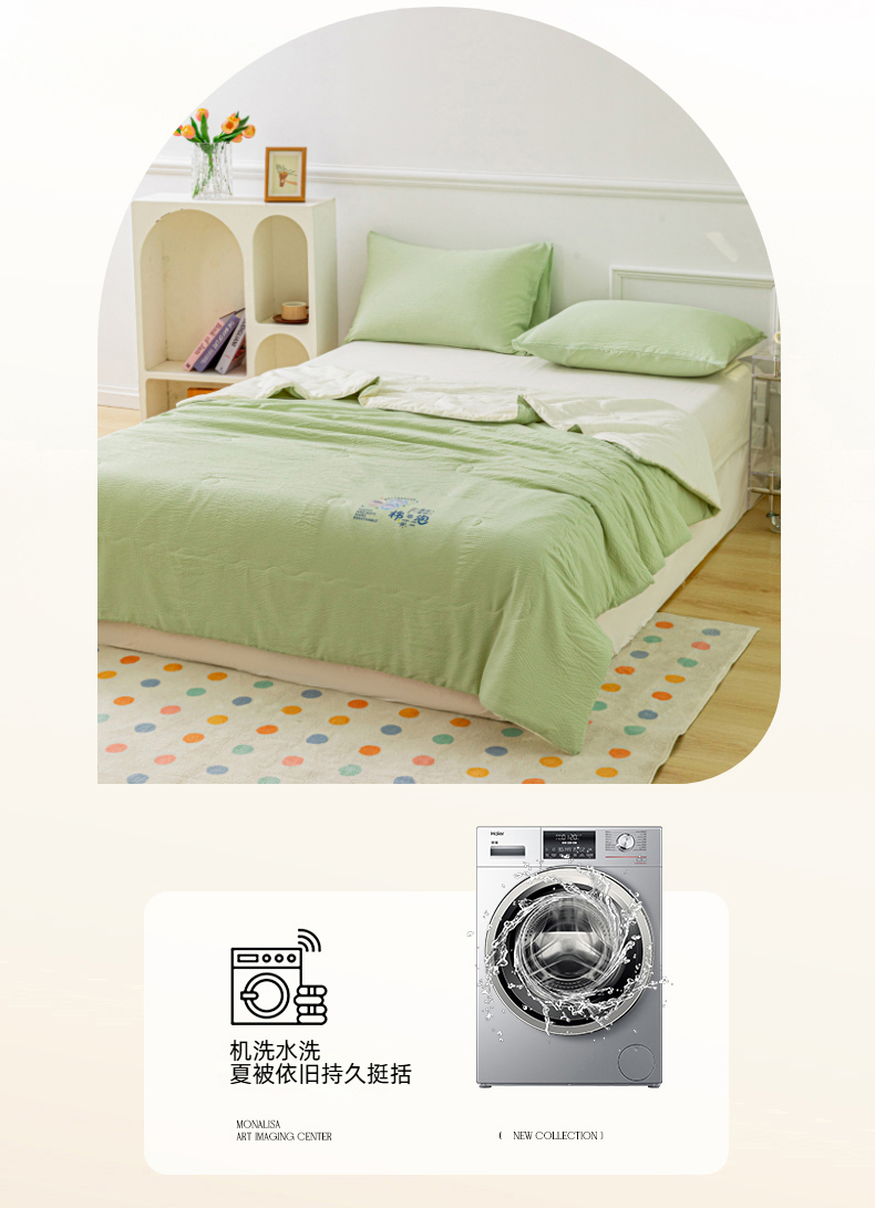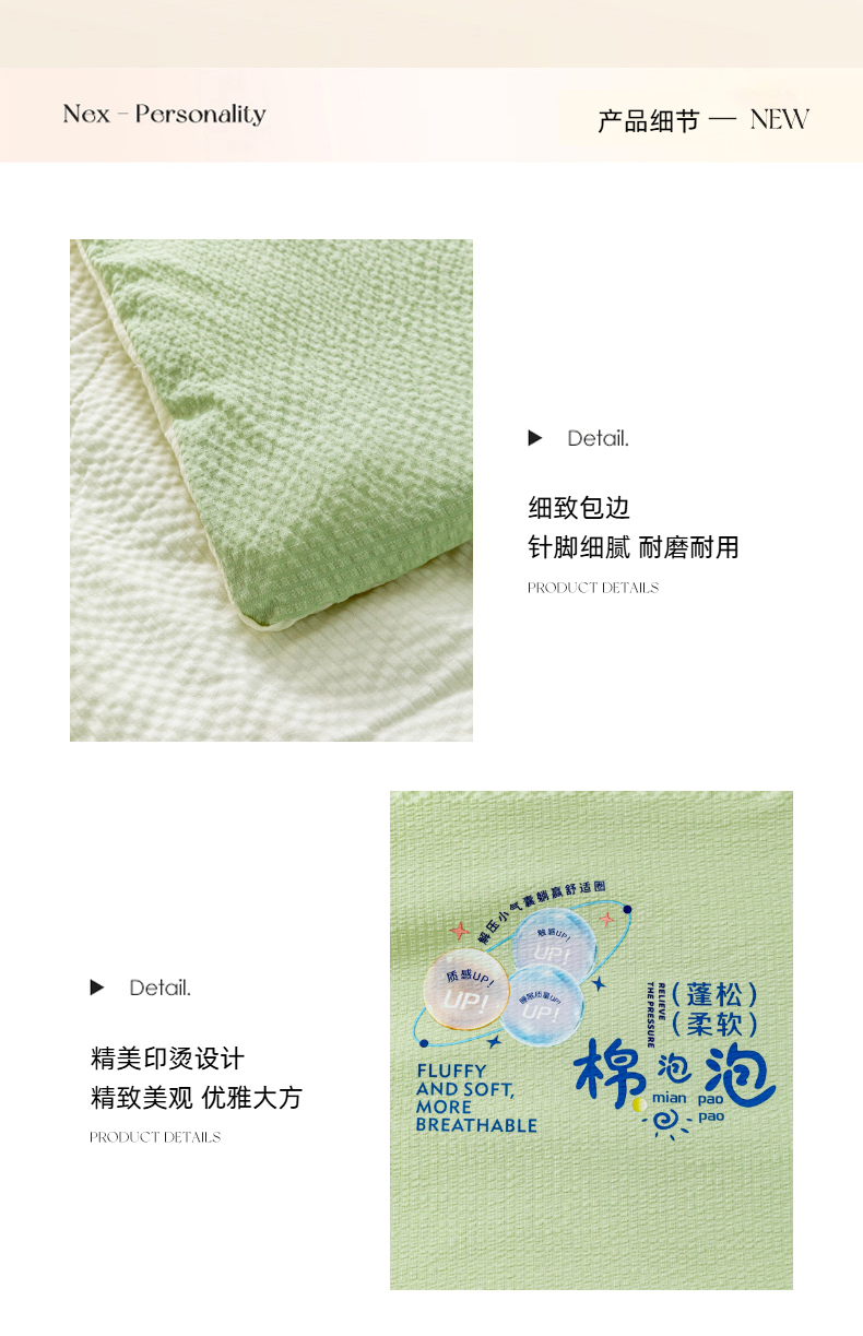 商品名称:天瑜家纺 2025新款亲肤舒适泡泡棉夏被 绿+米黄