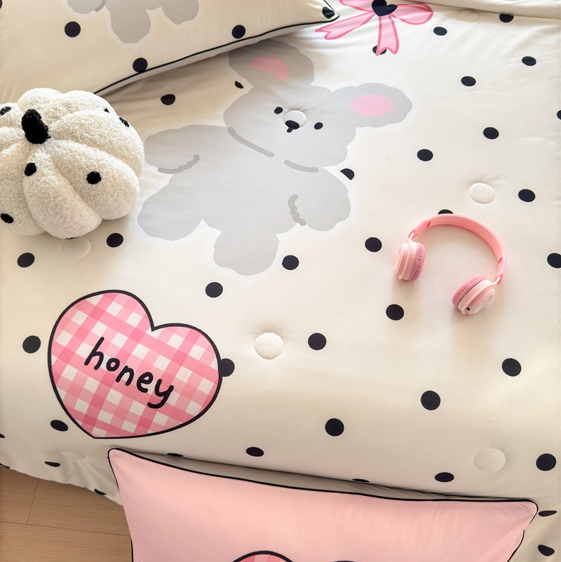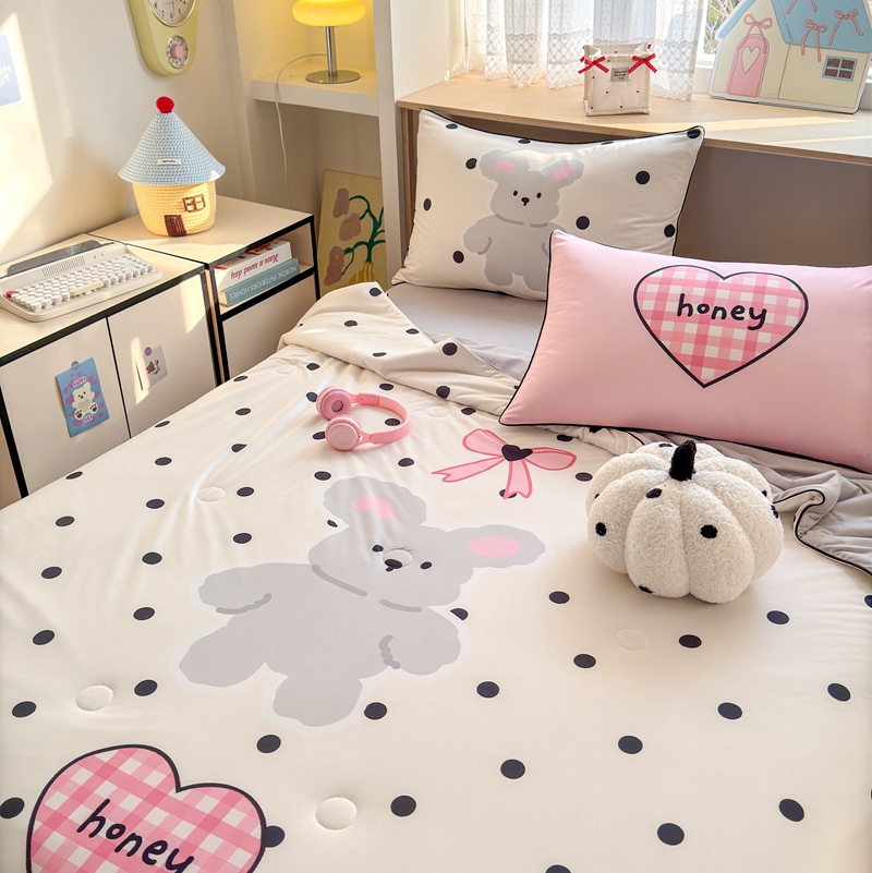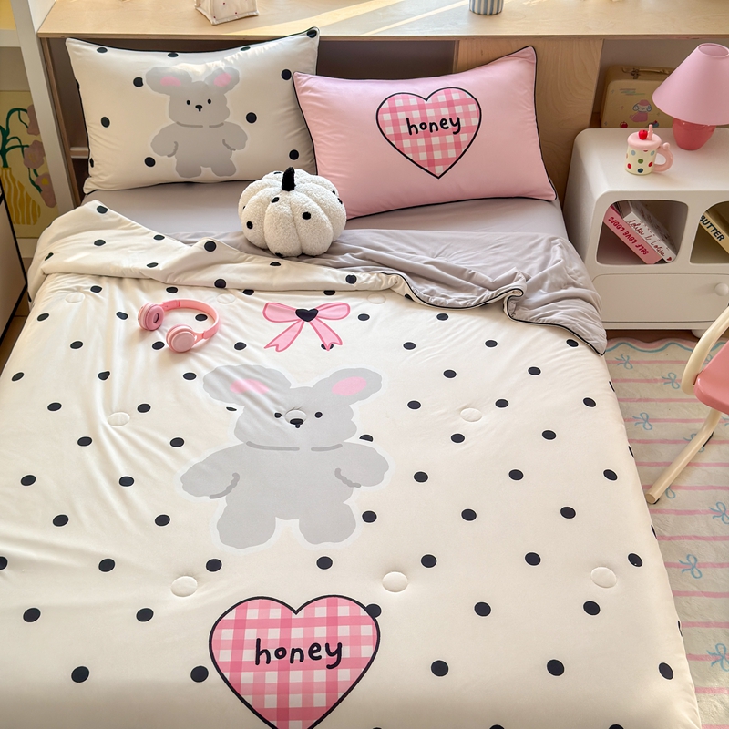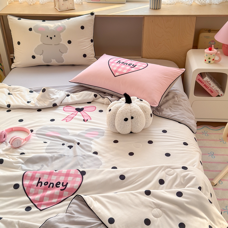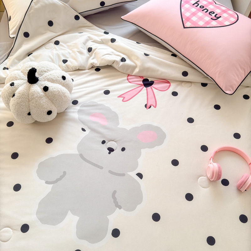 商品名称:星期八 2025新款针织棉夏被四件套 波点兔