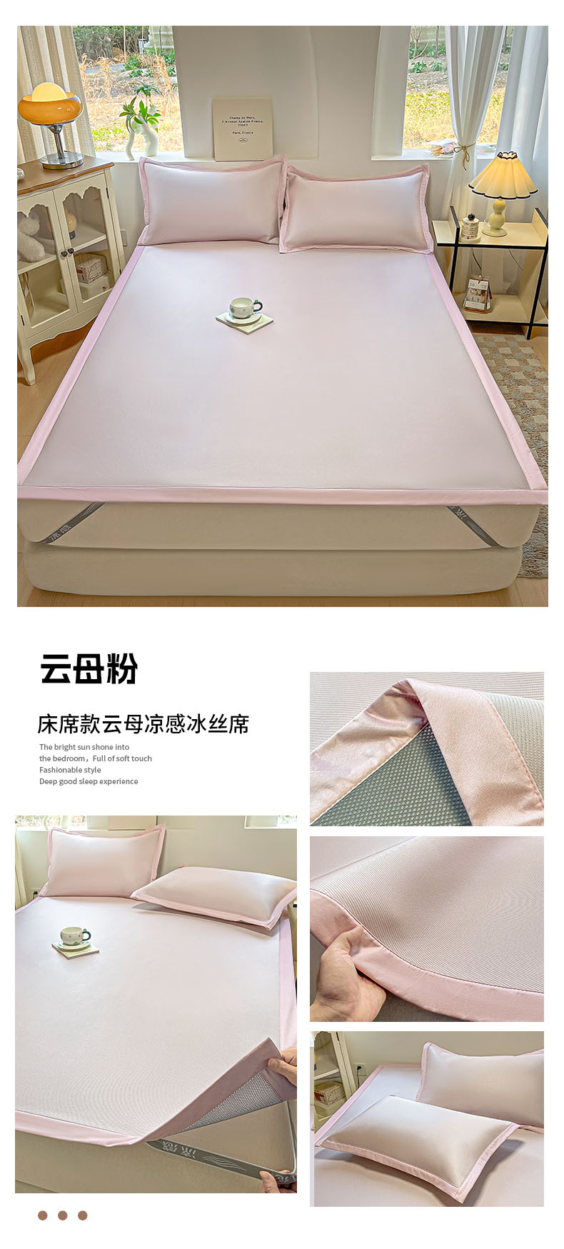 商品名称:鑫琪莱家纺 2025云母凉感冰丝席 床席款-云母粉