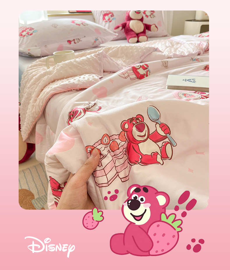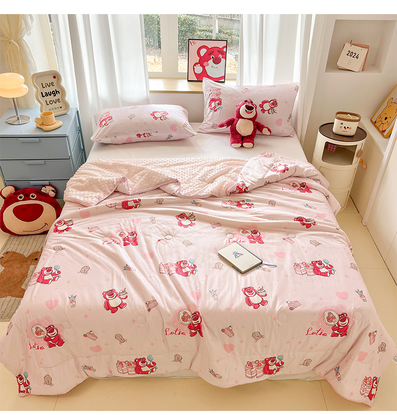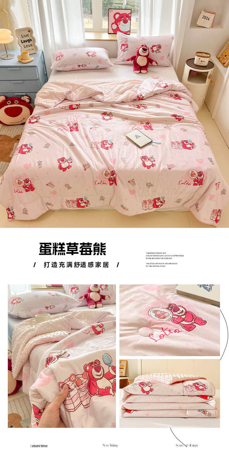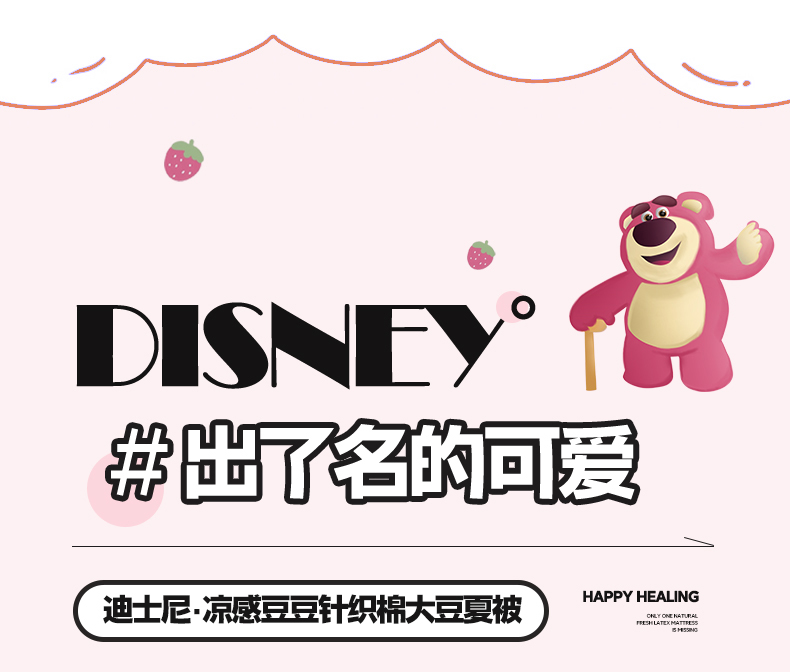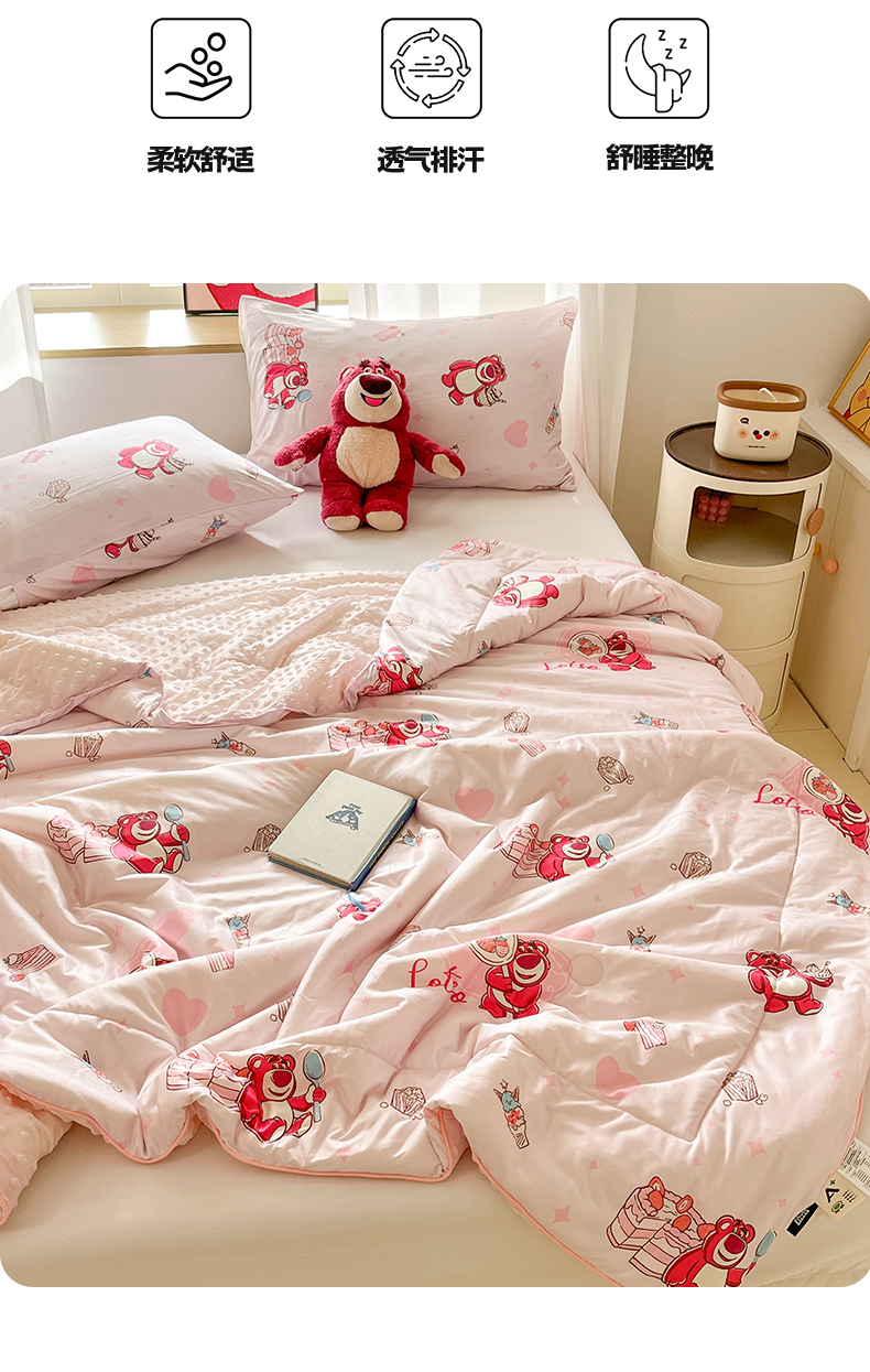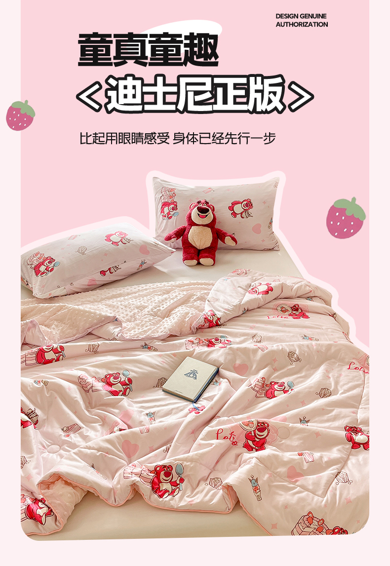 木堇家居 2025新款迪士尼凉感豆豆针织棉大豆夏被 蛋糕草莓熊