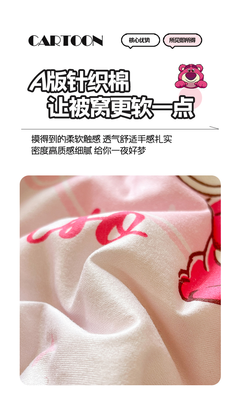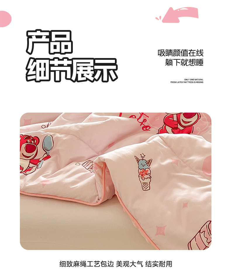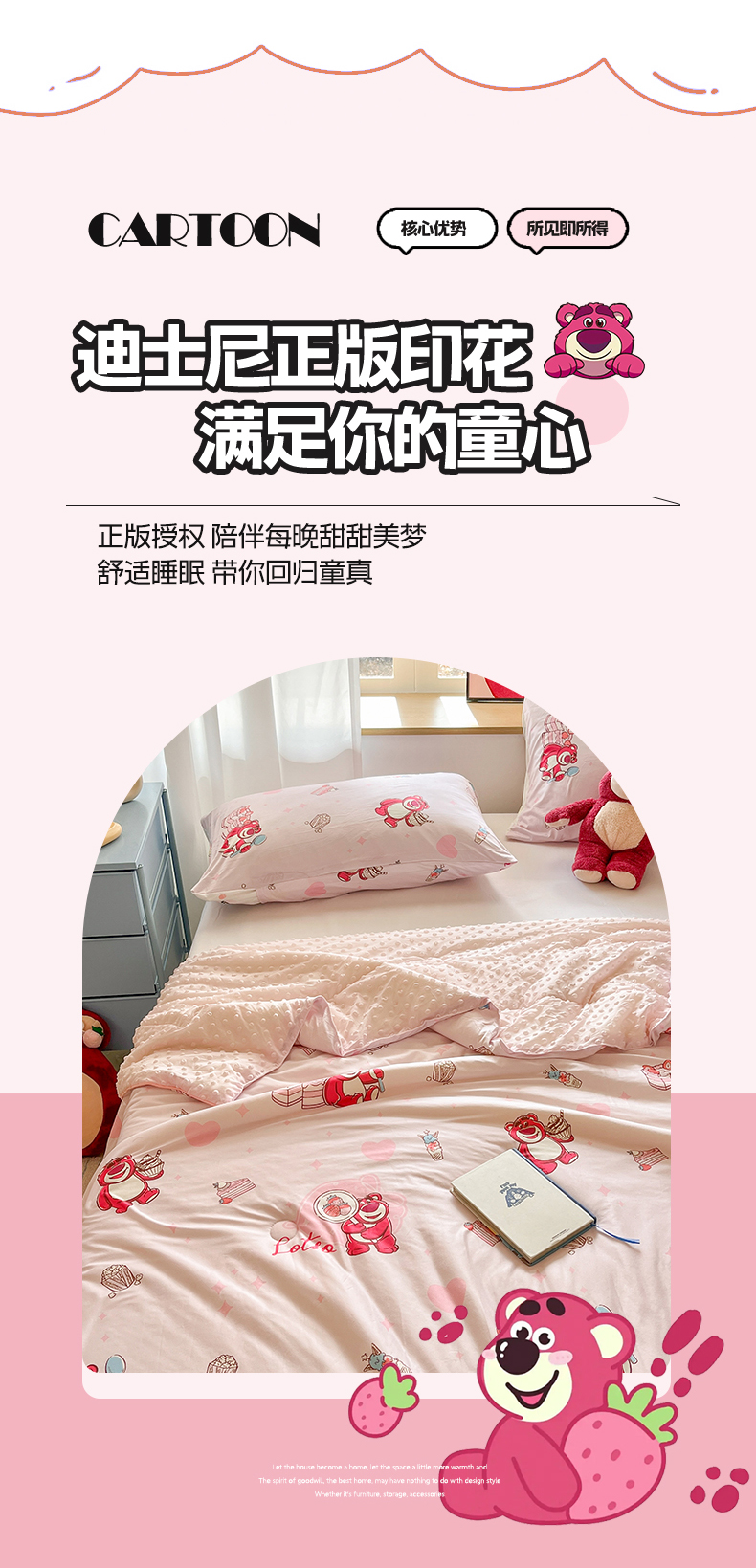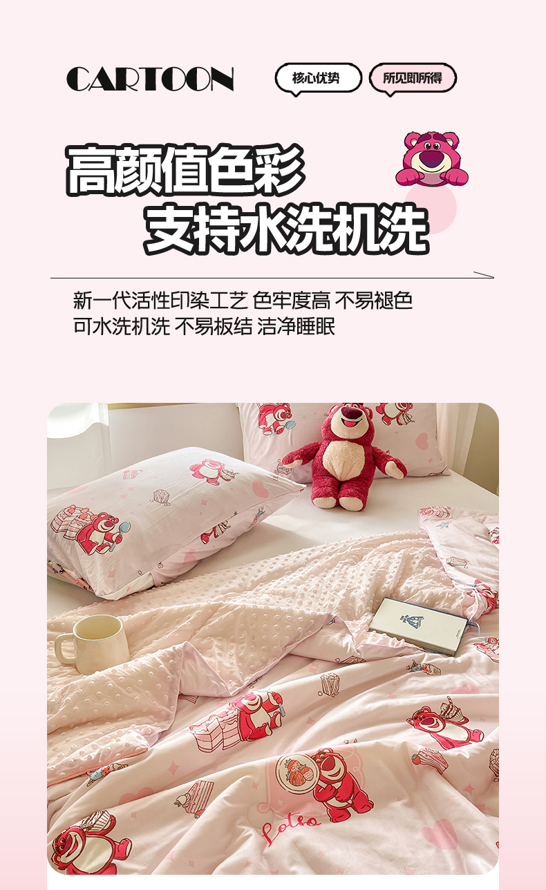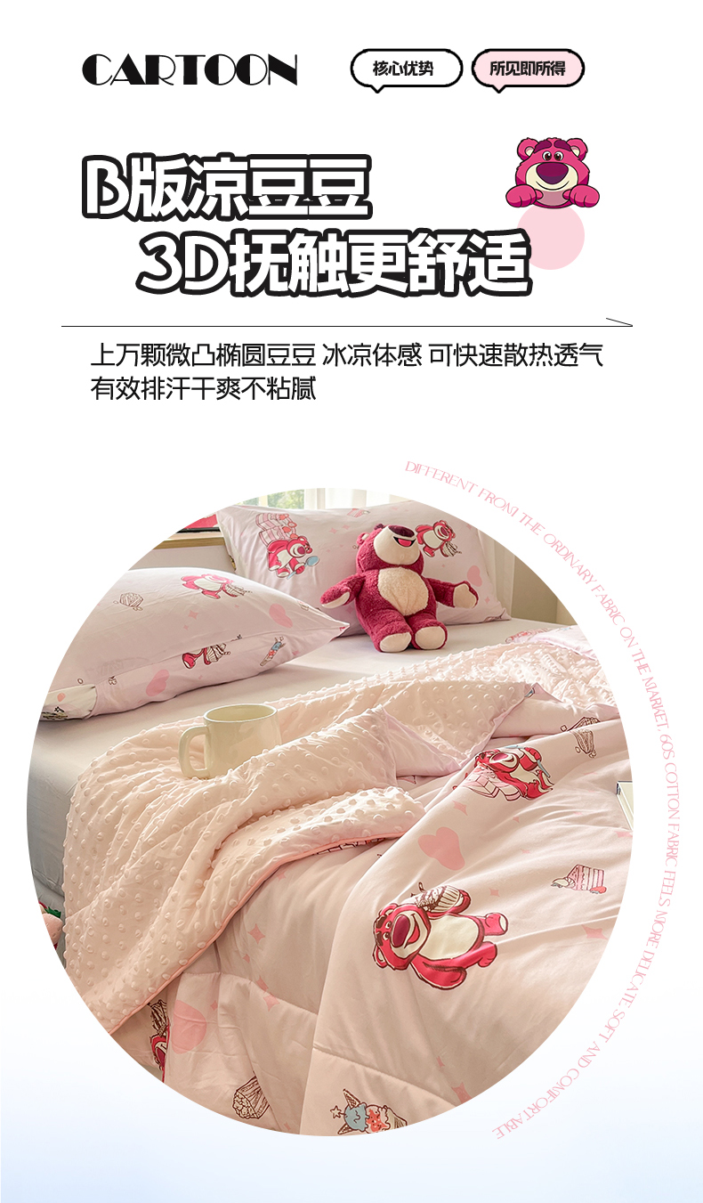商品名称:木堇家居 2025新款迪士尼凉感豆豆针织棉大豆夏被 蛋糕草莓熊
