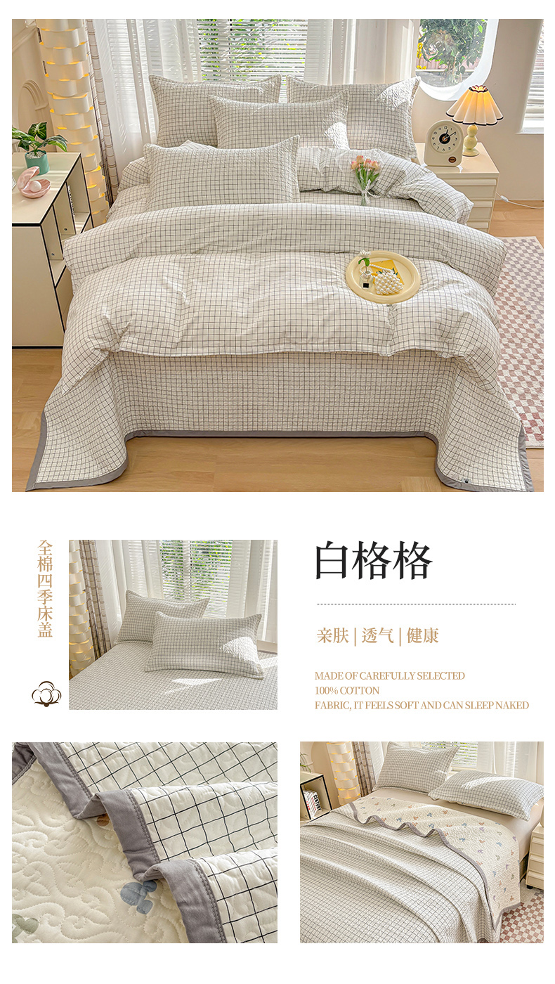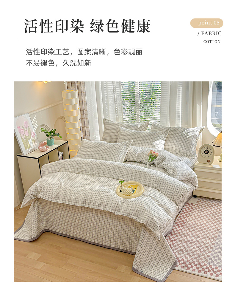 当前位置: 91家纺网 > 商品网购 > 床品套件 > 四件套 > 其它四件套 > 梦精灵家纺 2025新款直角40支全棉印花床盖四件套纯棉被套枕套白格格