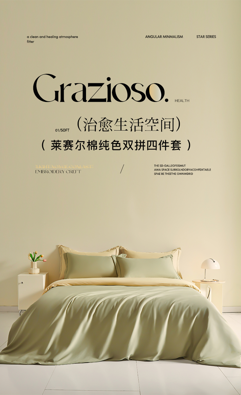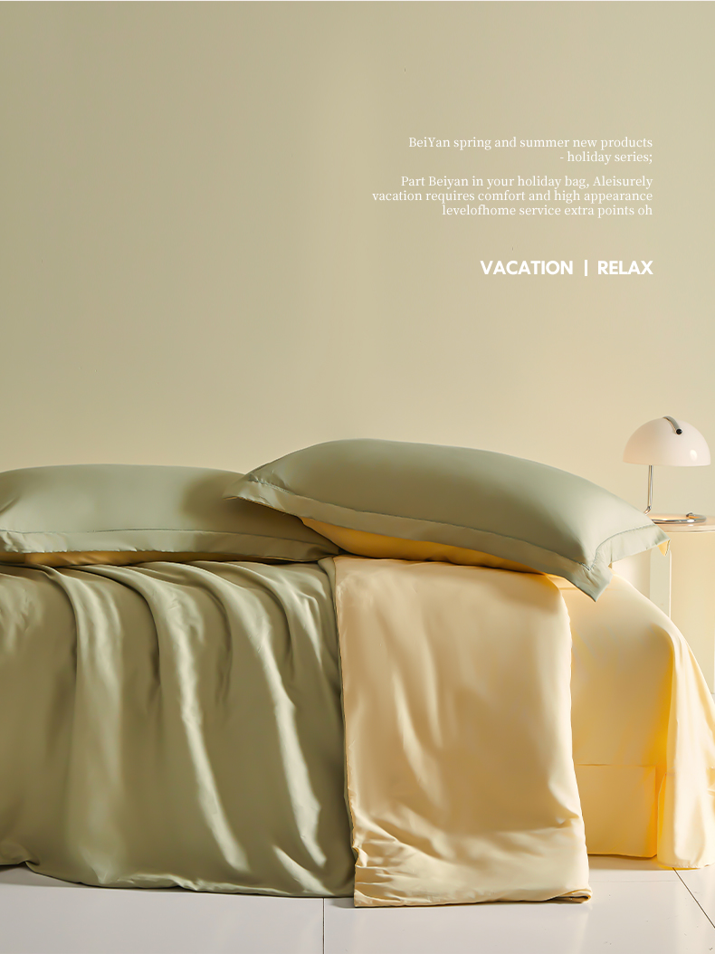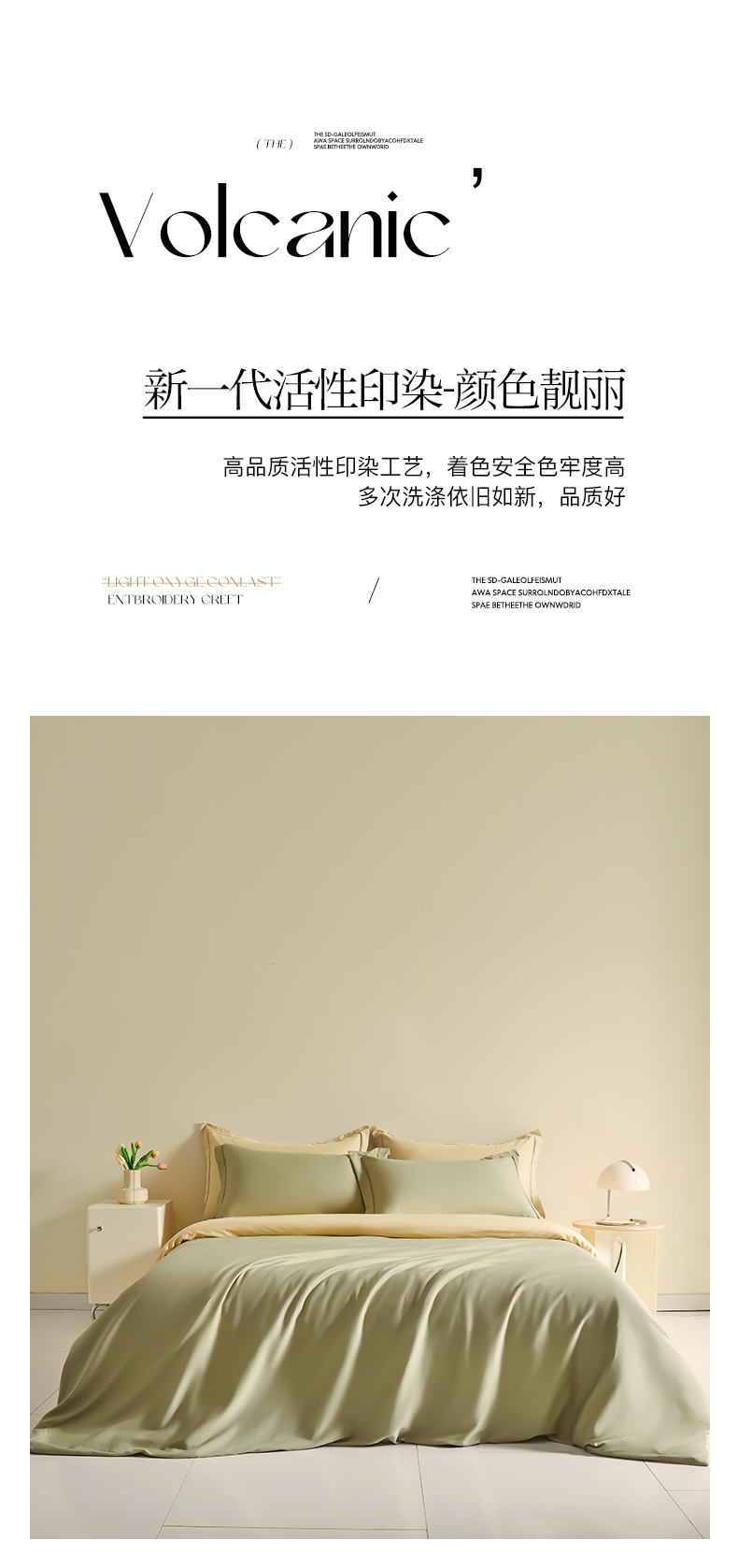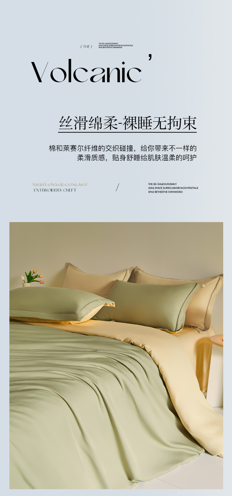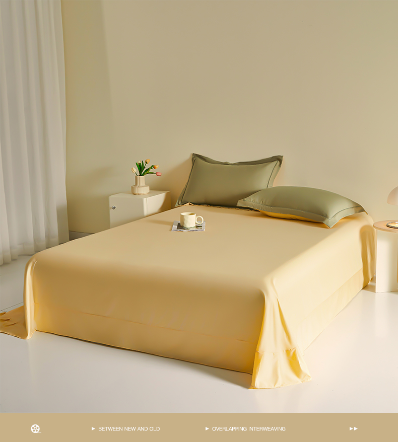 当前位置: 91家纺网 > 商品网购 > 床品套件 > 四件套 > 其它四件套 > 帛美家纺 2025春夏新款莫兰迪色40S莱赛尔双拼天丝棉四件套 豆绿-杏子黄-