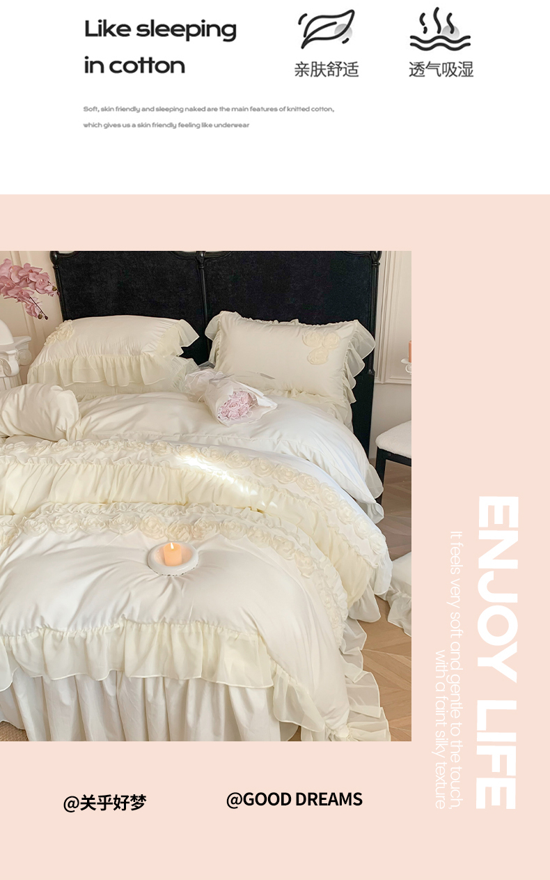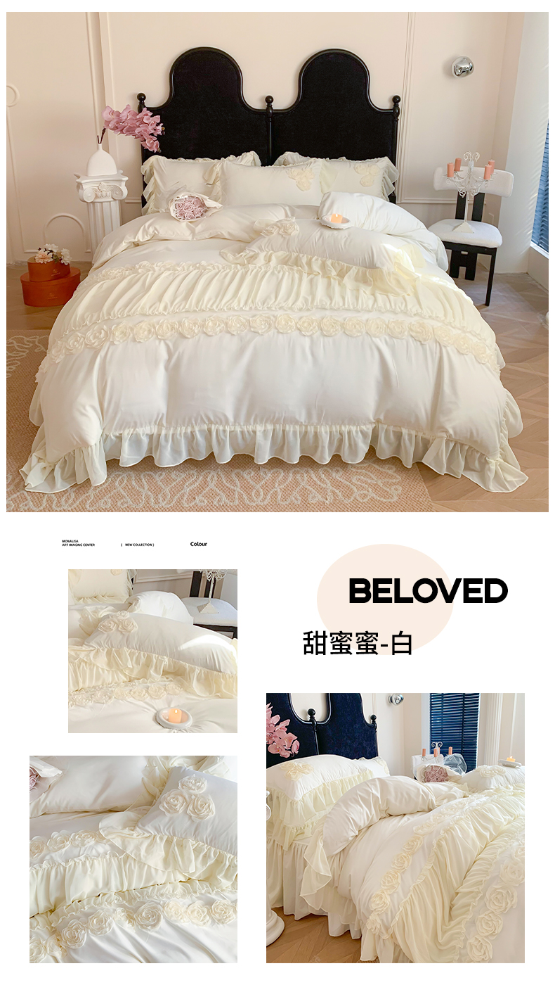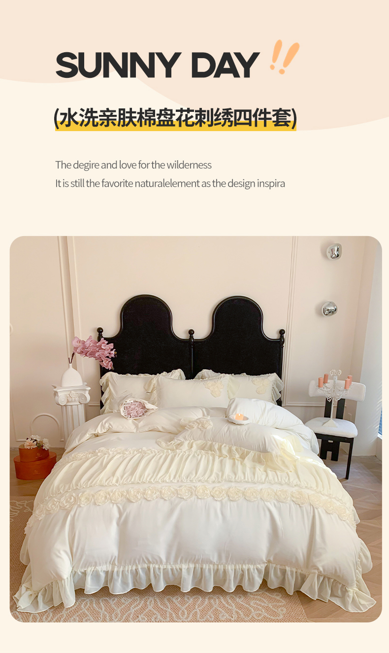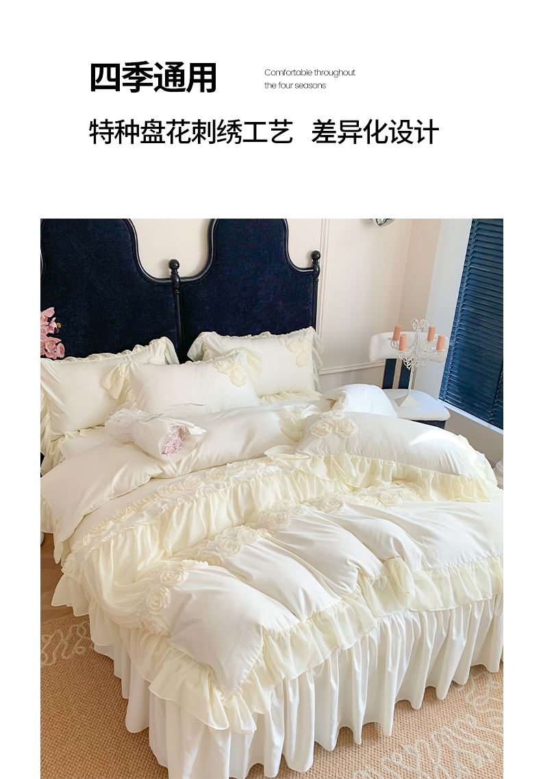 当前位置: 91家纺网 > 商品网购 > 床品套件 > 四件套 > 水洗棉四件套 > 富盛家纺 2025新款水洗亲肤棉盘花刺绣床裙款四件套公主风四件套甜蜜蜜系列 甜蜜蜜-白