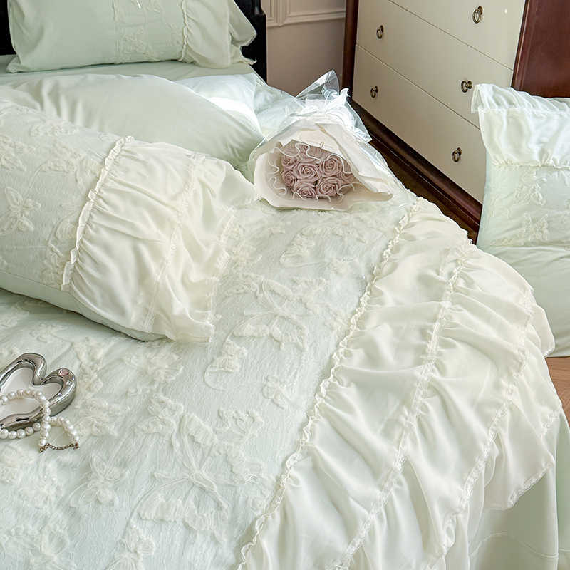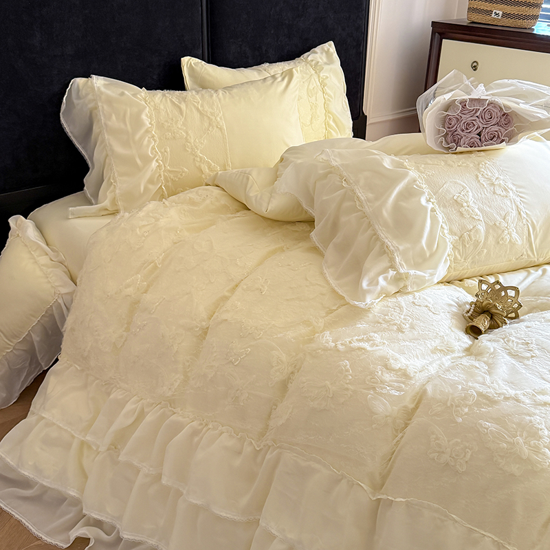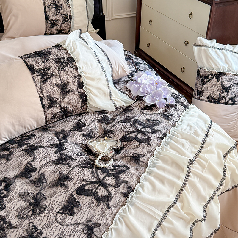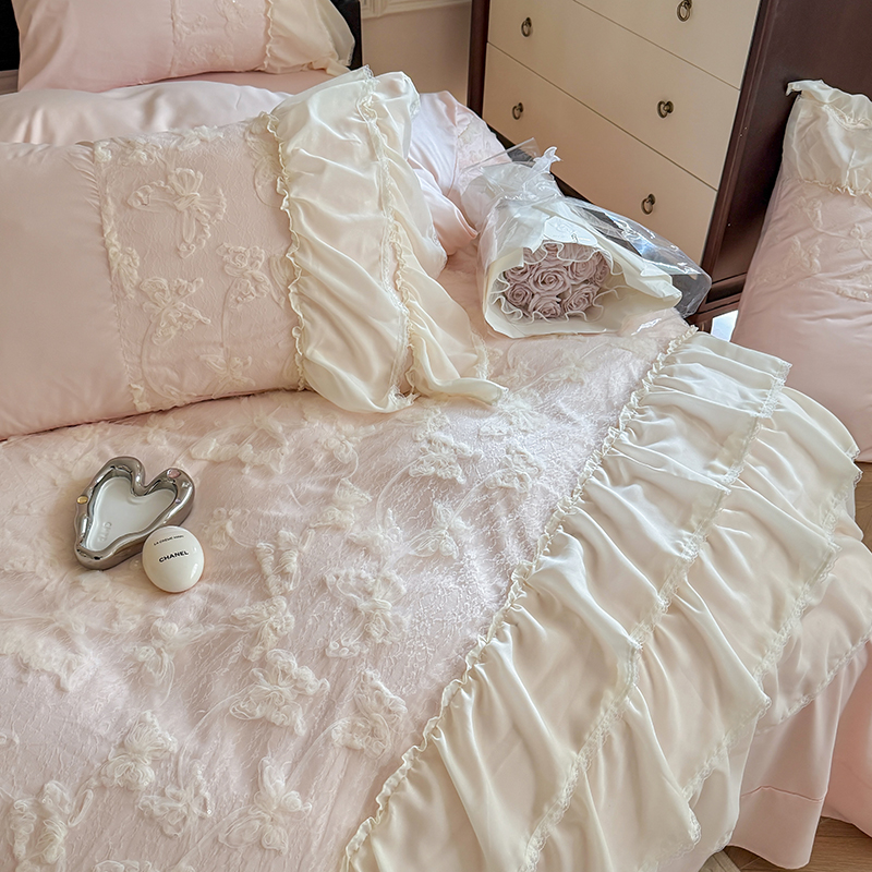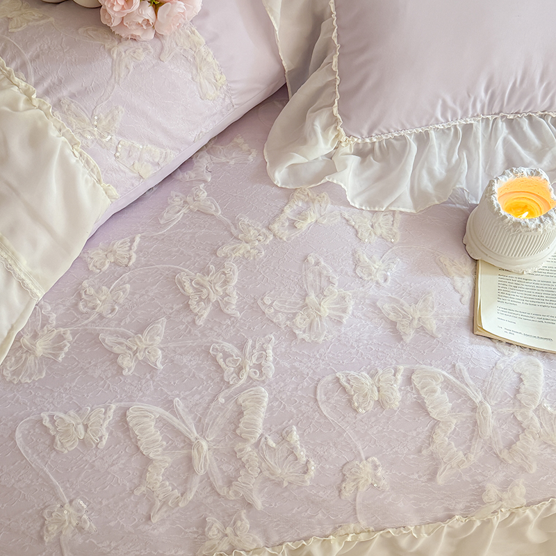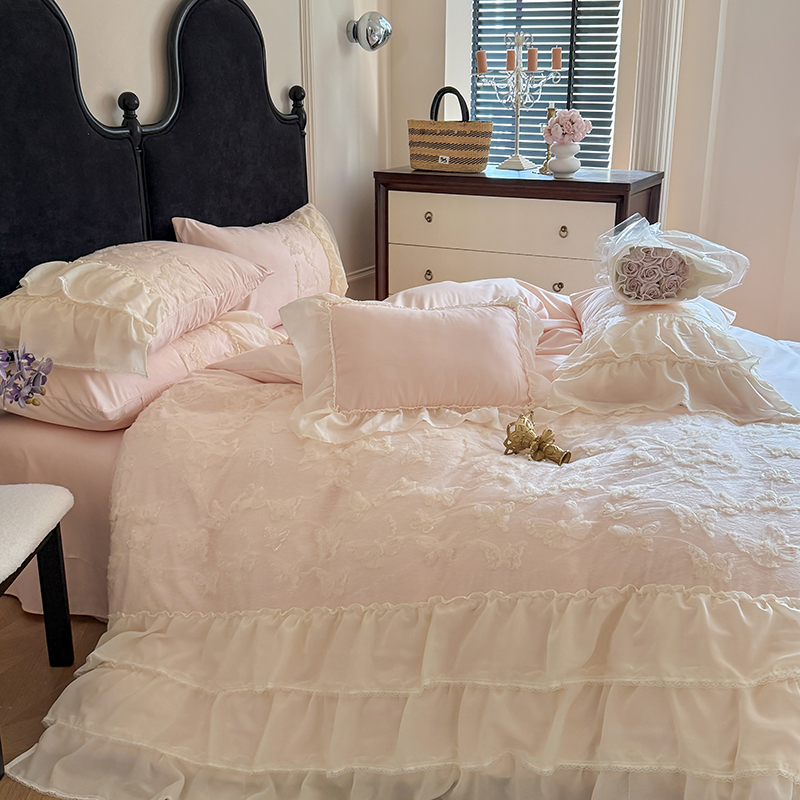 (总)吾欢心 2025新款糯小棉立体绣花雪纺花边四件套-蝴蝶梦