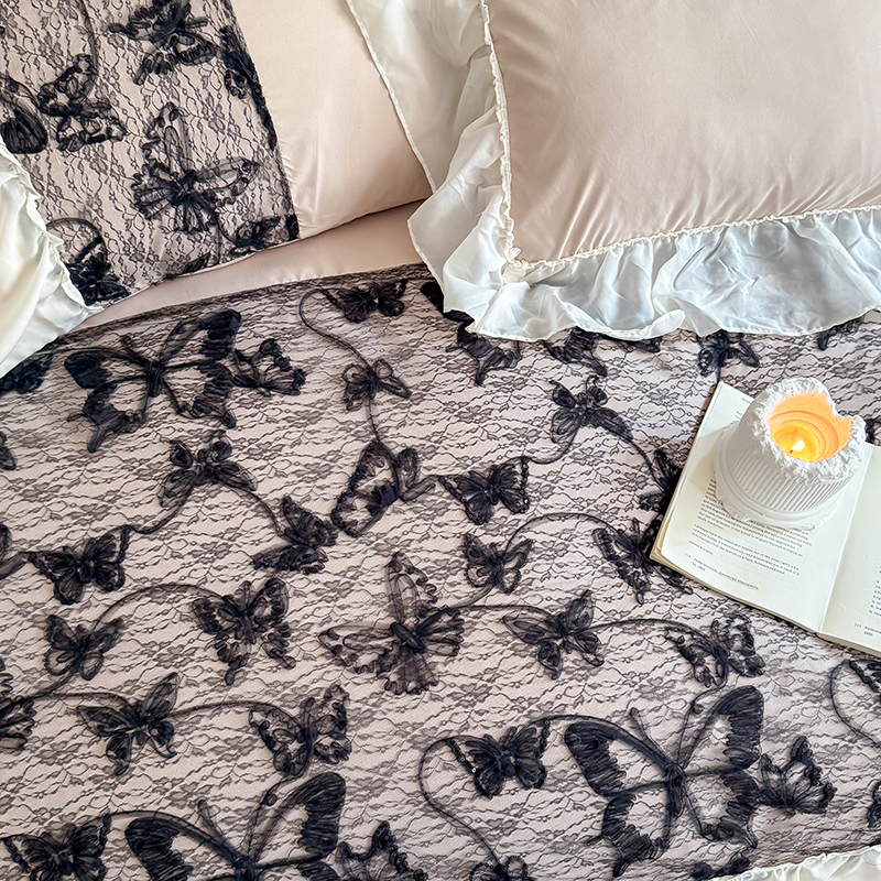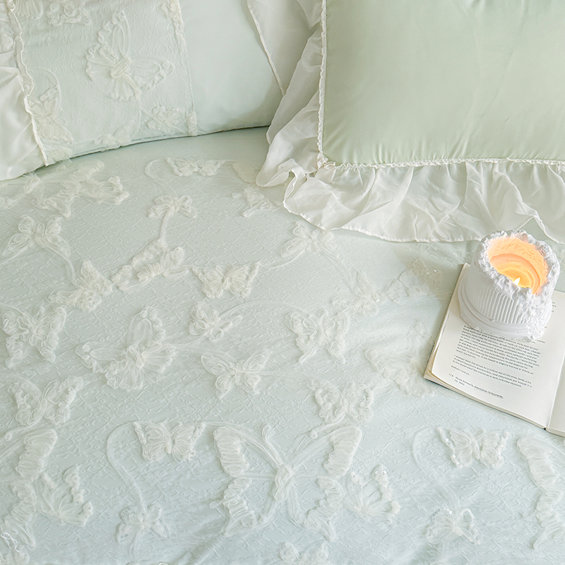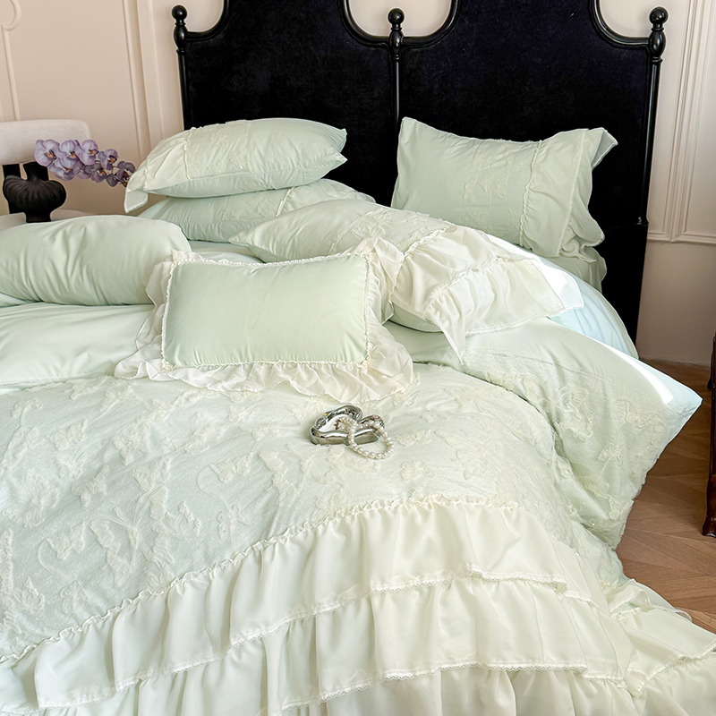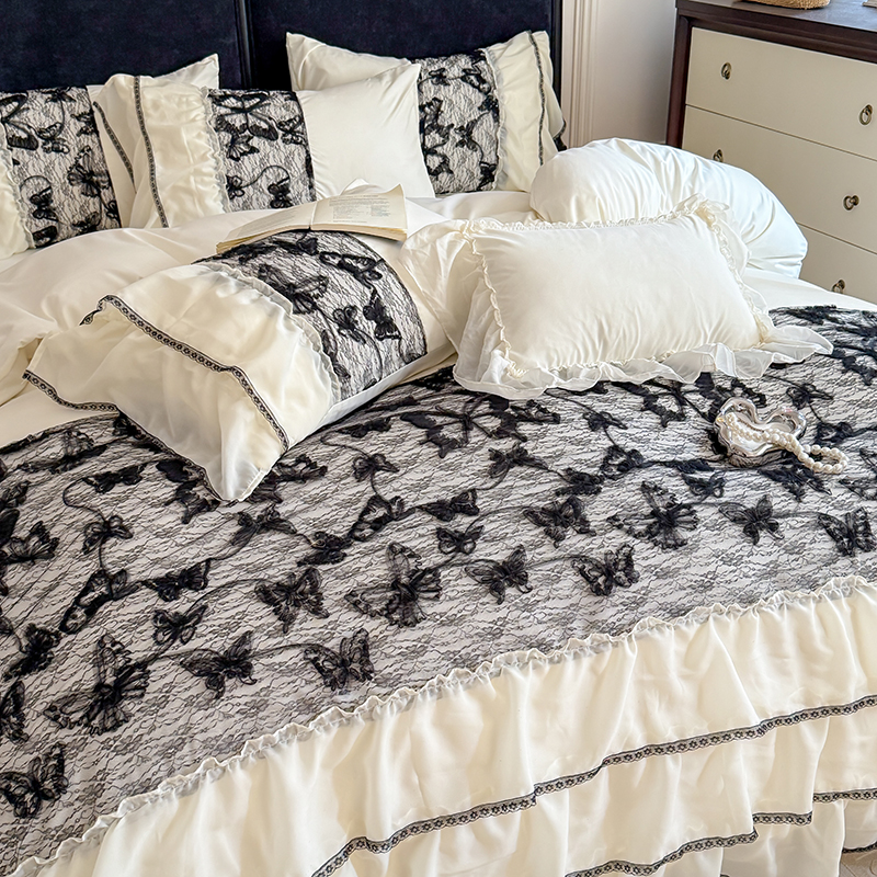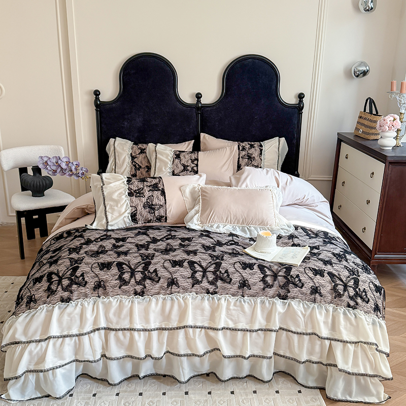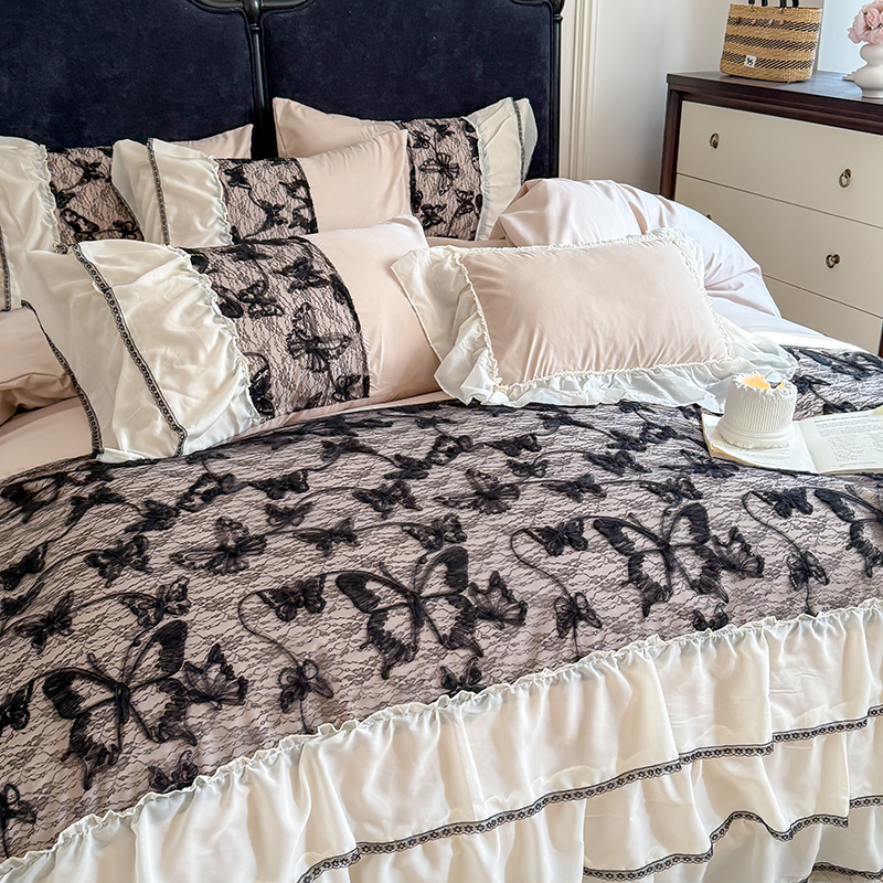 (总)吾欢心 2025新款糯小棉立体绣花雪纺花边四件套-蝴蝶梦
