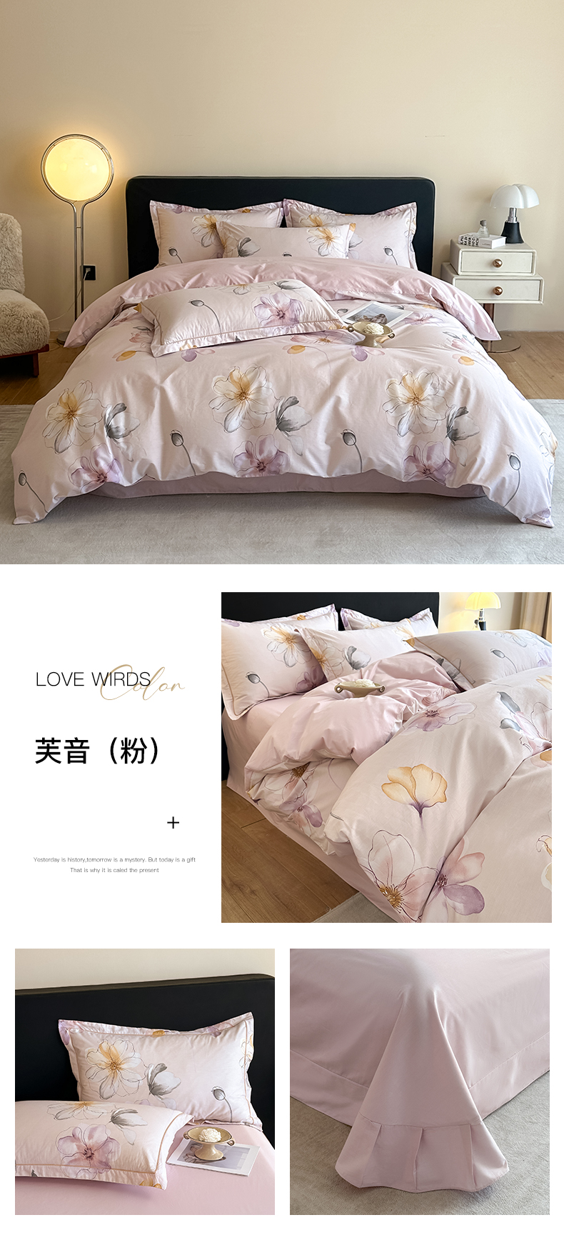 商品名称:格里芬家纺 2025新款全棉四件套13376纯棉印花四件套 芙音-粉