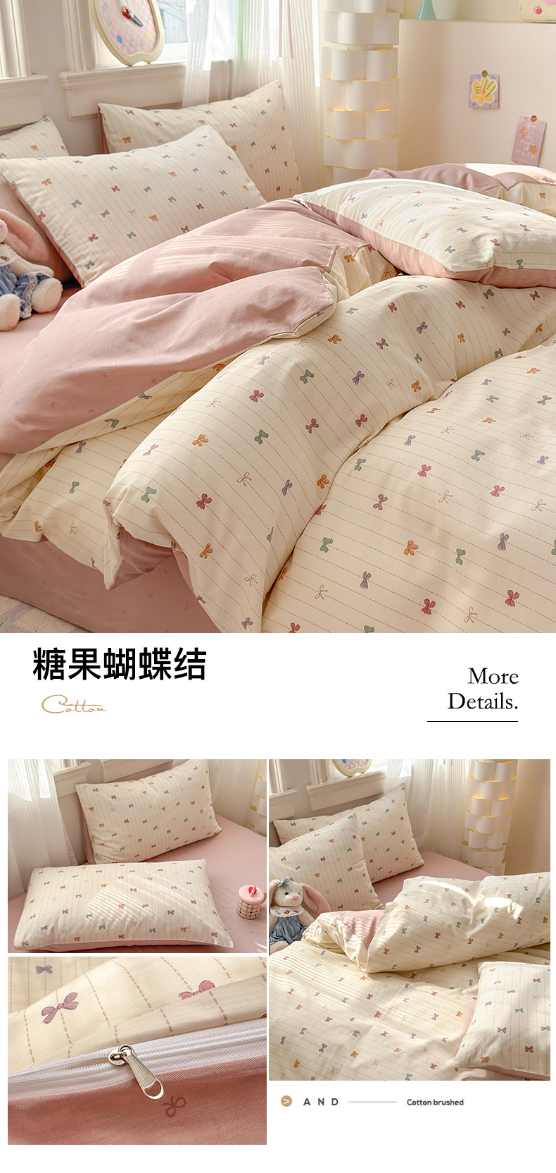 当前位置: 91家纺网 > 商品网购 > 床品套件 > 四件套 > 全棉普通四件套 > 清雅福 2025全棉13372小清新四件套和单被套早春系列第二批--四件套 糖果蝴蝶结