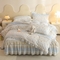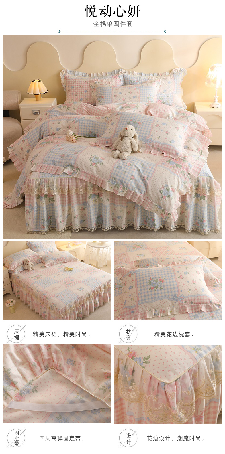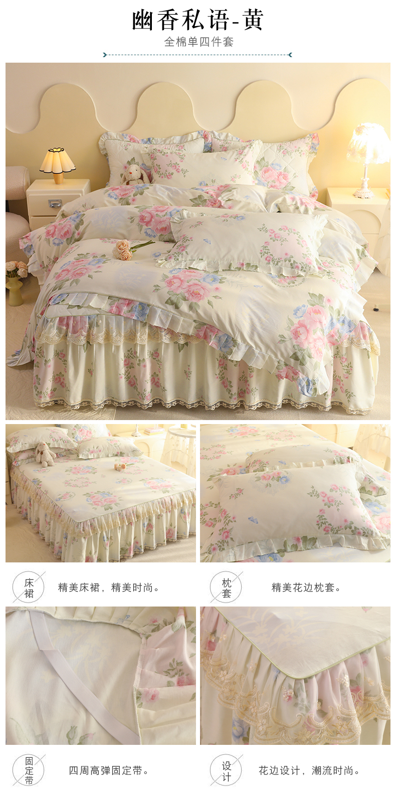 (总)美达家纺 2025新款全棉纯棉AB版蕾丝小花边单层床裙四件套,解语花,南湘,沁雨花叶,悦棠