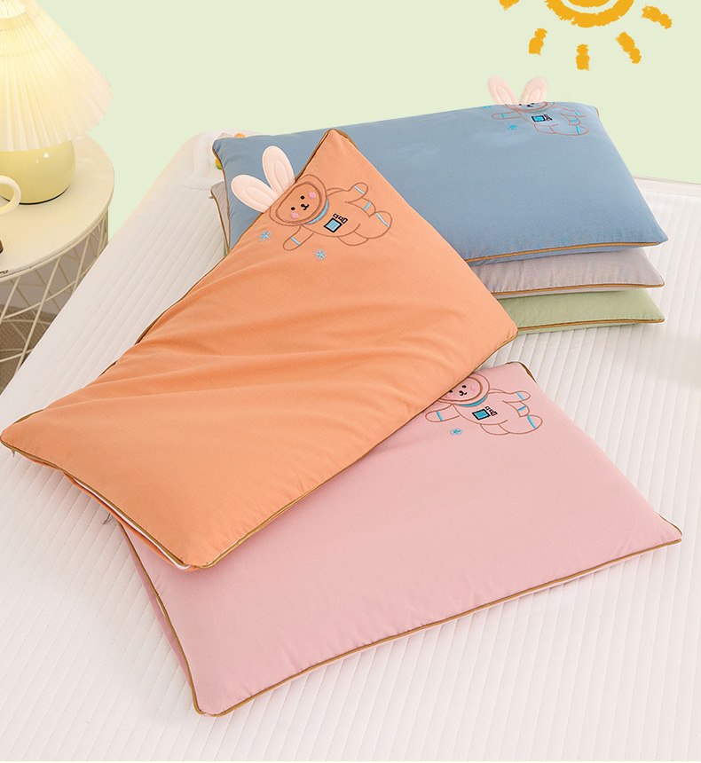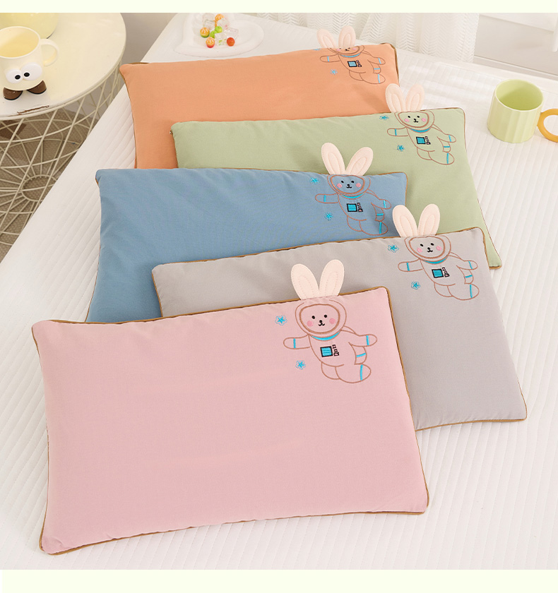 (总)仁宇枕业 2025新款新品枕芯全棉绣花卡通天线兔宝宝儿童全荞麦枕头枕芯