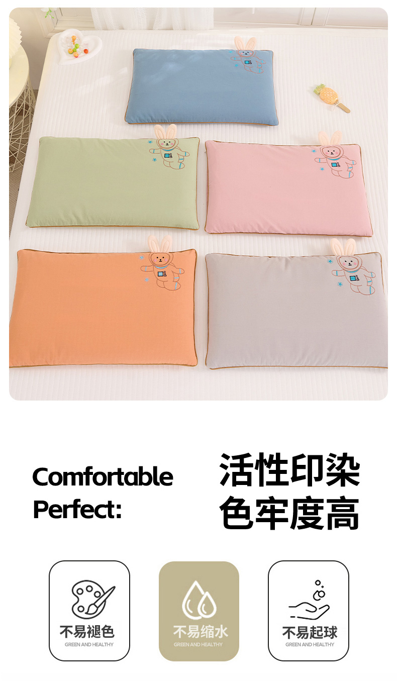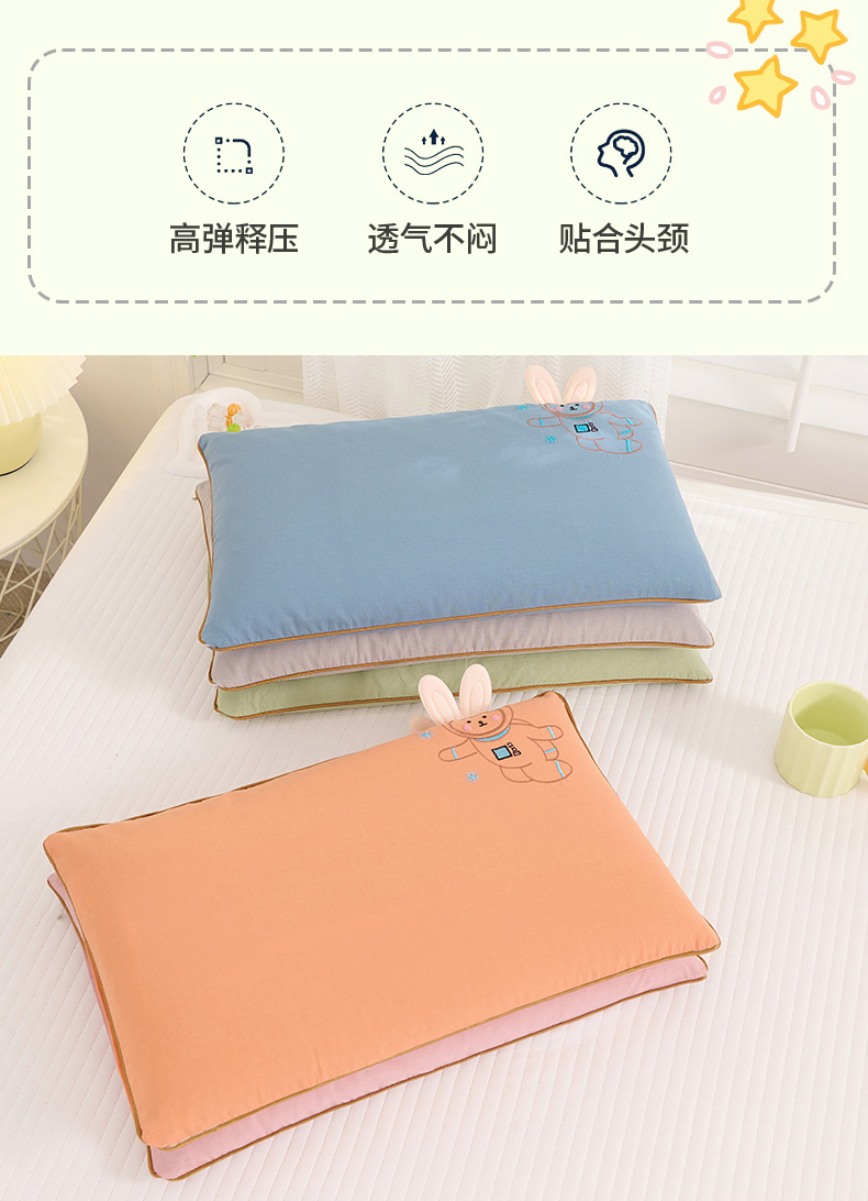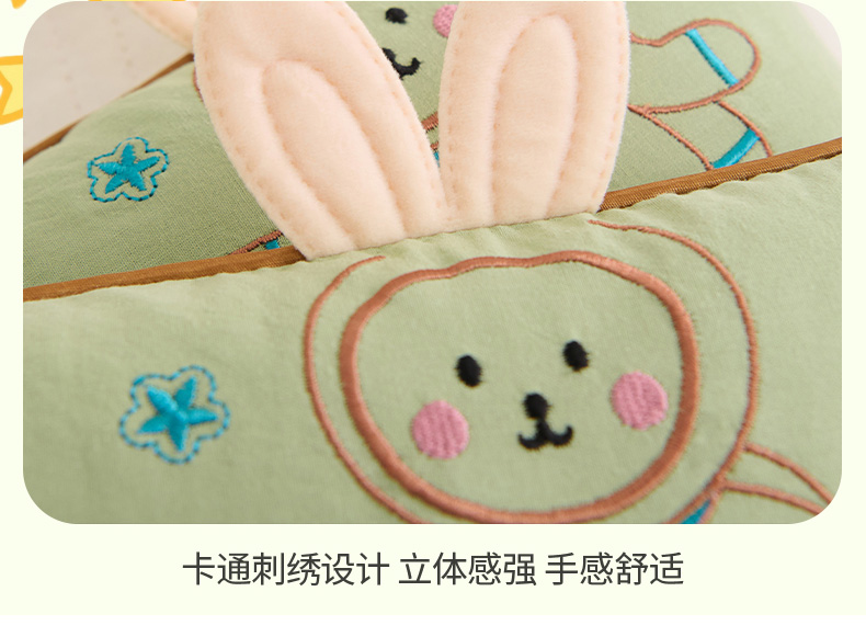 商品名称:(总)仁宇枕业 2025新款新品枕芯全棉绣花卡通天线兔宝宝儿童全荞麦枕头枕芯