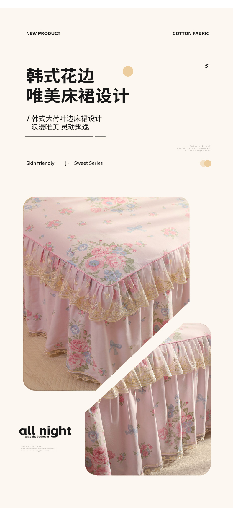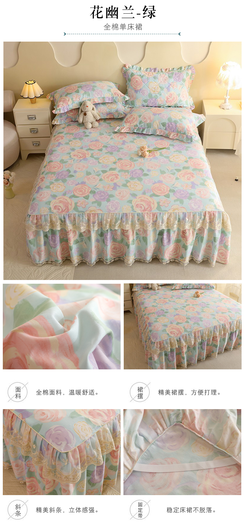 (总)美达家纺 2025新款全棉AB版单层床裙,解语花,南湘,沁雨花叶,悦棠